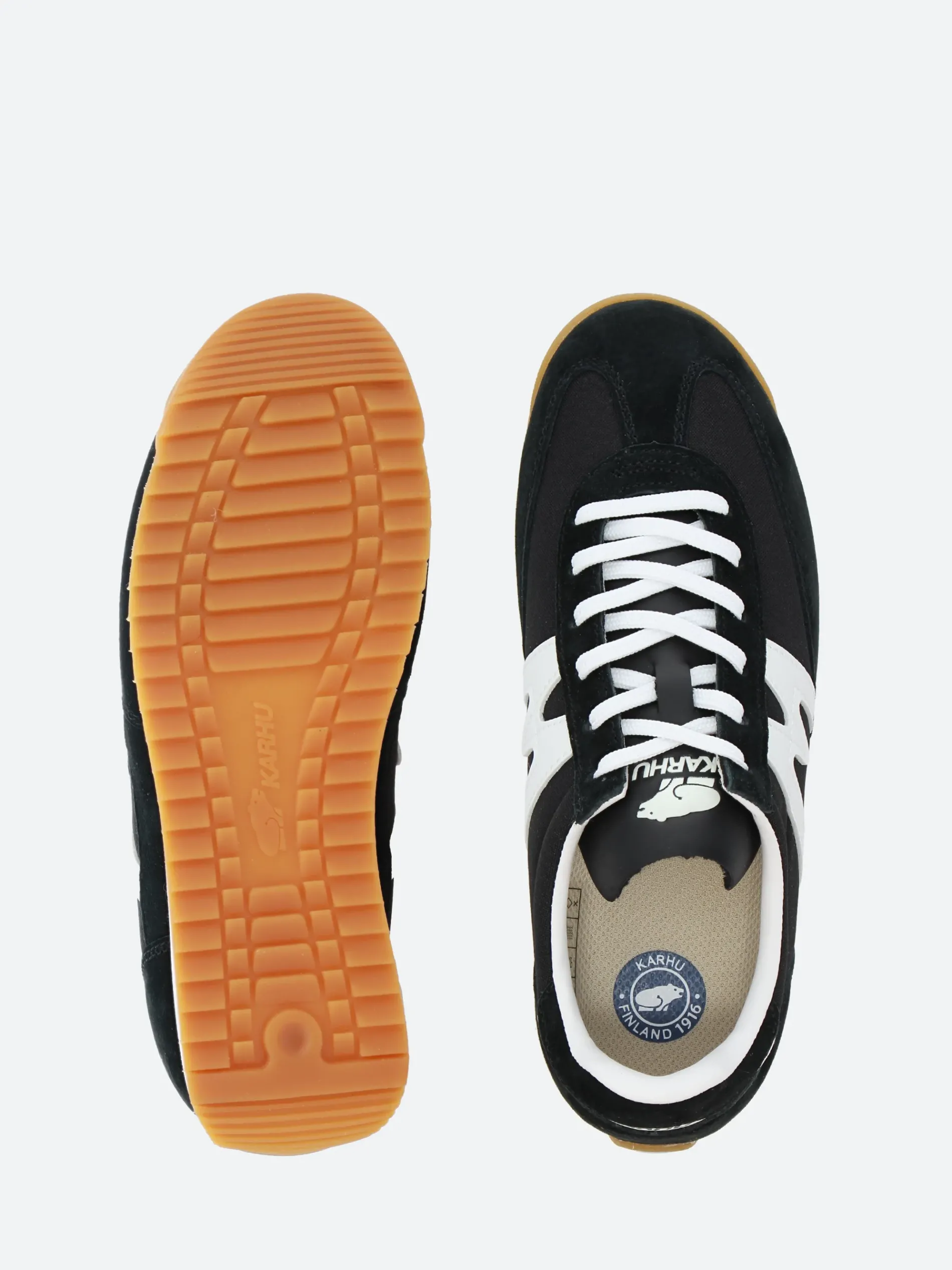 The Karhu Mestari was known for the patented Karhu air cushion midsole and the colourful design caught the attention of competitive runners. The air cushion under the heel and the elevated arch support considerably reduced strain on the knees, pelvis and small of the back.