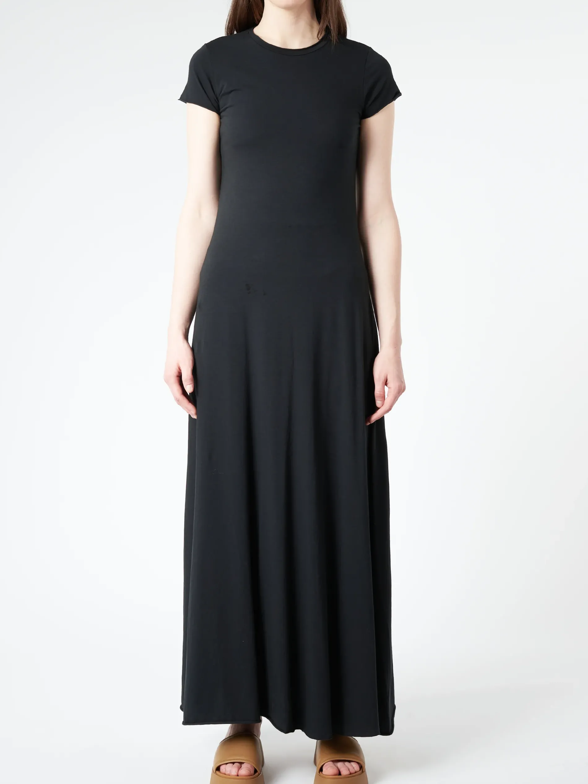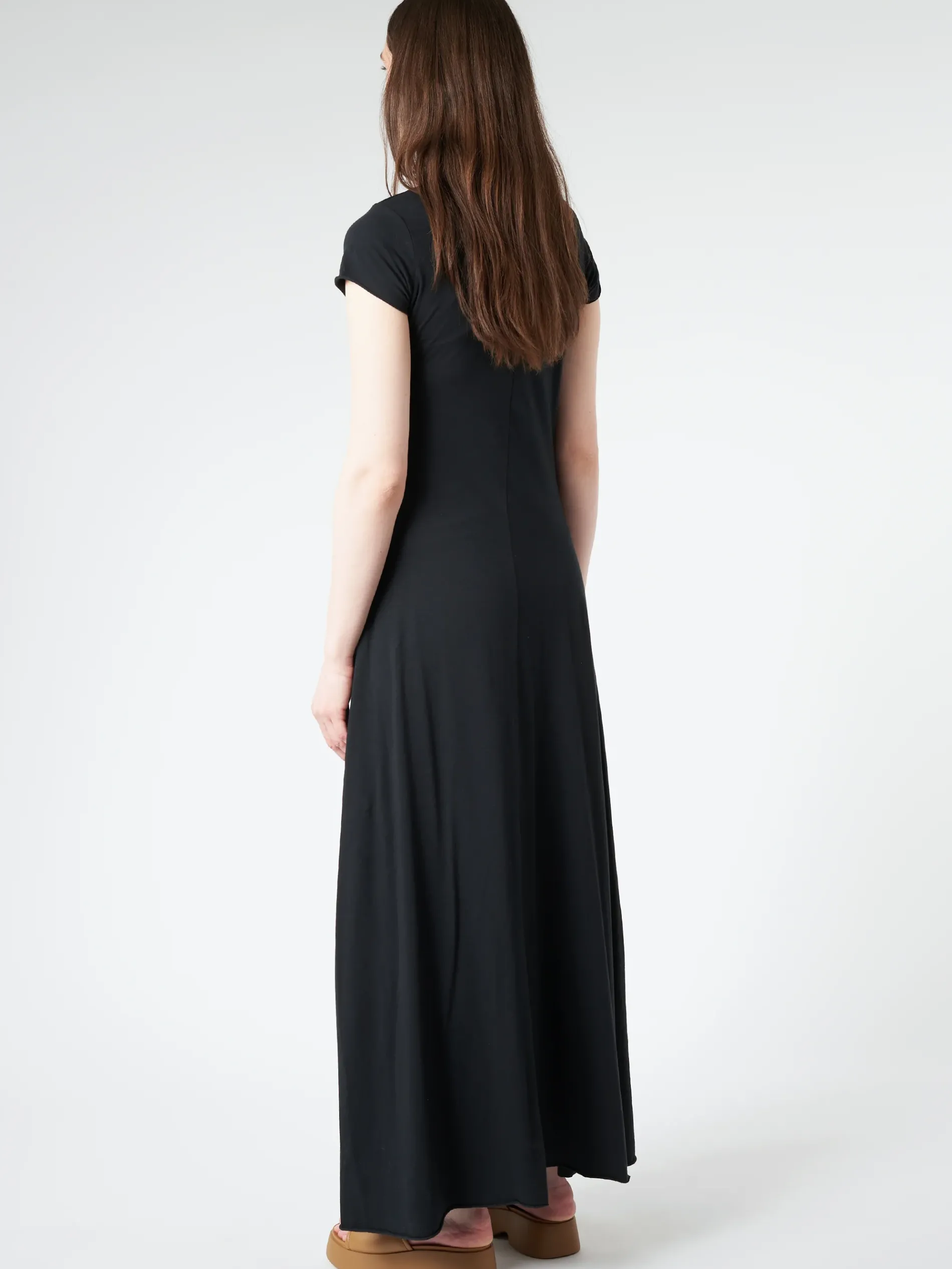 This stretch cotton jersey A-line dress features short cap sleeves and a flattering flared silhouette.