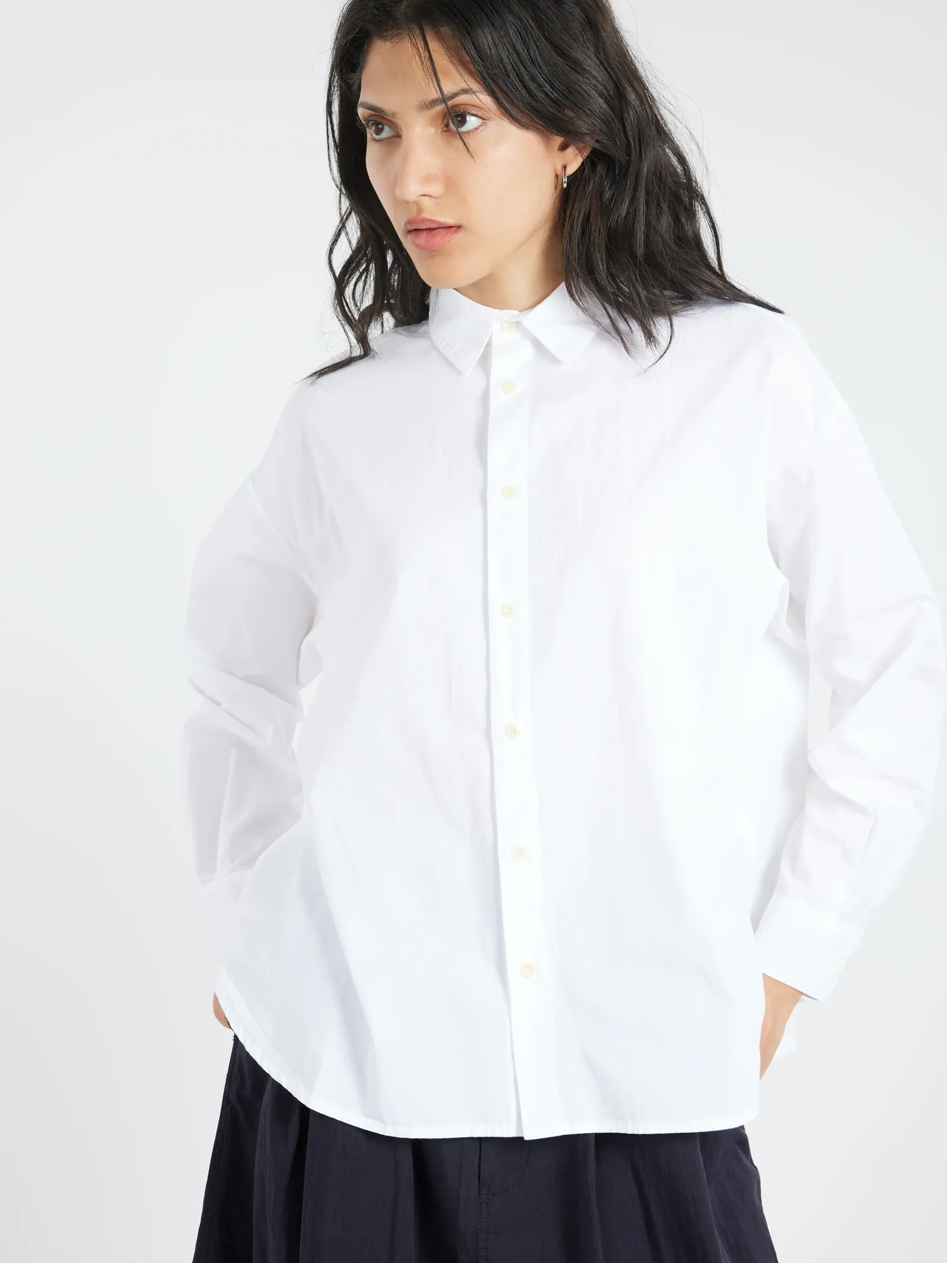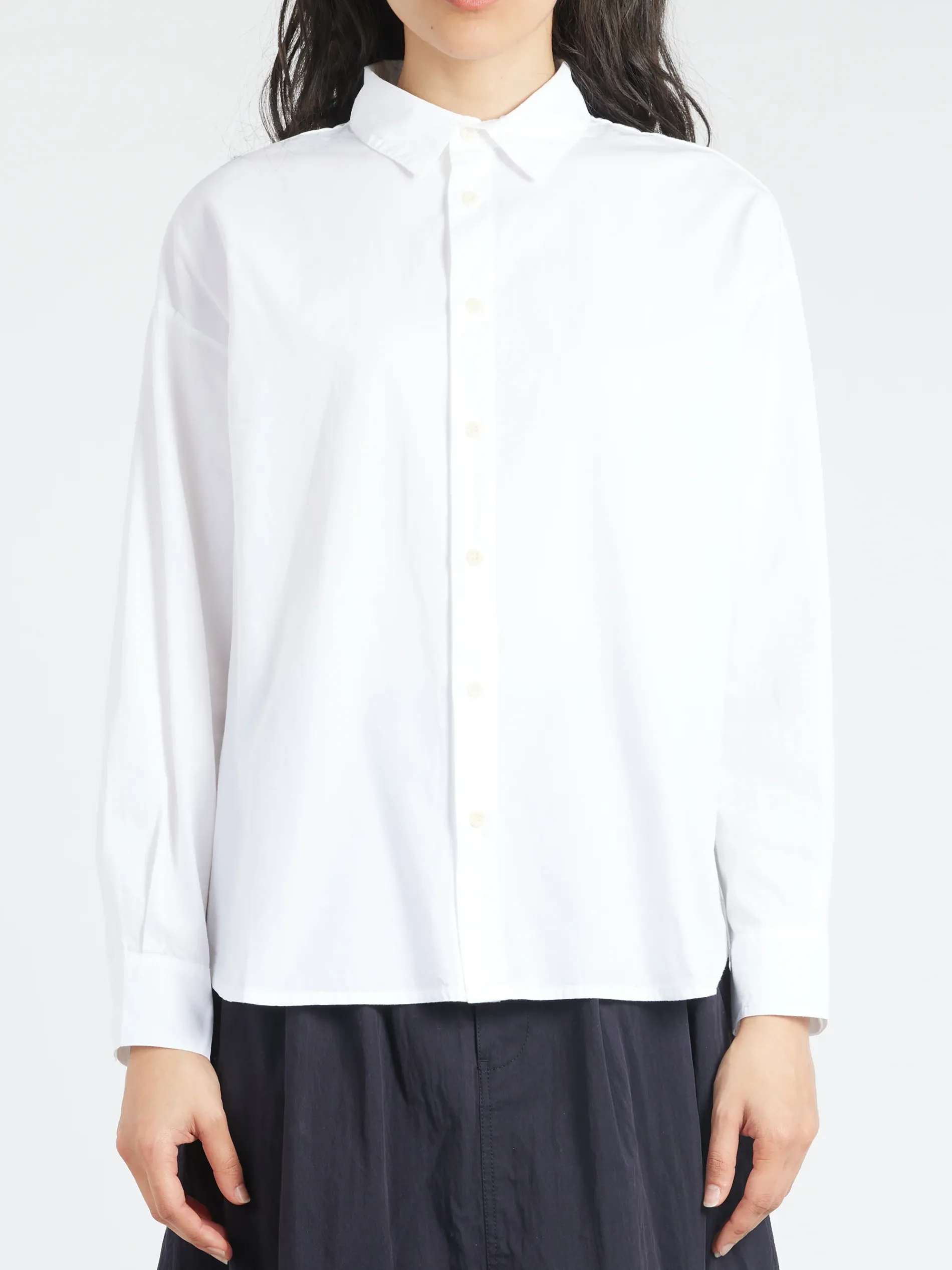 Labo.Art Eolia is a classic button up long-sleeve shirt with shirring at the back yoke. Made from a crisp, midweight poplin cotton.