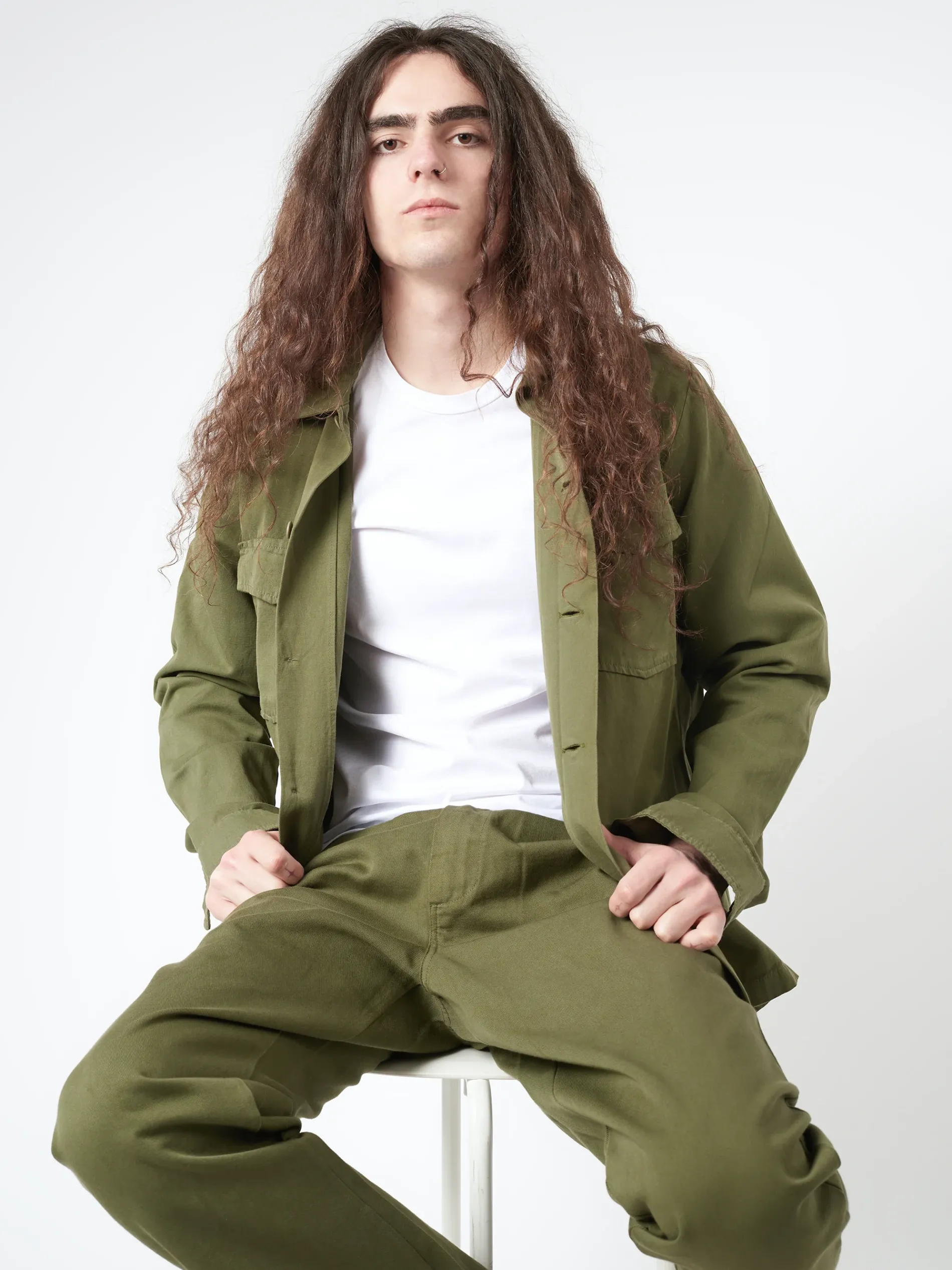 Designed using a soft cotton and linen blend, this jacket combines elements of traditional workwear. Two chest flap pockets and a full-button closure provide functional details for a versatile and stylish piece.