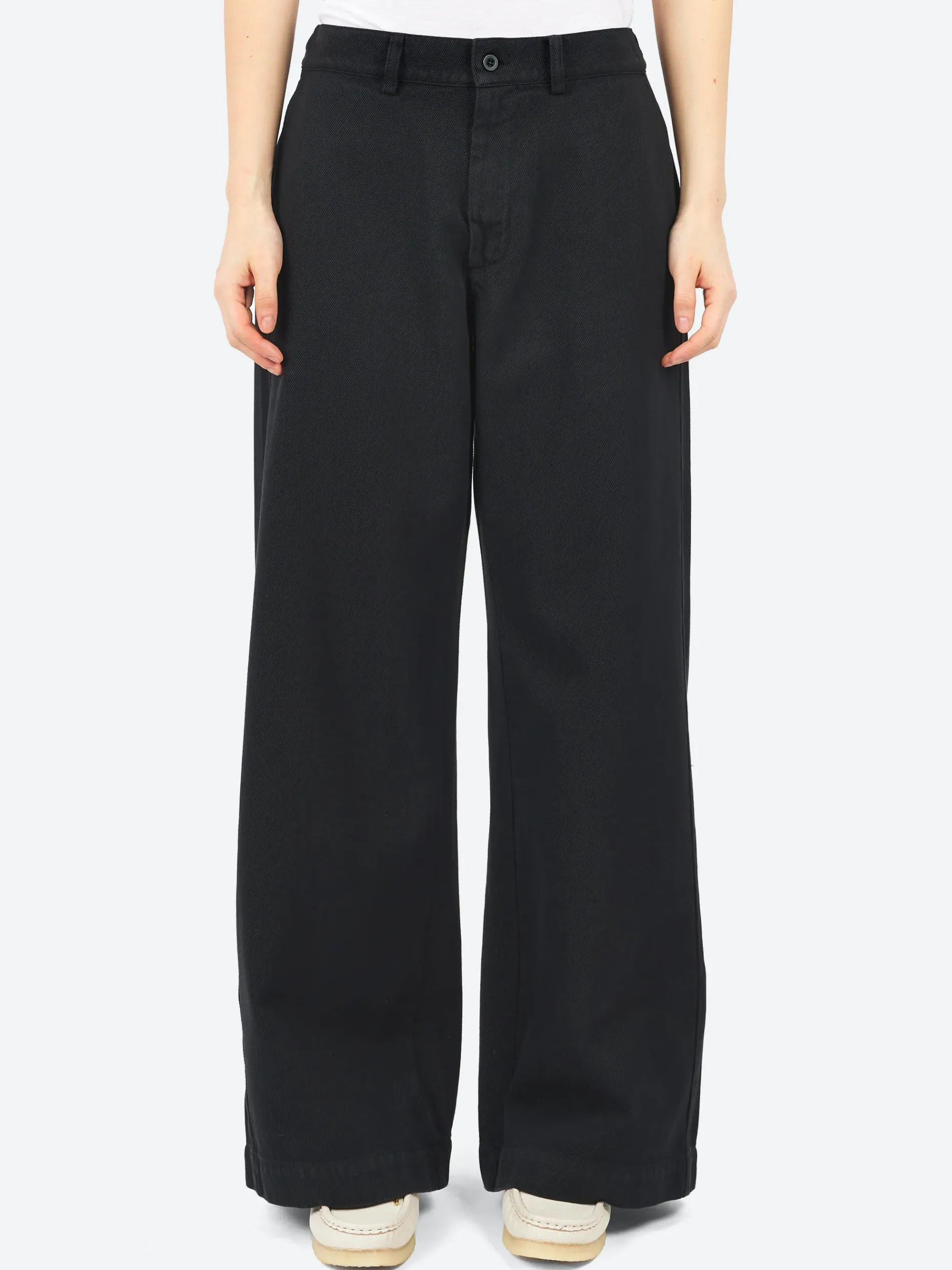 The Labo.art cotton bull trousers are designed with a straight, wide-leg fit and a half-elasticated waistband for comfort and ease. Crafted from sturdy cotton drill, these trousers feature belt loops, side seam pockets, and back welt pockets for added functionality. The button and zip fly closure complete the design, offering a stylish and practical option for a relaxed, modern look.