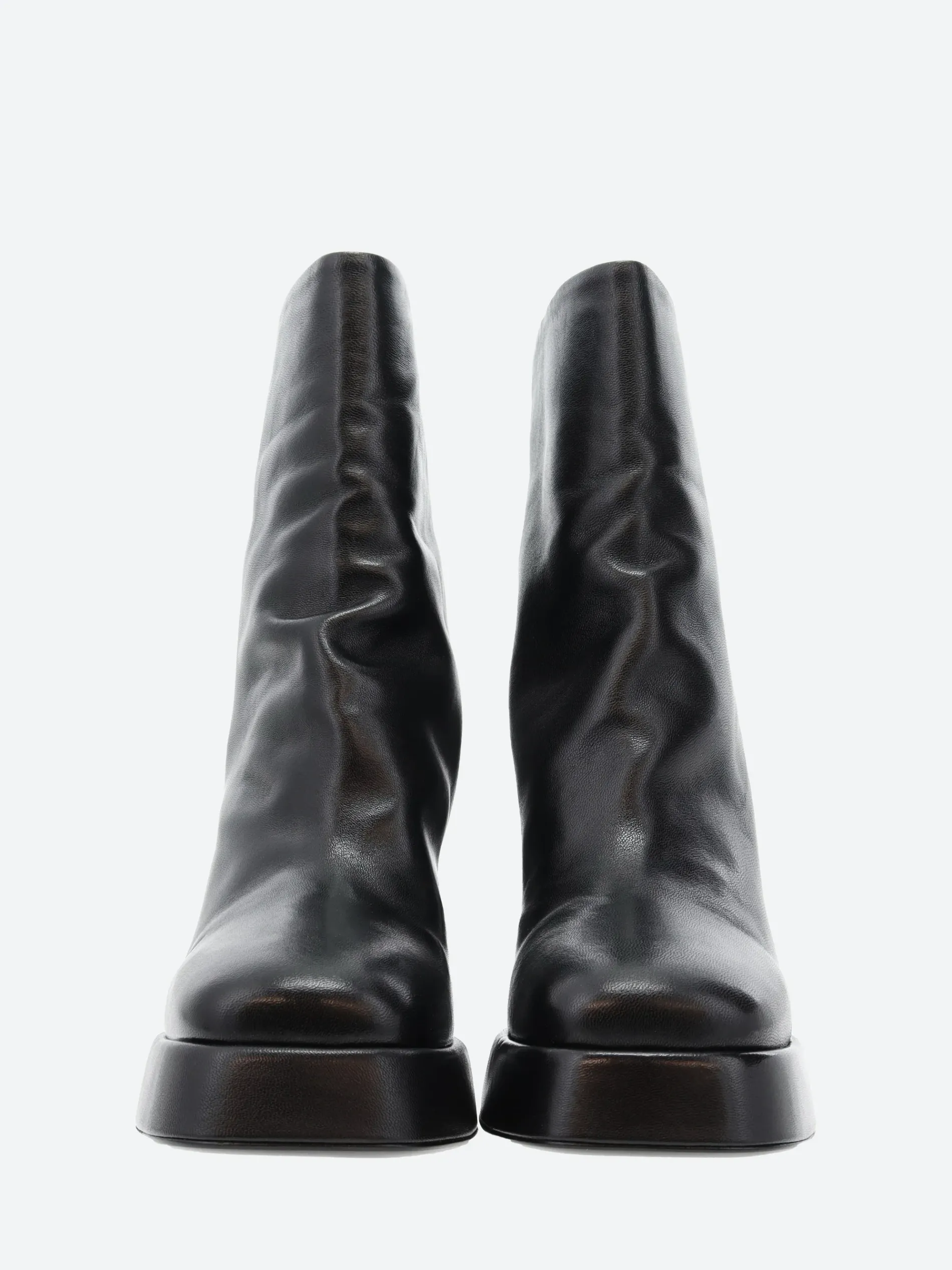 Halmanera heeled boot in supple leather. A slip-on style for easy on and off. Finished with a block heel and platform sole.