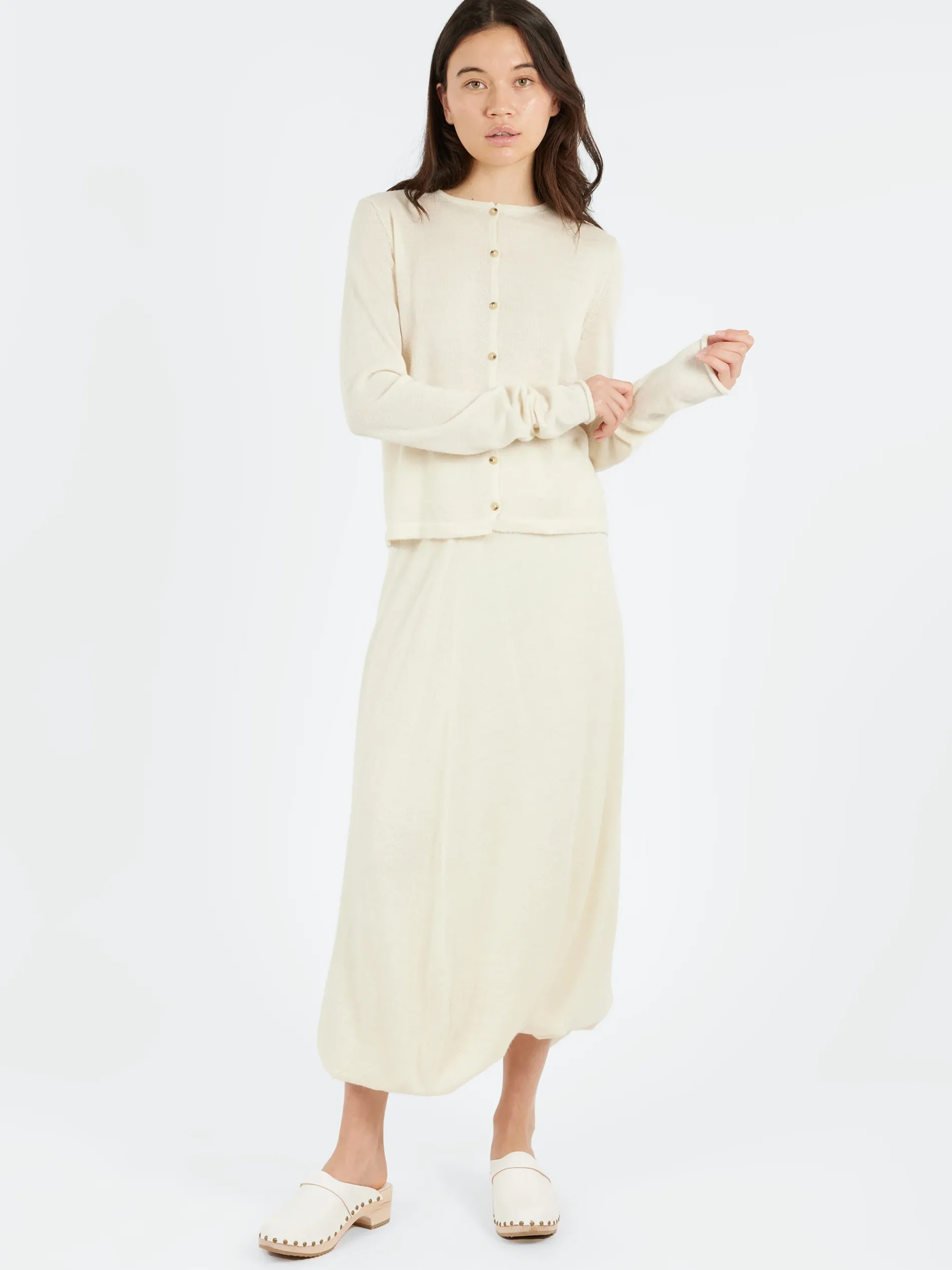 The Lauren Manoogian Balloon Skirt is made from the finest grade alpaca, knitted in a high-gauge for a super-soft feel. It showcases a subtle irregular texture and is constructed with a double-layer design for added depth and comfort.