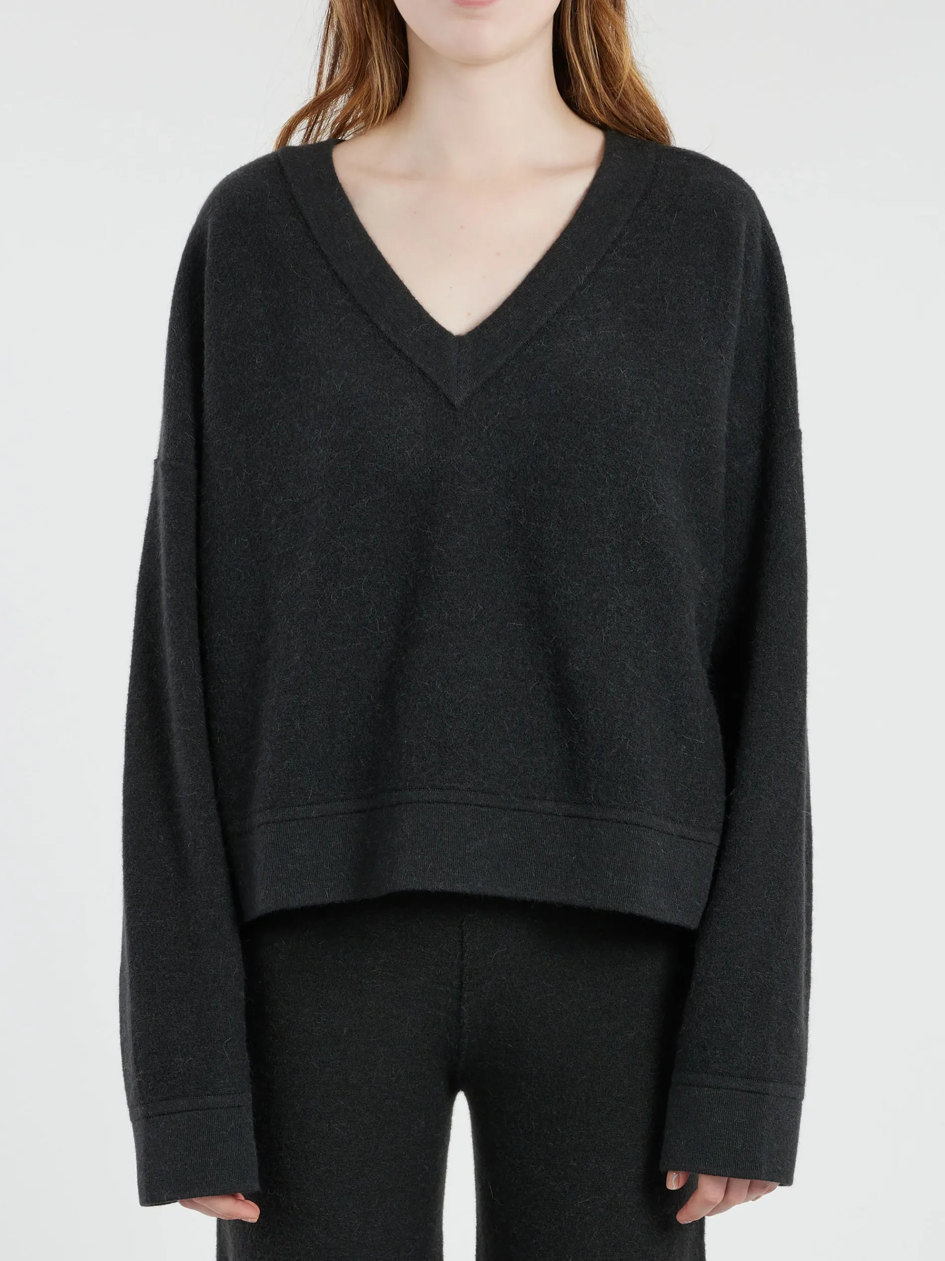 - Wide v-neckline