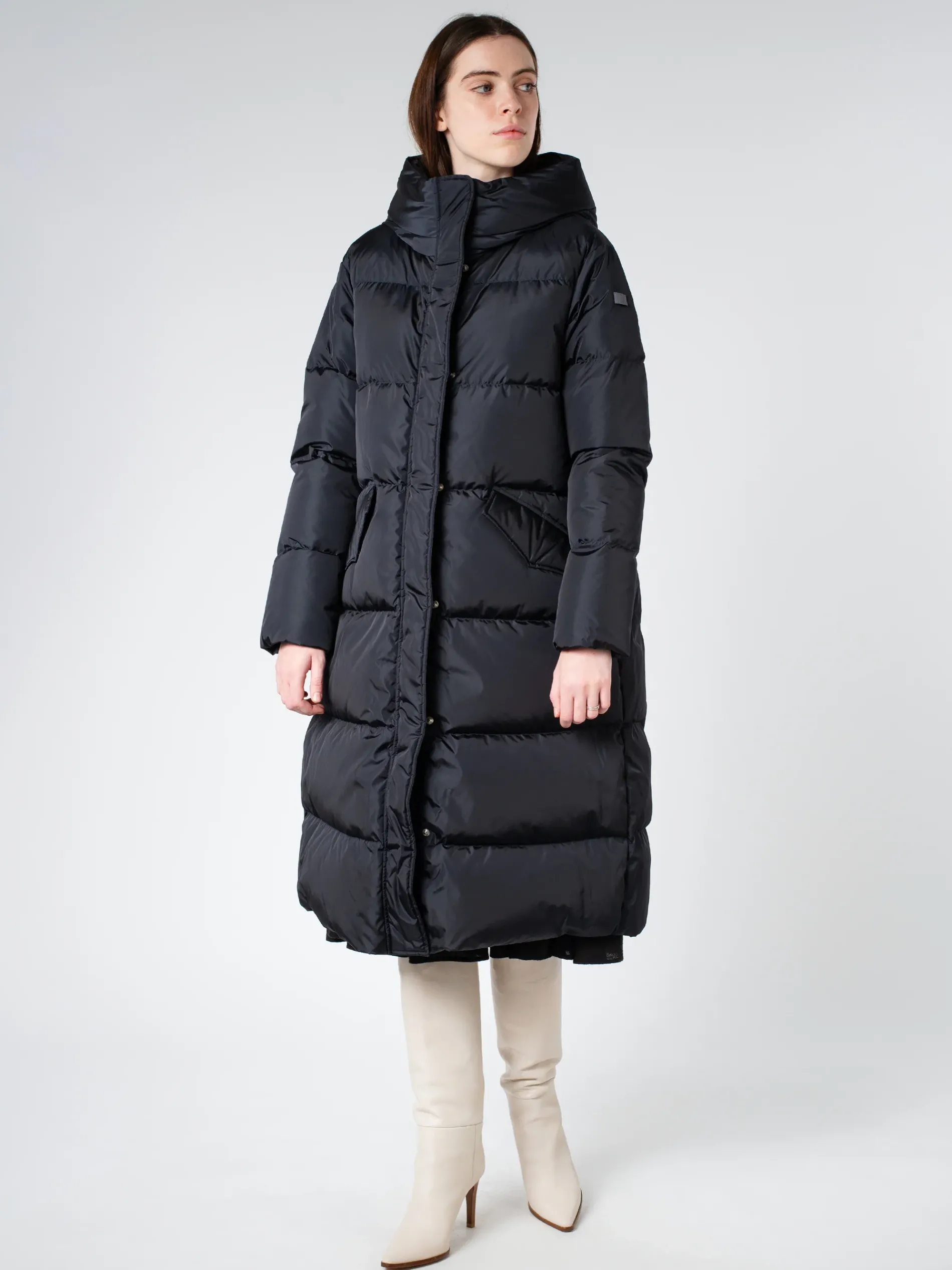 Lempelius cocoon-shaped down parka made from high density nylon with a water repellent finish.