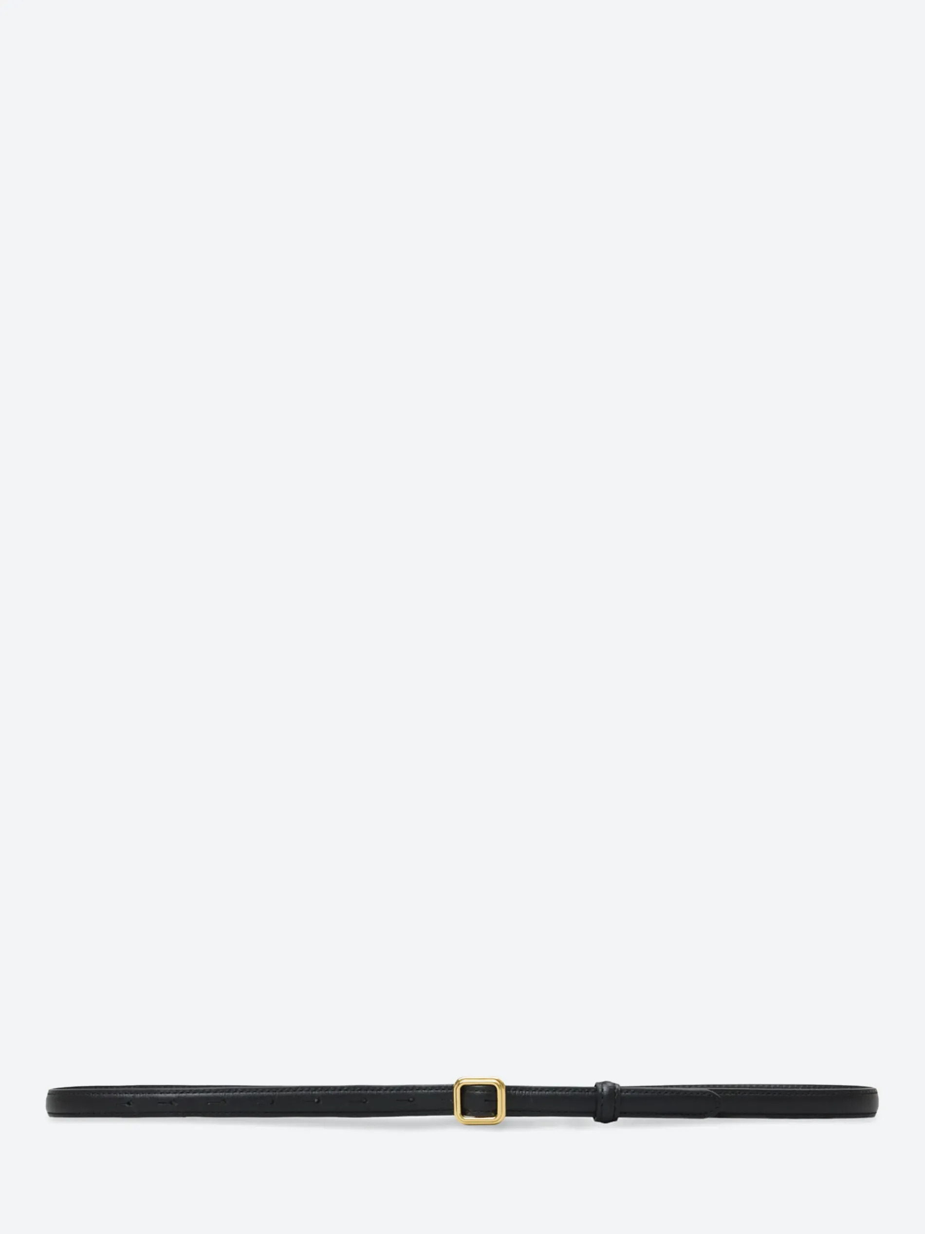 New this season from LIÉ STUDIO, the Georgia Slim Belt is elegantly crafted from smooth Italian leather, finished with a 14k gold-plated buckle.