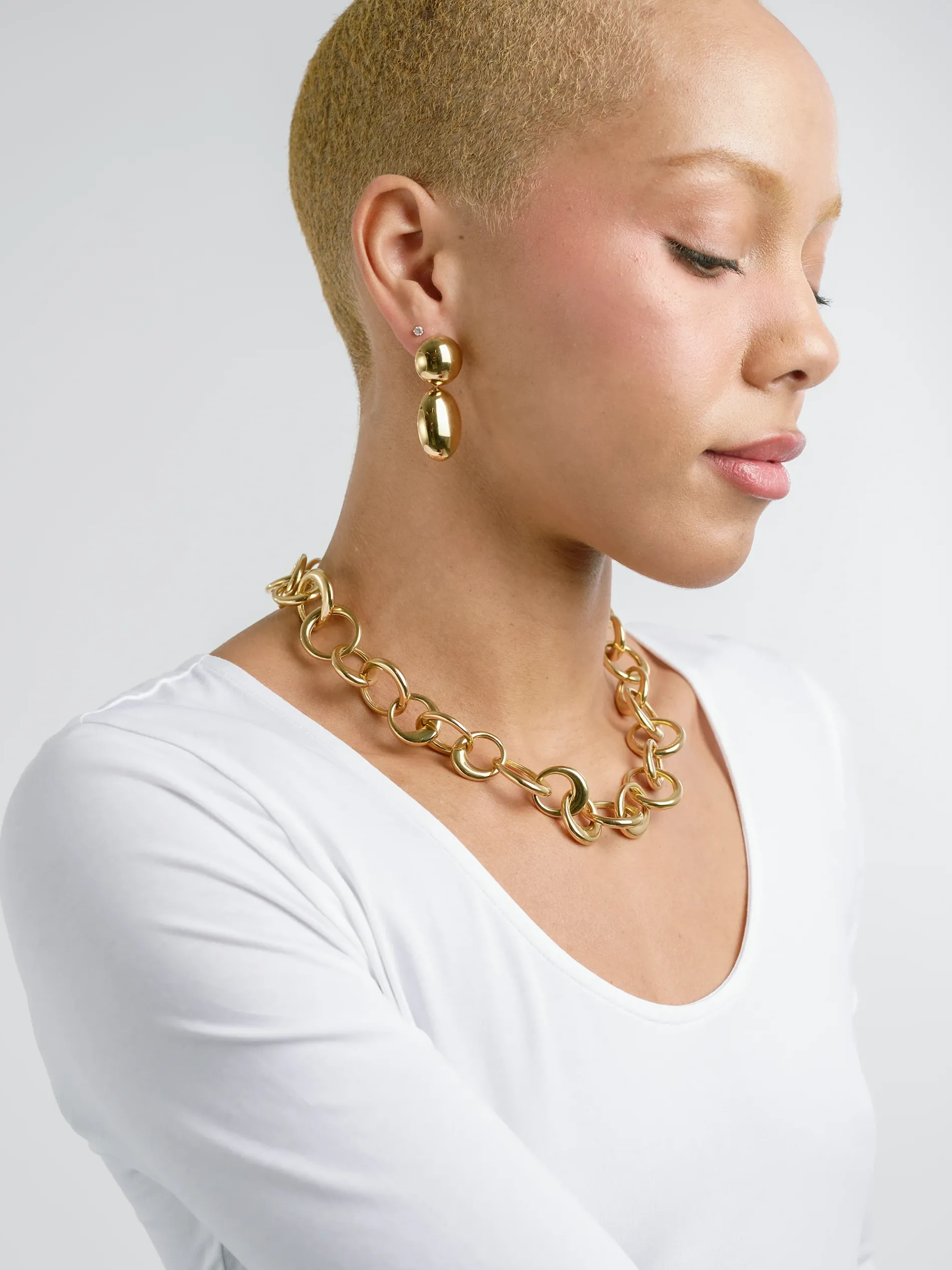 Inspired by antique silhouettes, these dramatic earrings in 18kt gold plated silver add a touch of chic to a simple outfit.