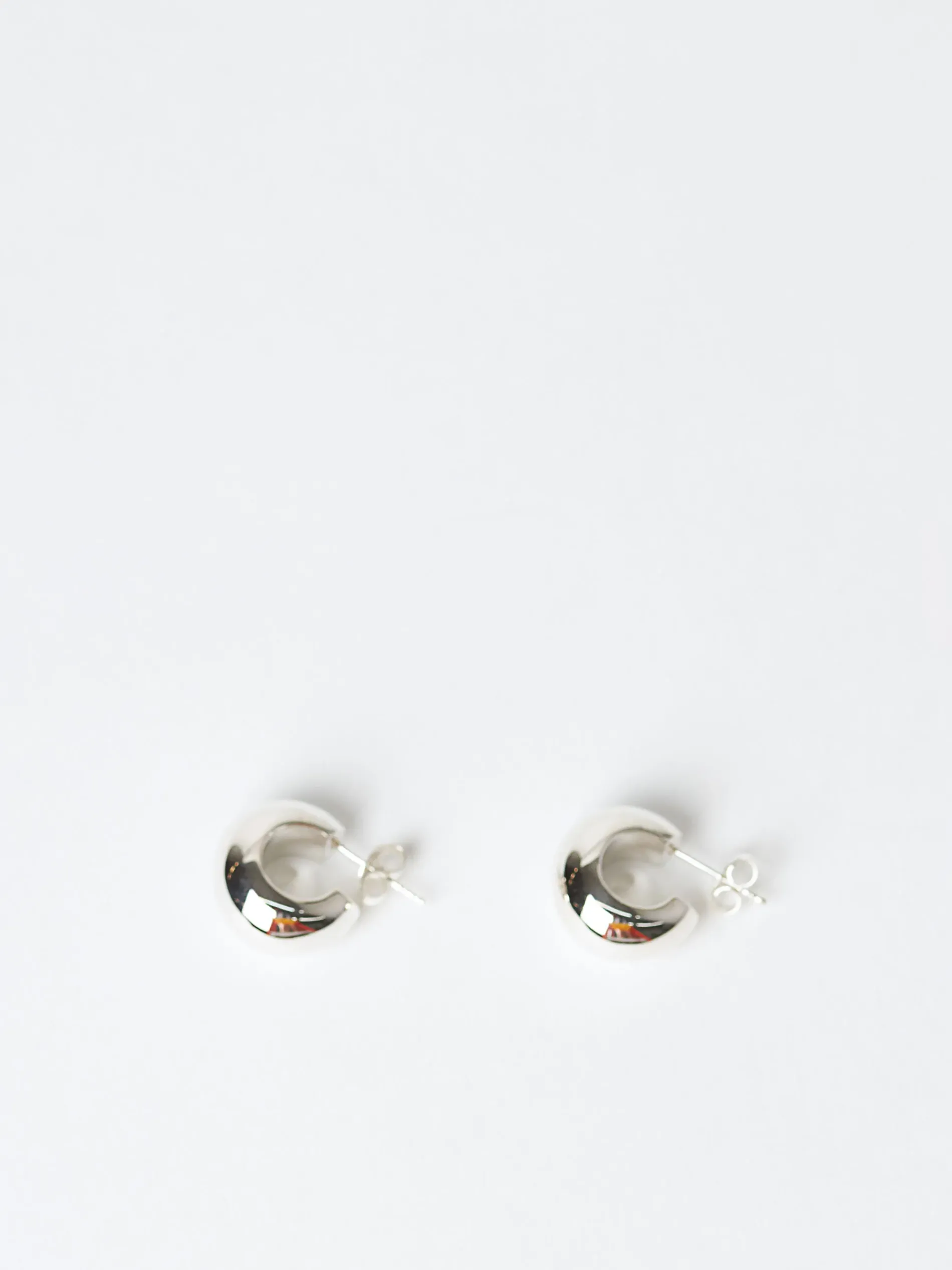 The Simone Earrings are a small but chunky pair of creol earrings crafted from 925 sterling silver, and fastened with a classic butterfly lock on the back of the earlobe. A perfect pair of everyday earrings for a noticeable, yet refined look.