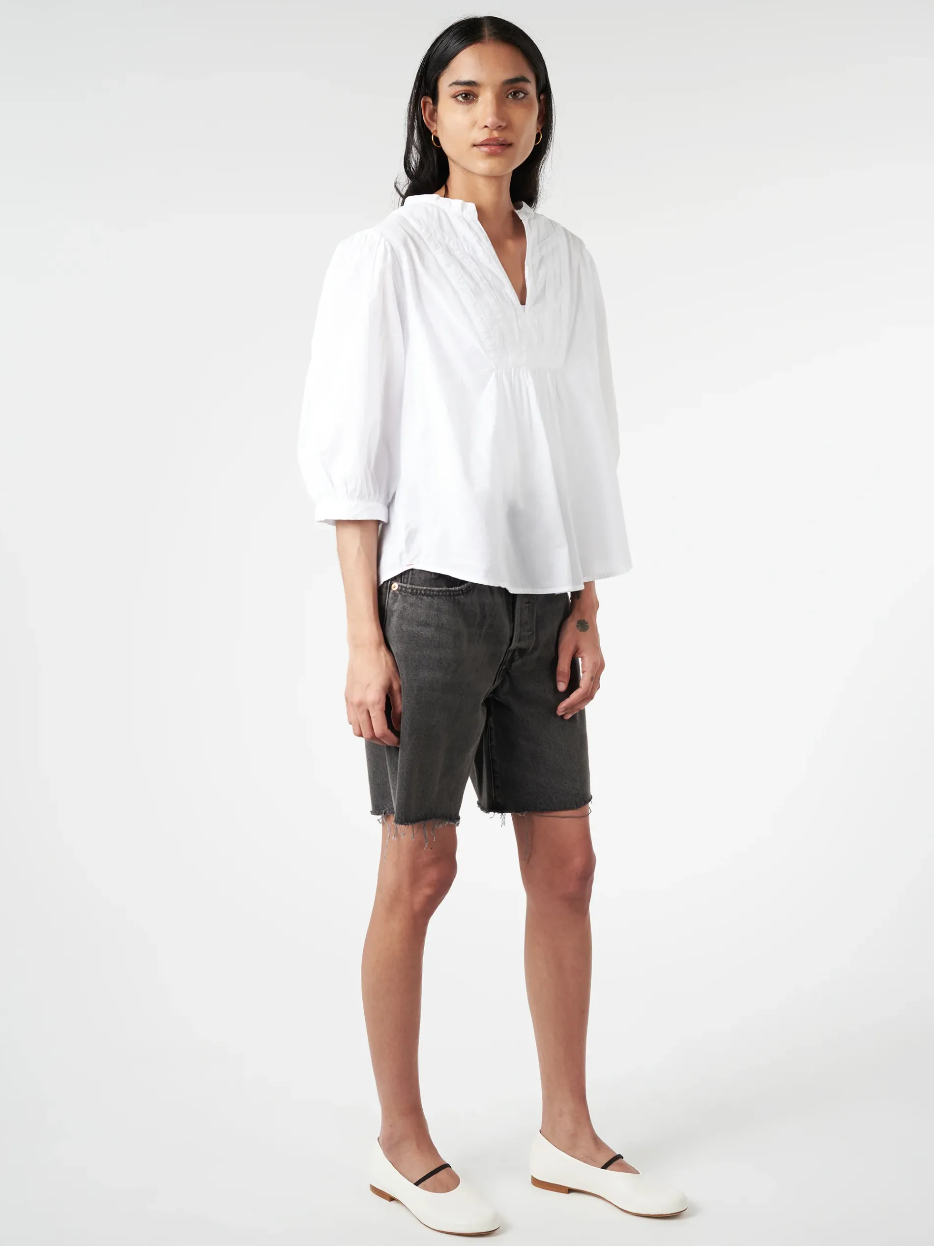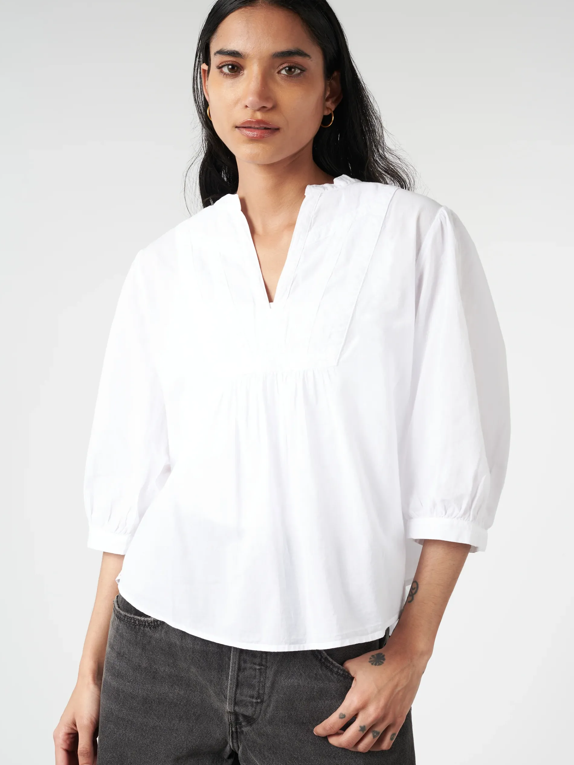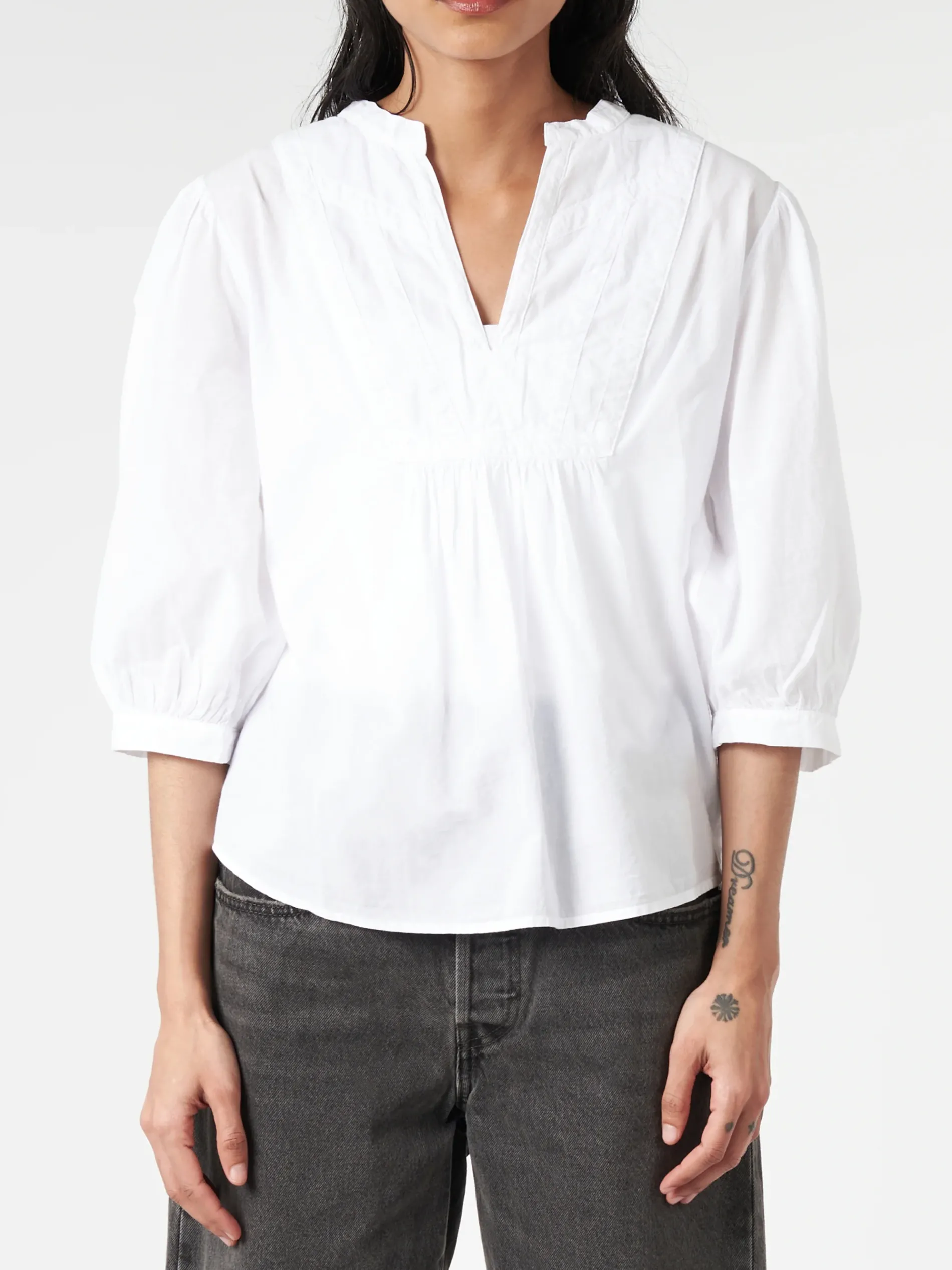 In classic lightweight woven cotton poplin for a lived-in look and feel, Xirena Lolo is a femme popover top.