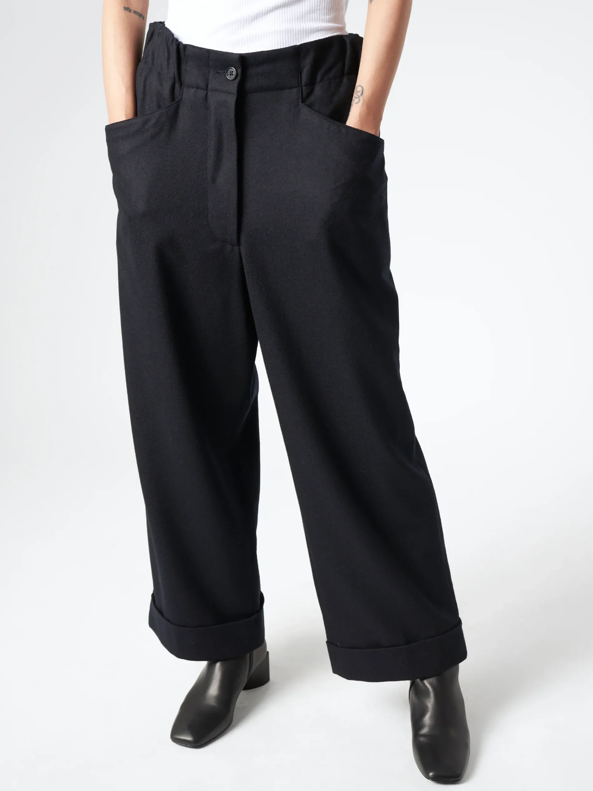 Margaret Howell flannel cropped trouser with a relaxed cut and deep turn-up cuffs.