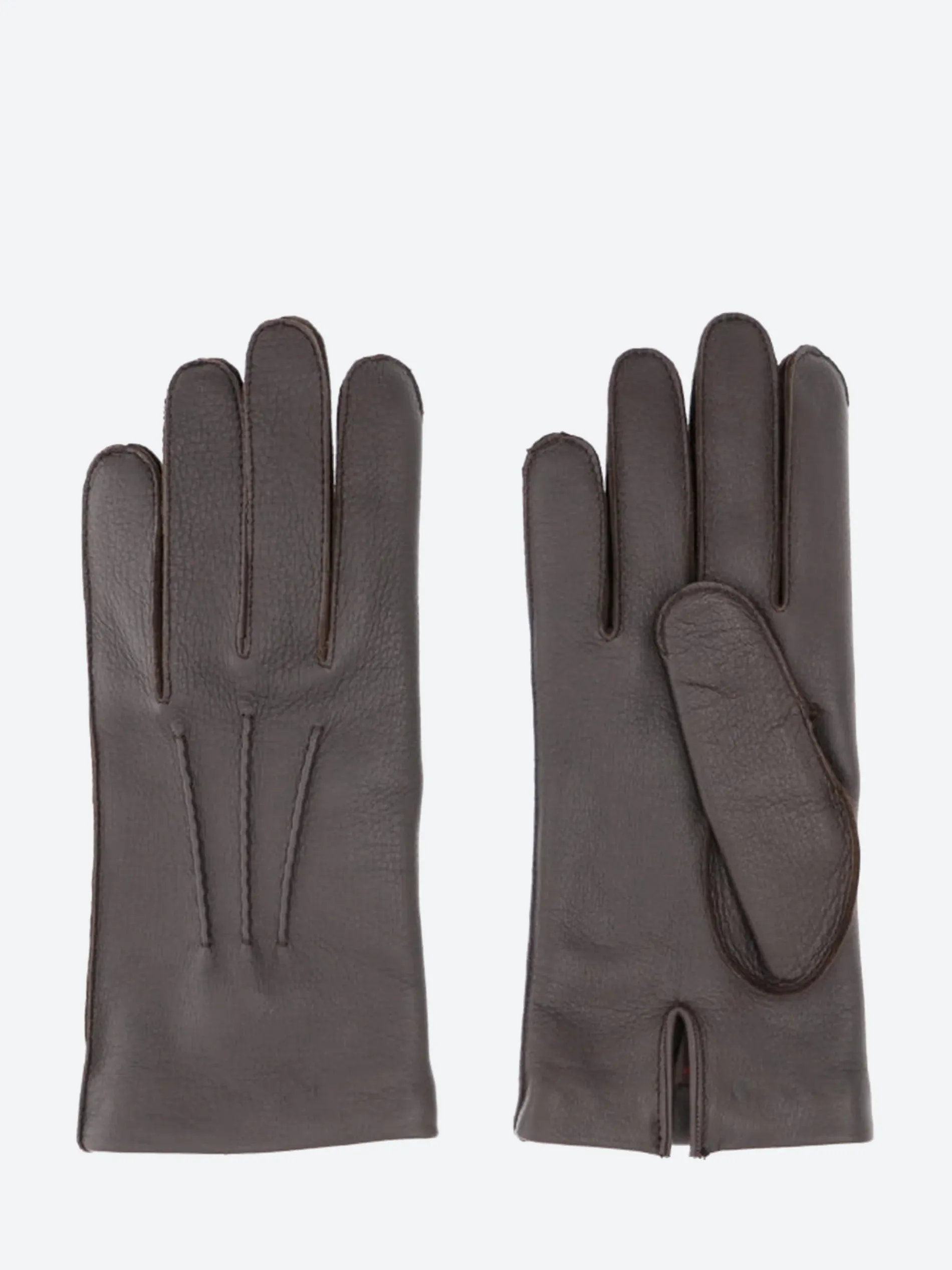 Men’s leather glove with soft 100% cashmere lining and notch opening on the wrist.