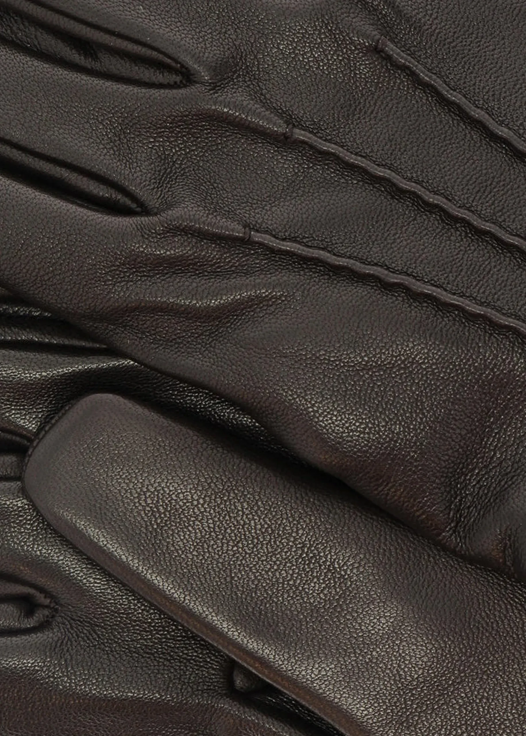 Men’s leather glove with soft 100% cashmere lining and notch opening on the wrist.