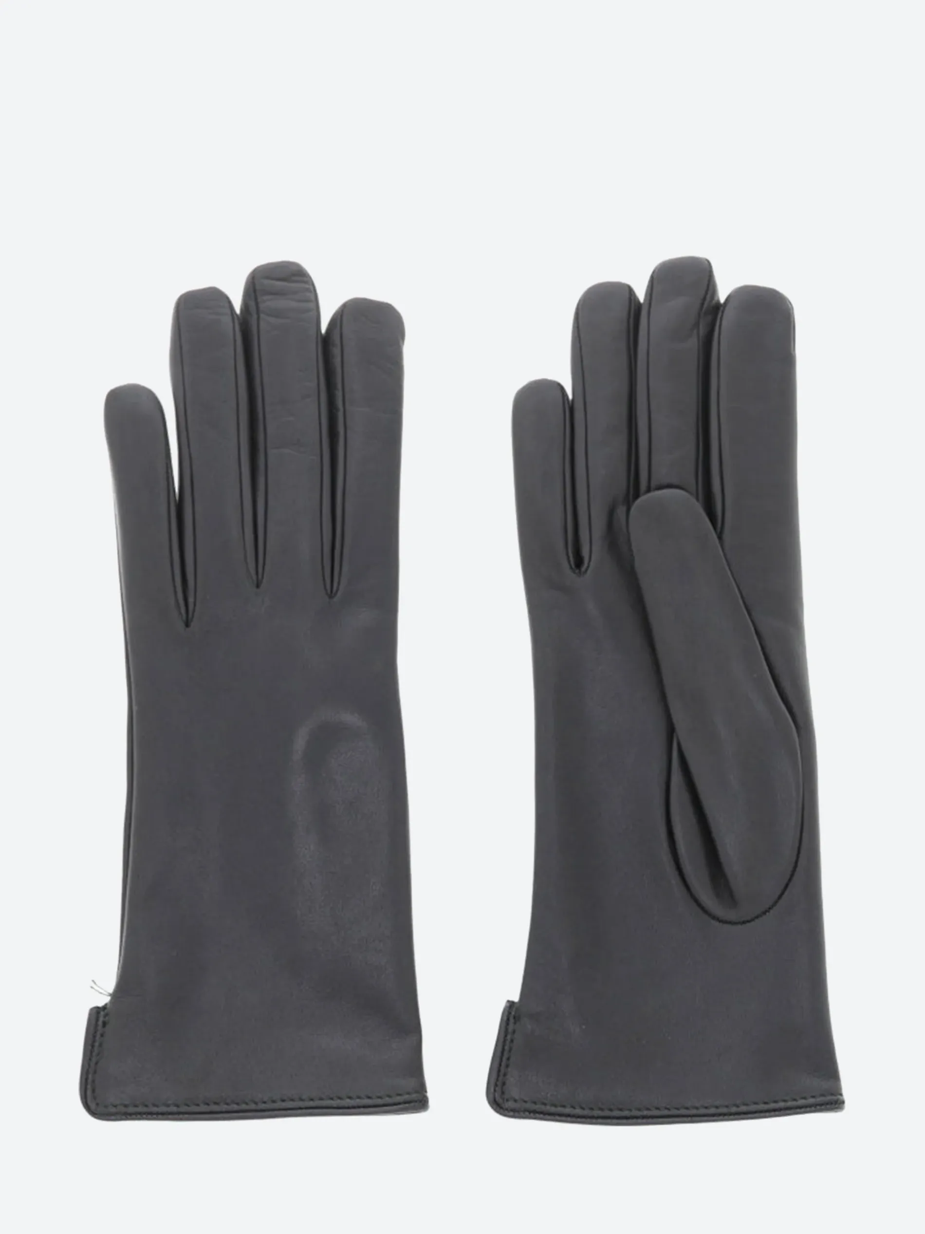 Women’s leather glove with soft-knit 100% cashmere lining and side opening on the wrist.