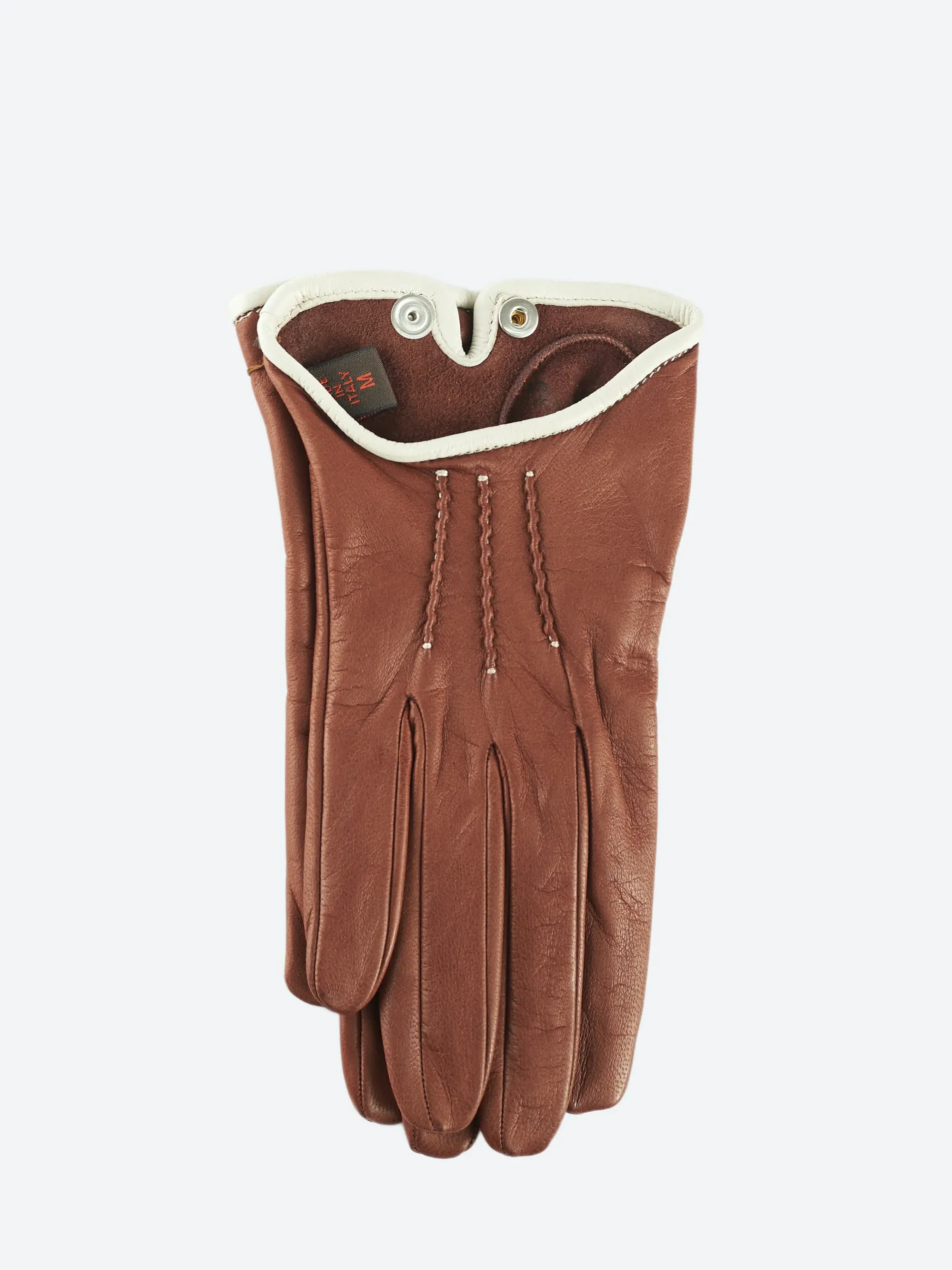 Women’s glove in Nappa leather with handstitched details and contrasting border.