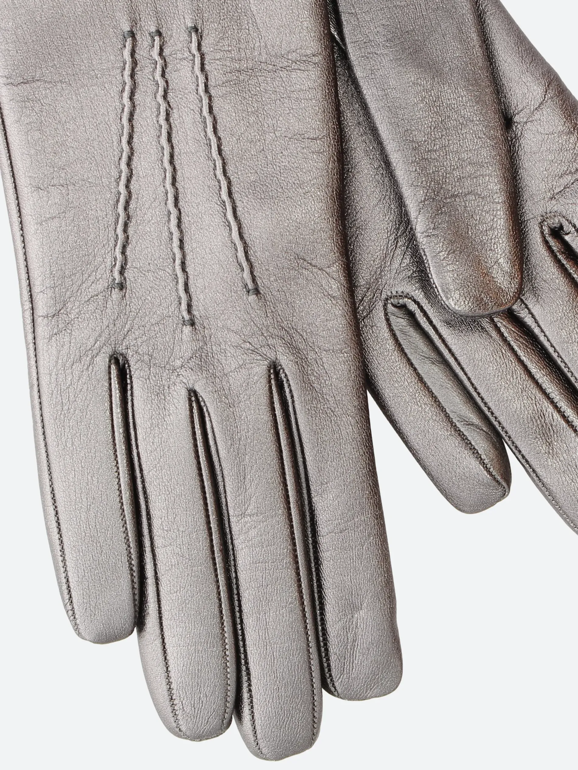 Women’s metallic leather glove with soft 100% cashmere lining and side opening on the wrist.