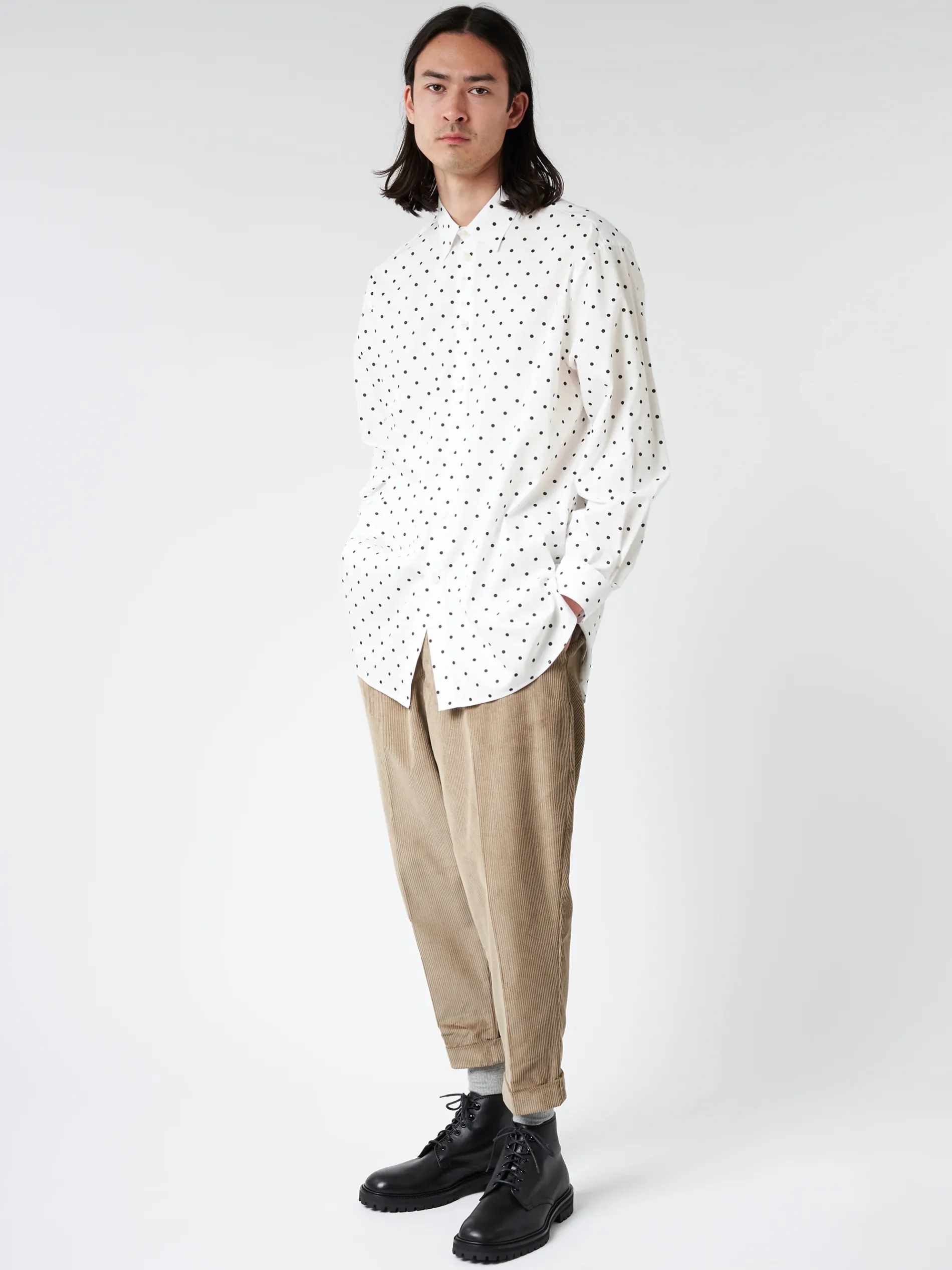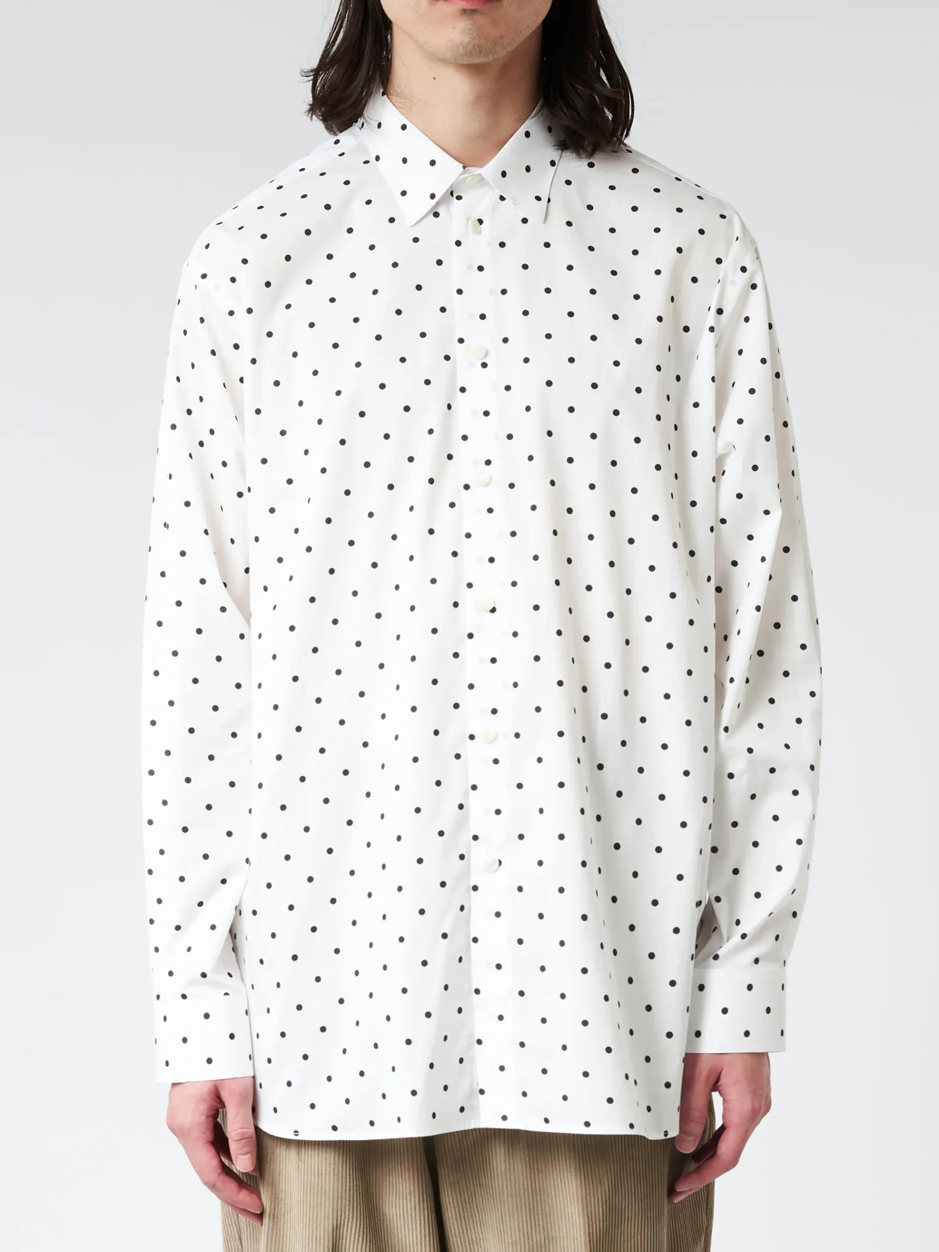 Long-sleeved cotton poplin shirt, embellished with a micro-polka-dot print.