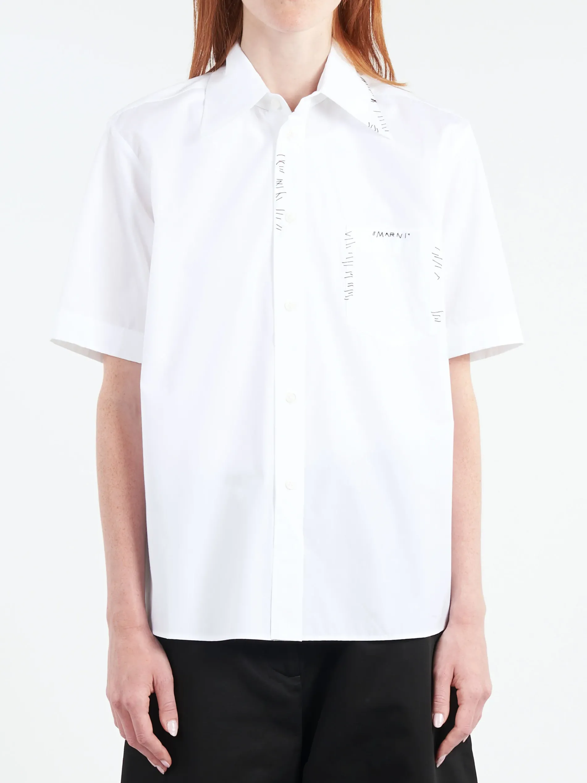 Short-sleeved shirt made from organic cotton poplin. Hand-stitched Marni mending on the collar, placket and pocket with flower detail.