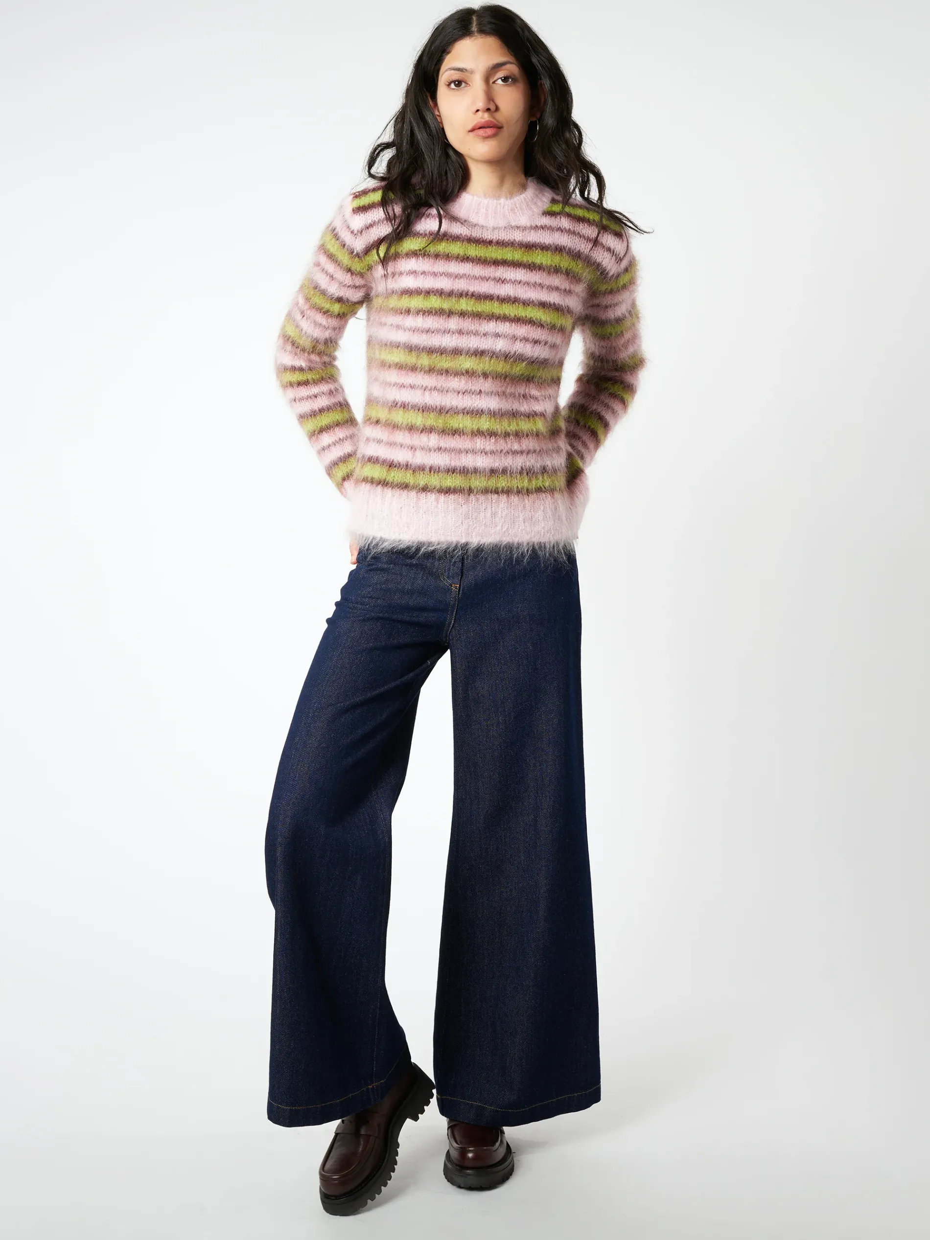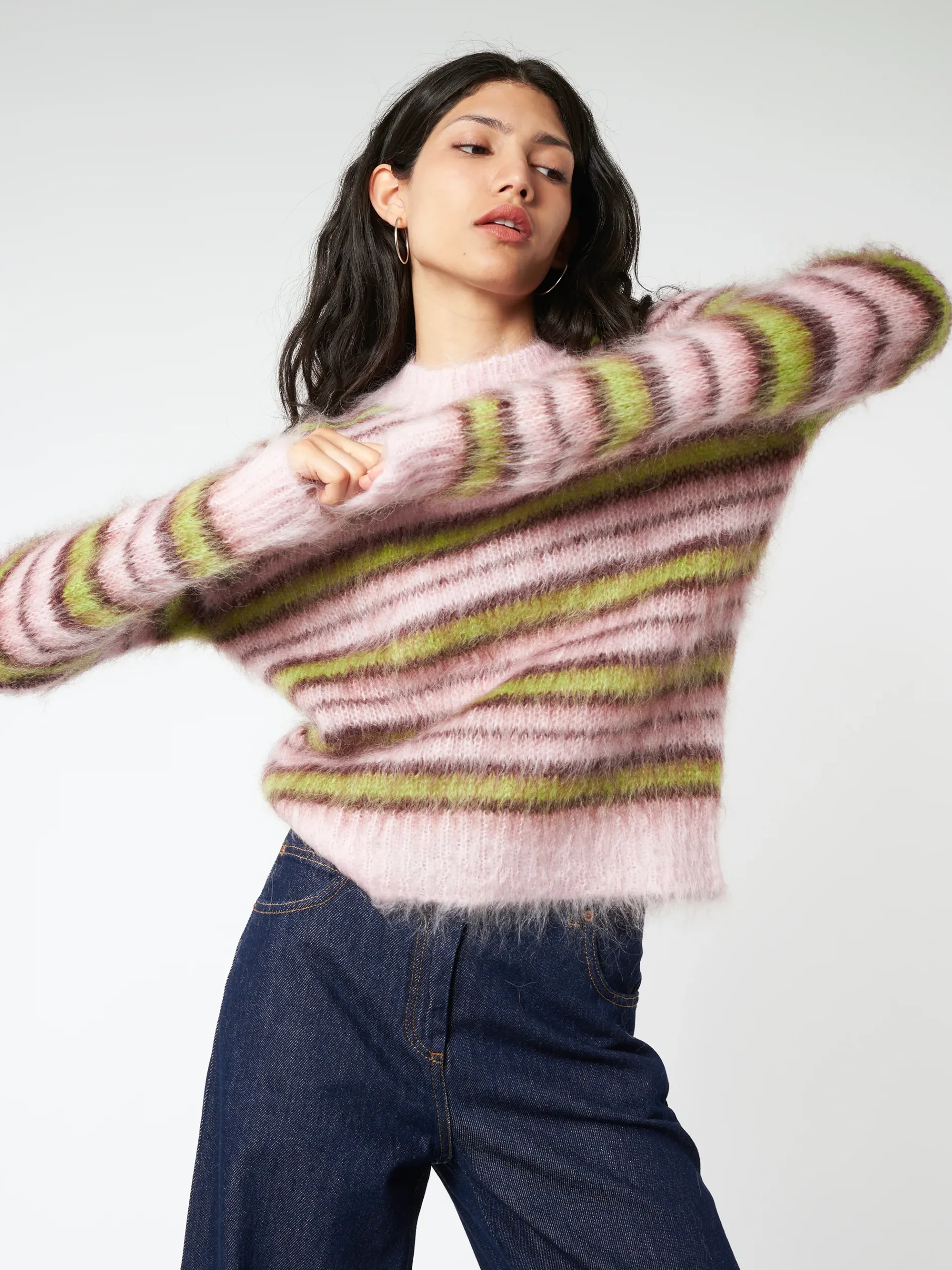 A signature crew neck sweater from Marni crafted from a fuzzy mohair blend. The relaxed cut adds a cozy element.