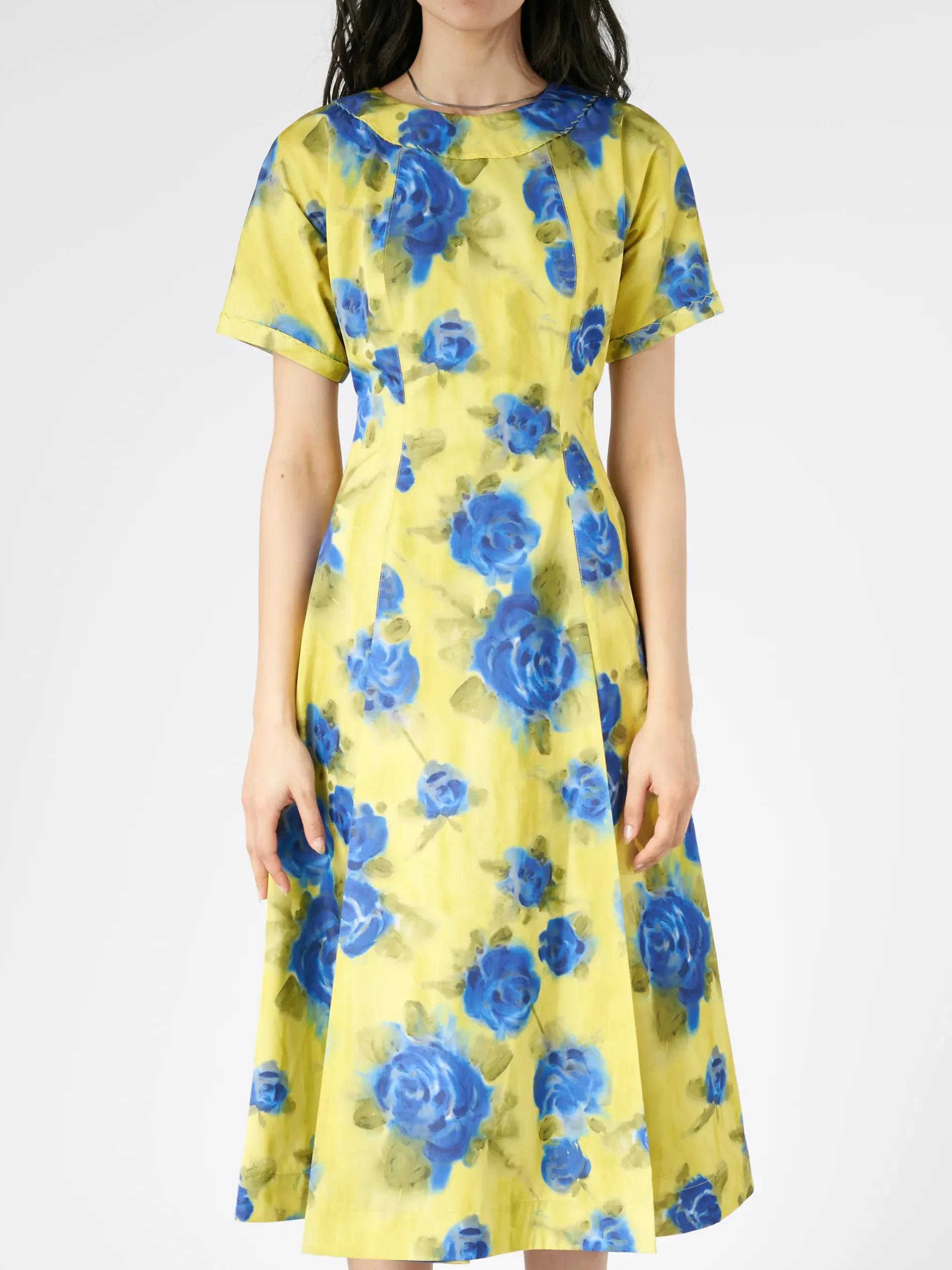 Structured midi dress made from taffeta, embellished with this season’s Idyll triumph of roses print.