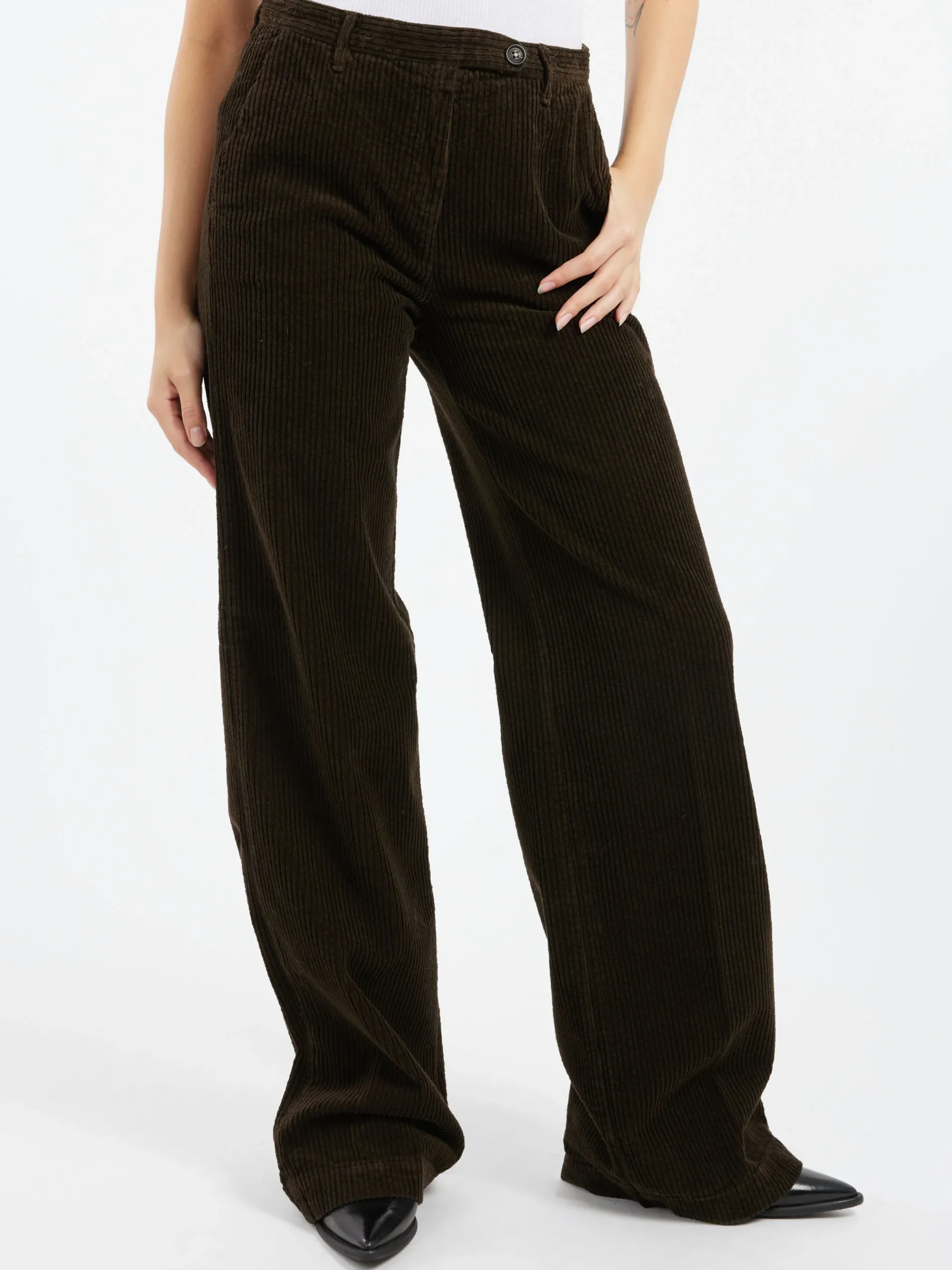 Massimo Alba high-rise pants with palazzo leg. Made of French corduroy cotton.