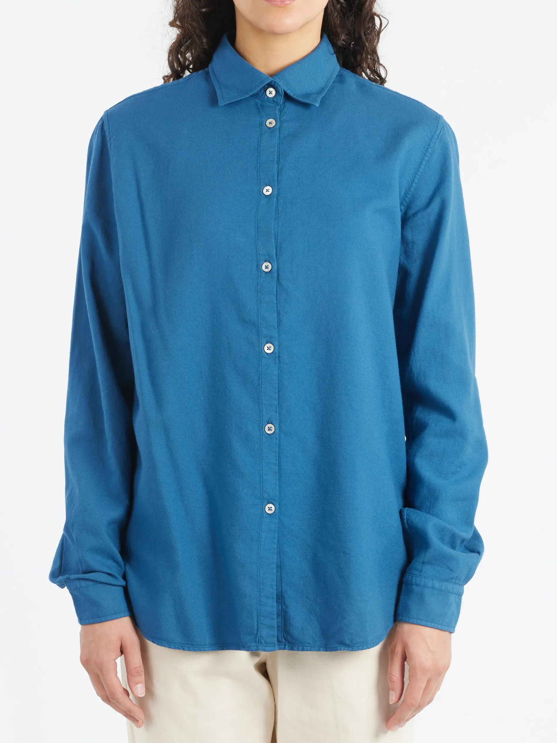 Slim-fit shirt with classic collar, pointed yoke, front placket with mother-of-pearl buttons, made of soft cotton voile.