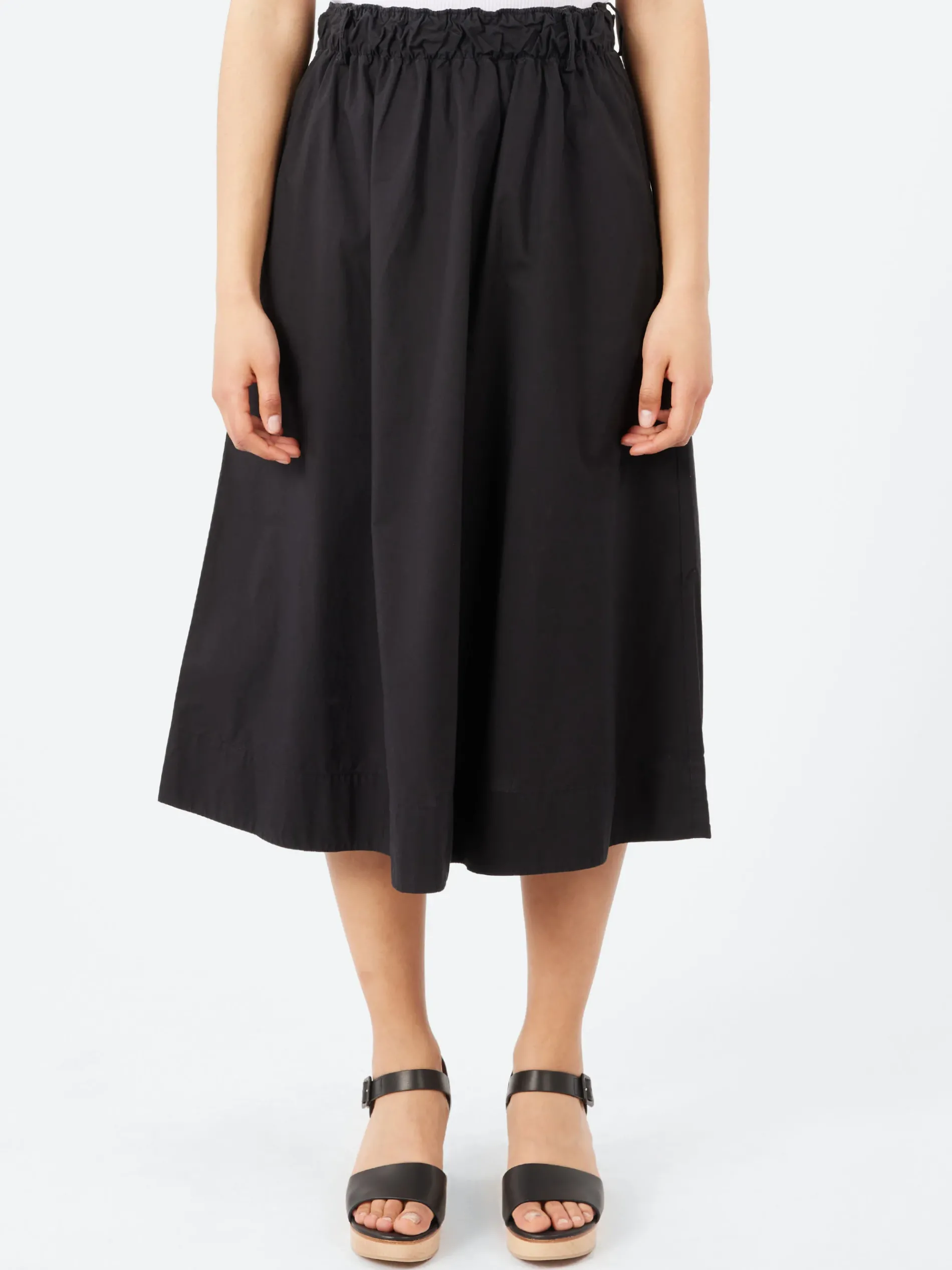 The flared shape of this skirt creates a graceful yet relaxed silhouette, flowing effortlessly with your movements. It adds a touch of timeless coolness to every look, making it a versatile piece for both casual and formal occasions. The fabric is sustainably made of lightweight organic cotton poplin, providing a good feeling on your skin and breathability always to keep you cool.