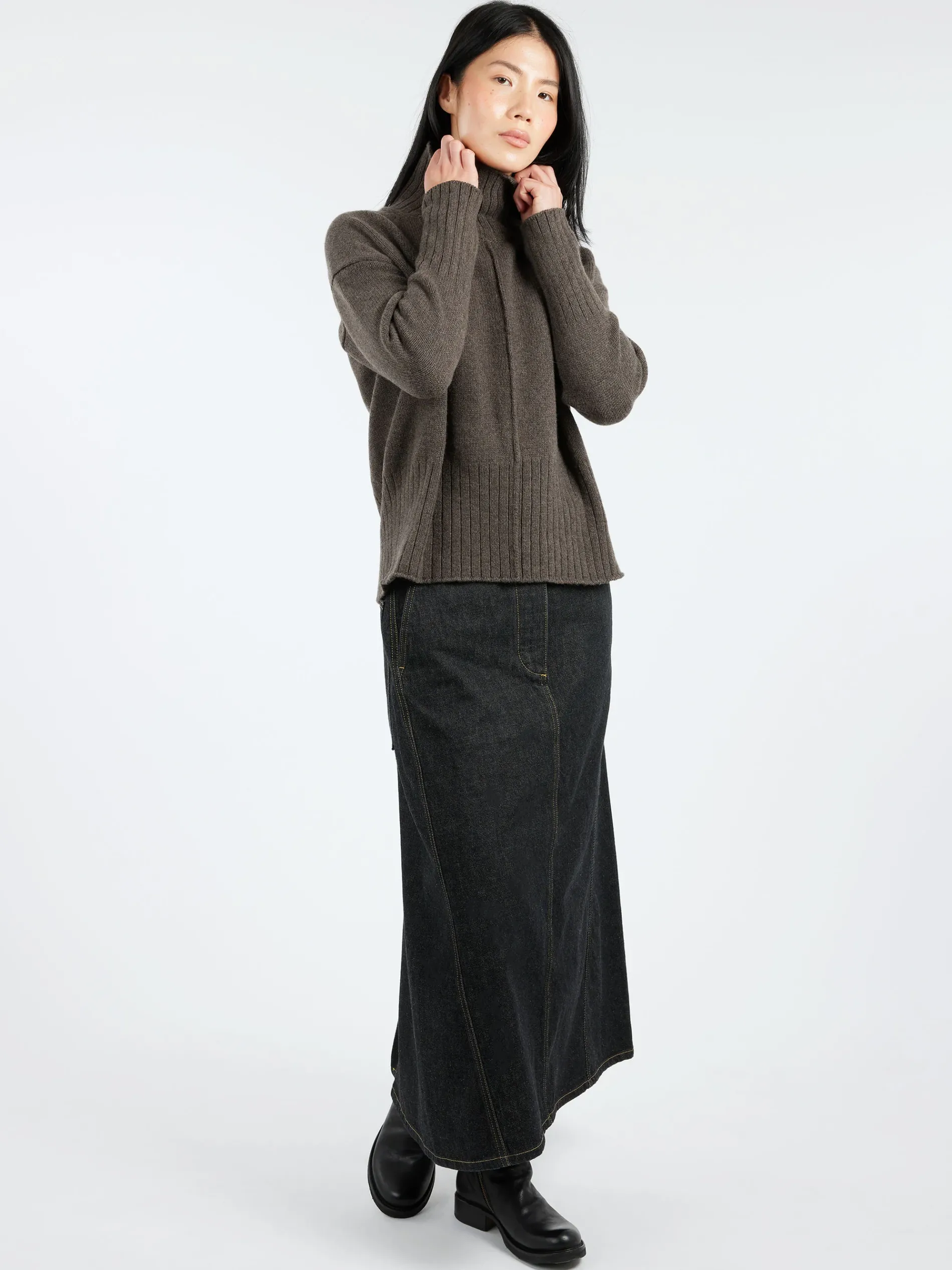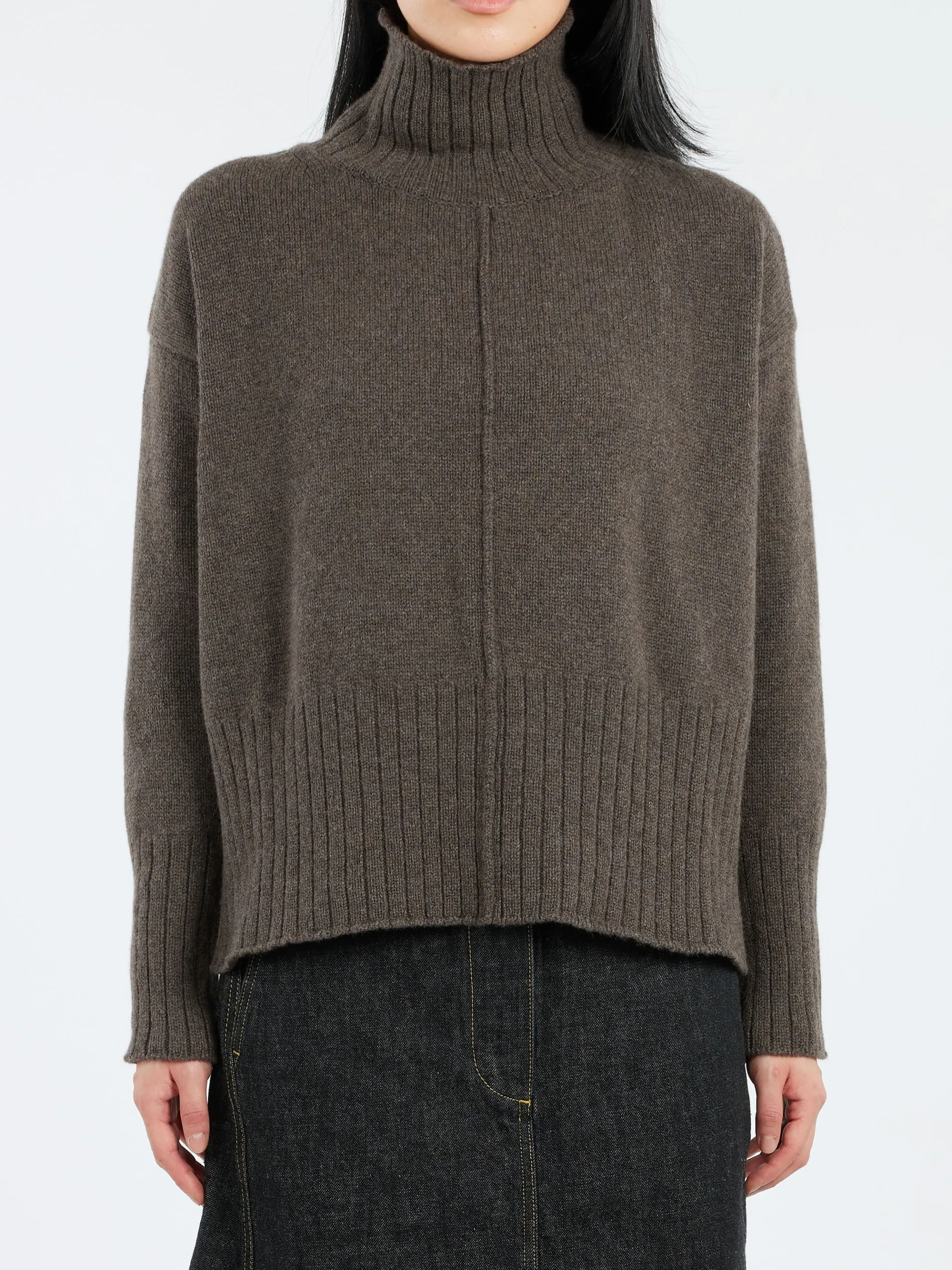 MJ Watson cashmere blend sweater features a decorative raised center seam and a thick, ribbed hem.