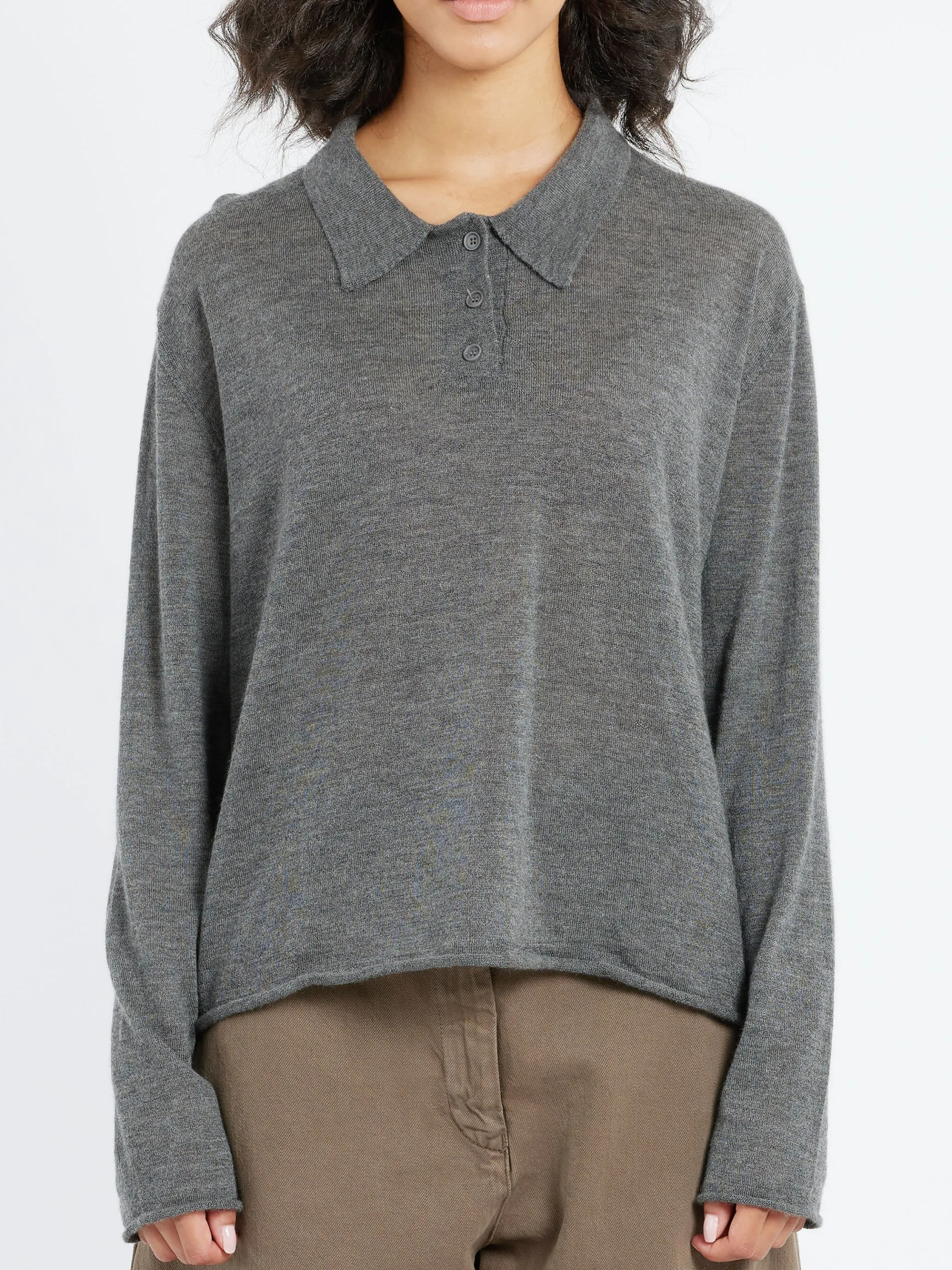 MJ Watson cashmere polo sweater features rolled edges.