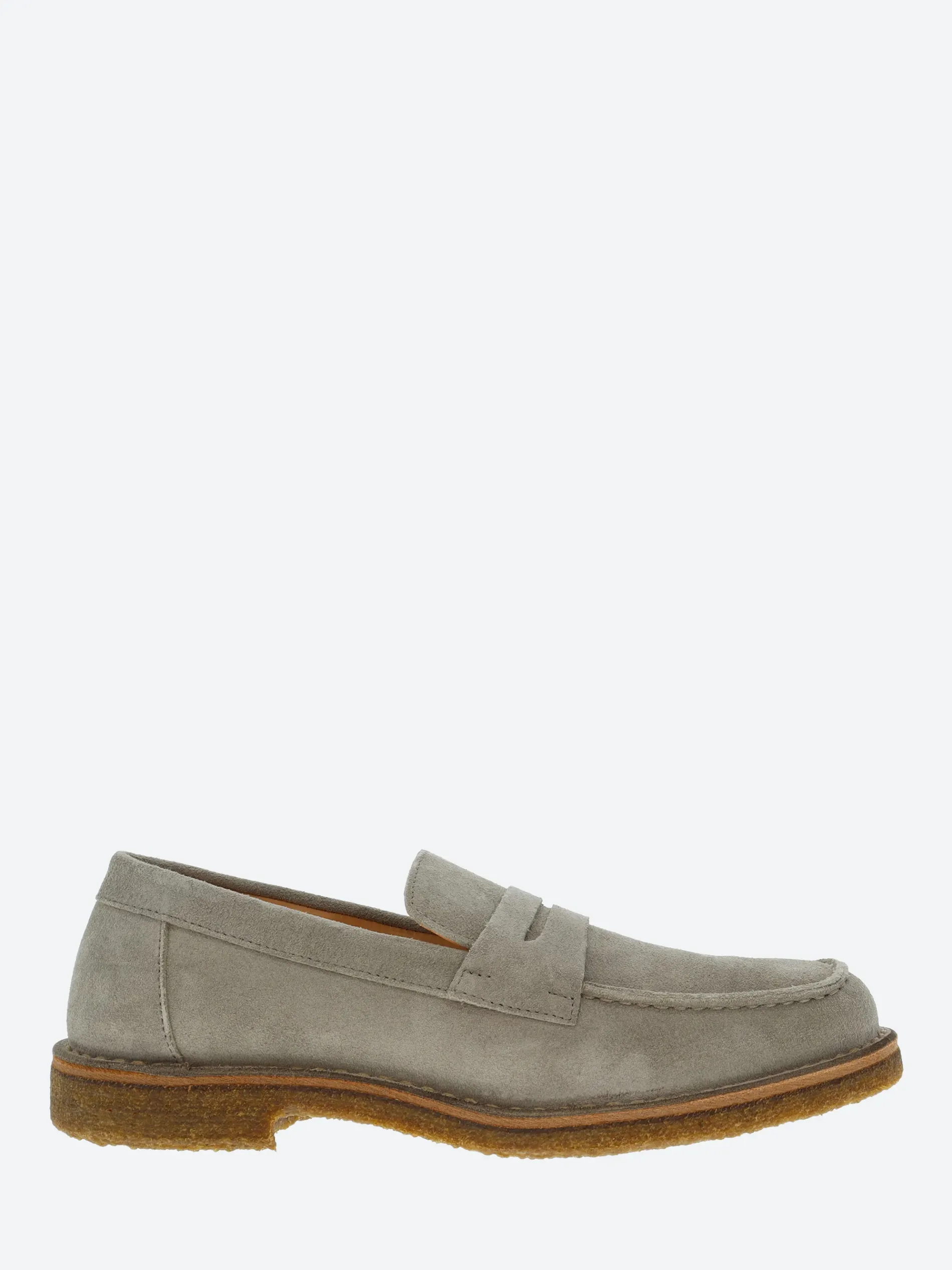 Astorflex Mokaflex loafer handcrafted with suede and finished with the brand’s signature external stitch “ideal” construction method.