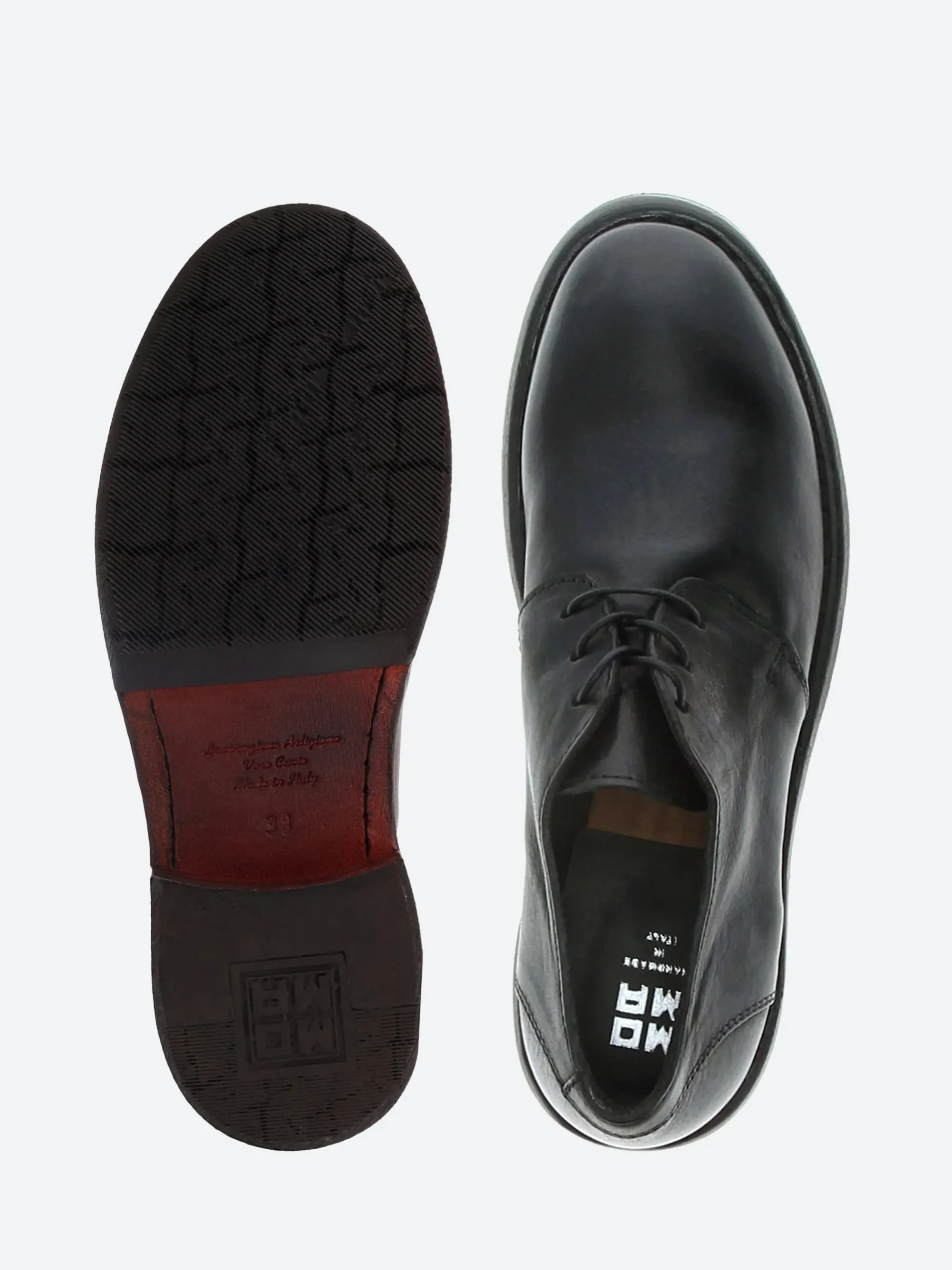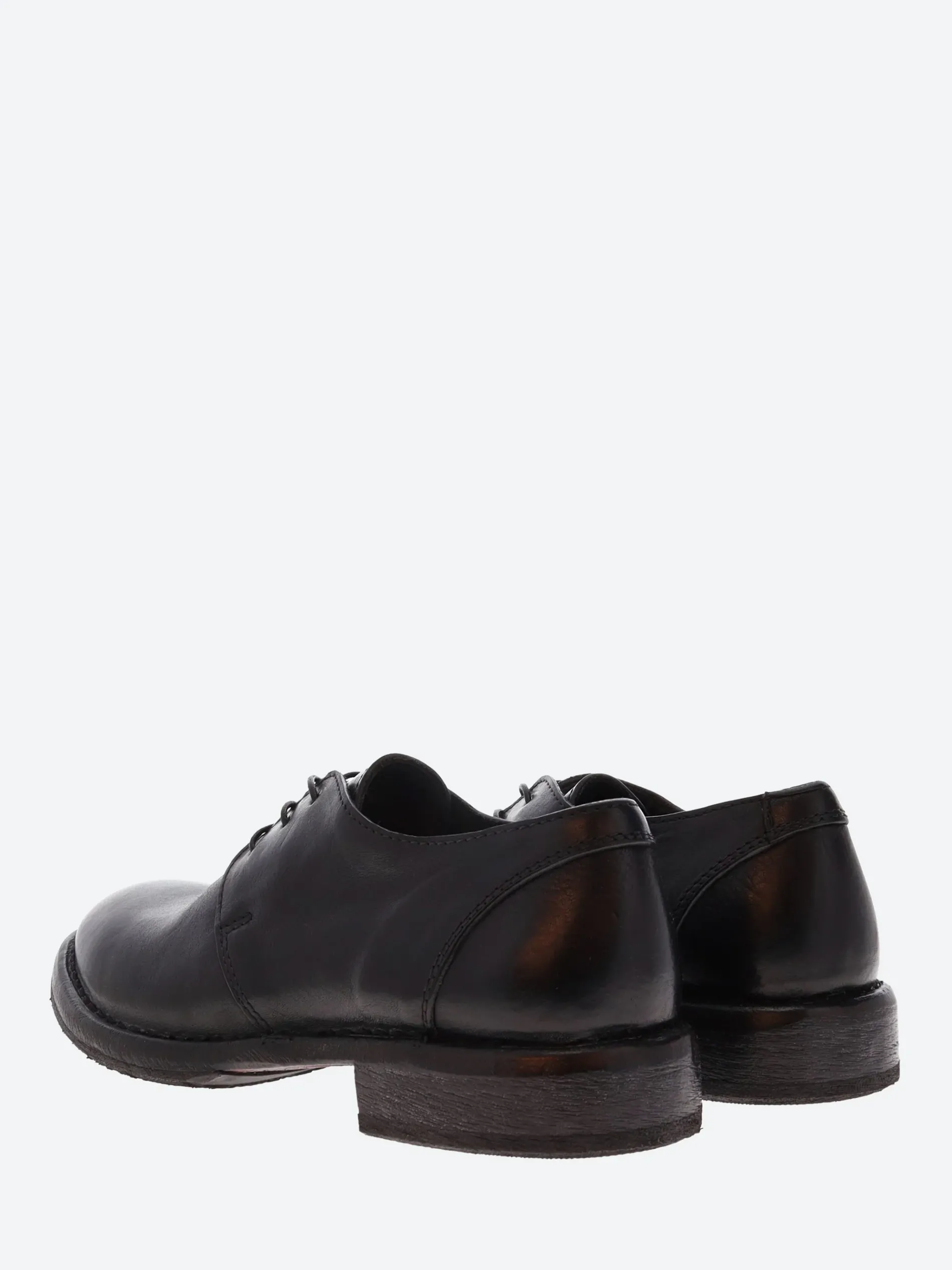 MOMA derby shoe in vintage-style leather and three-hole lacing. Handmade in Italy with a non-slip rubber insert.
