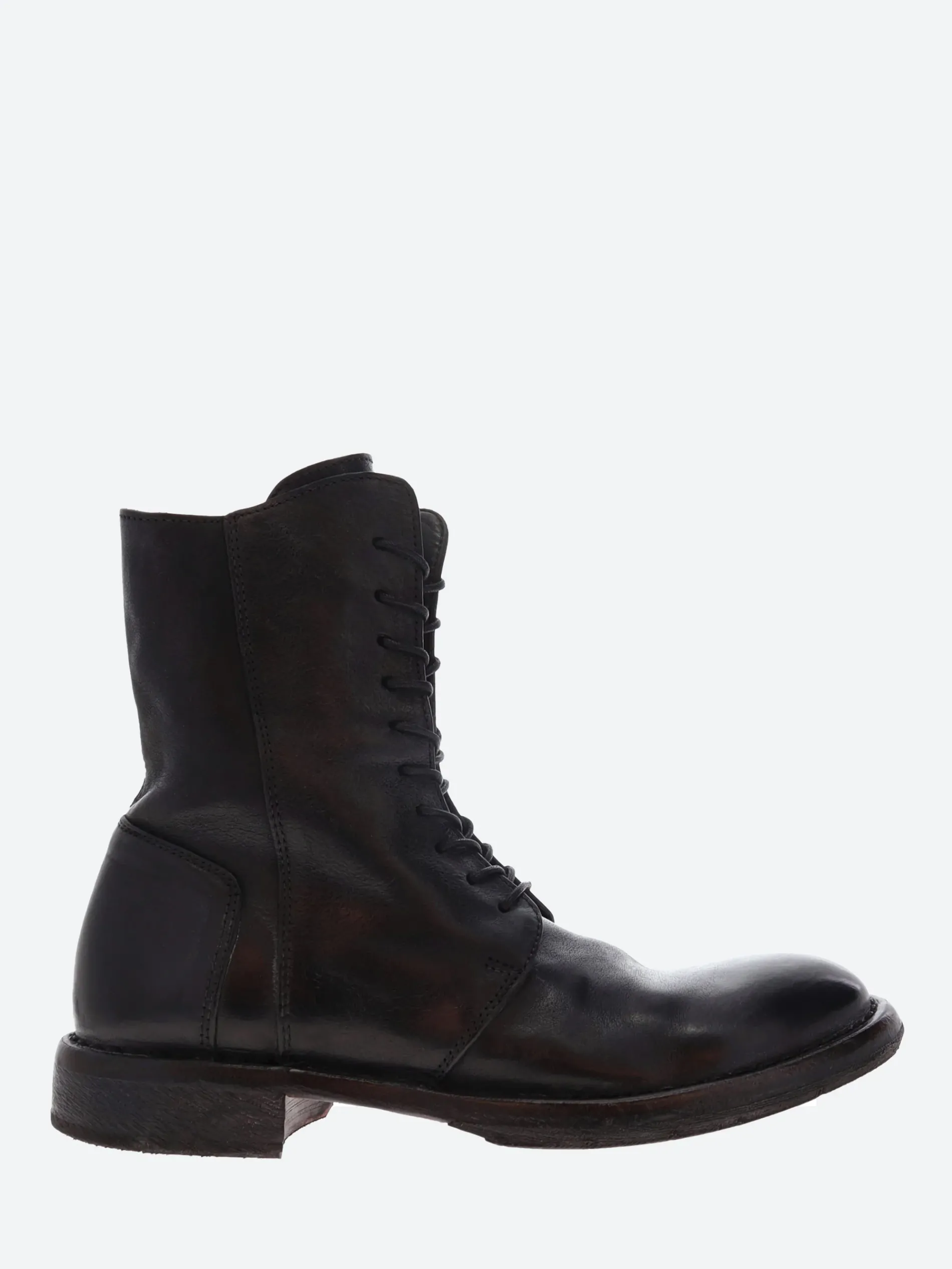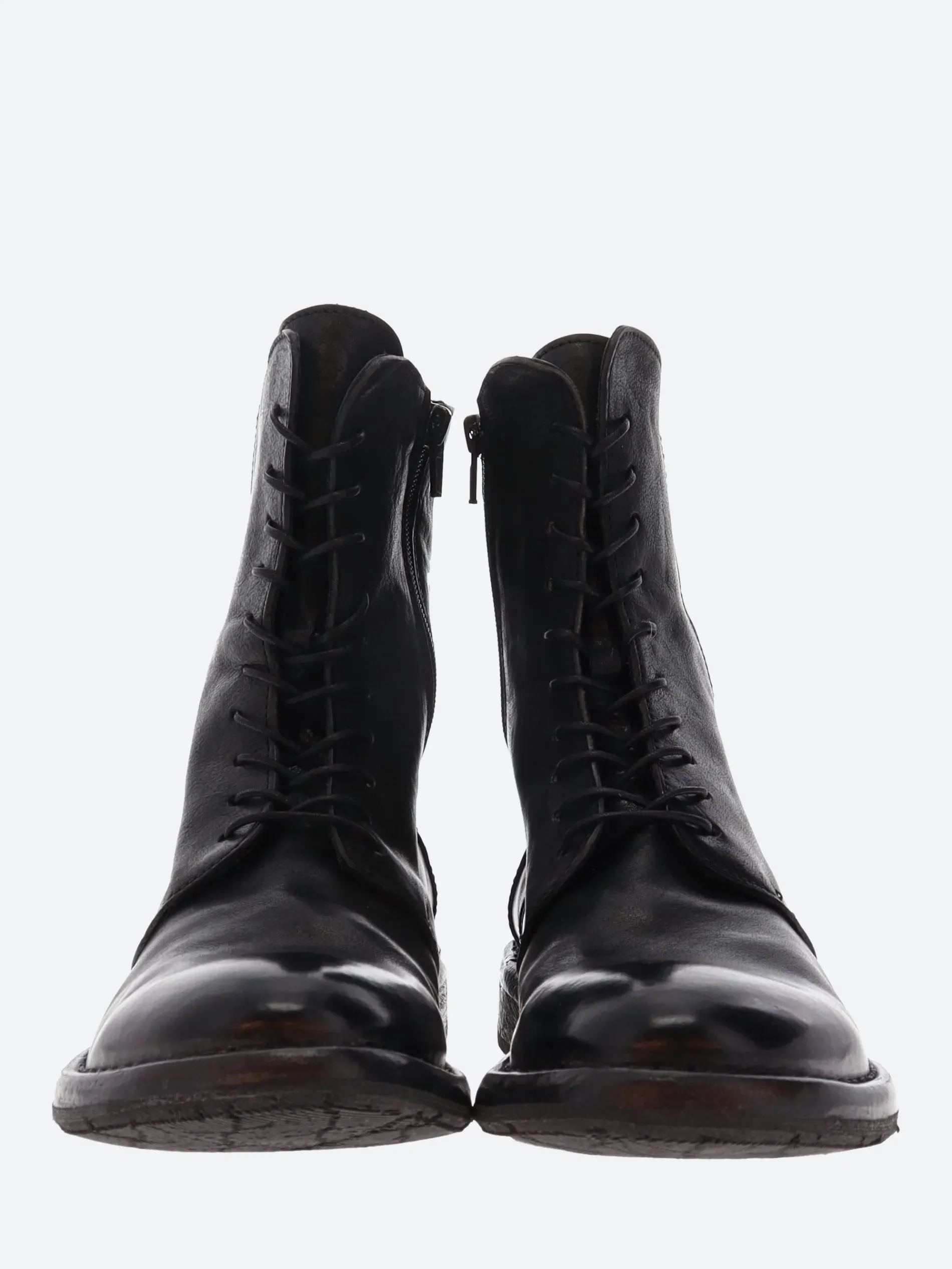 MOMA lace-up boot in vintage-effect leather and an inside zip closure for easy on and off. Handmade in Italy with a non-slip rubber sole insert.