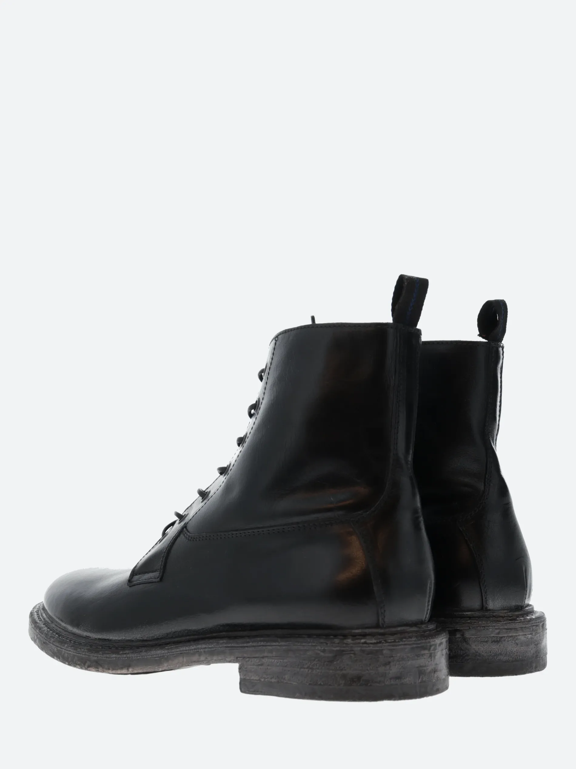 A plain-toe Moma boot is handcrafted in Italy and set on a durable rubber tread.