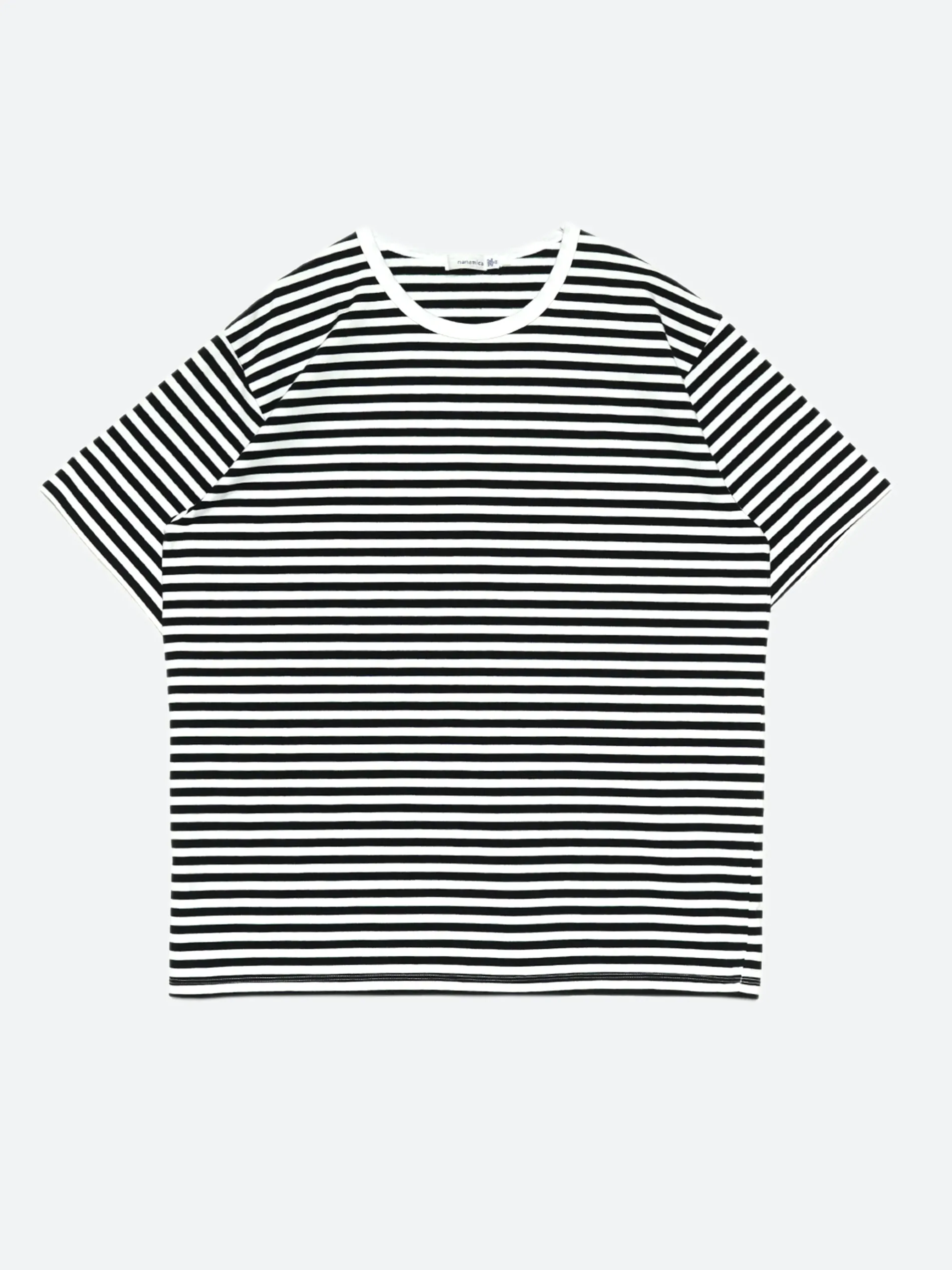 Nanamica t-shirt made using COOLMAX® cotton striped fabric. Jersey fabric woven using a fleece-knitting machine has moderate volume and a beautiful grain.