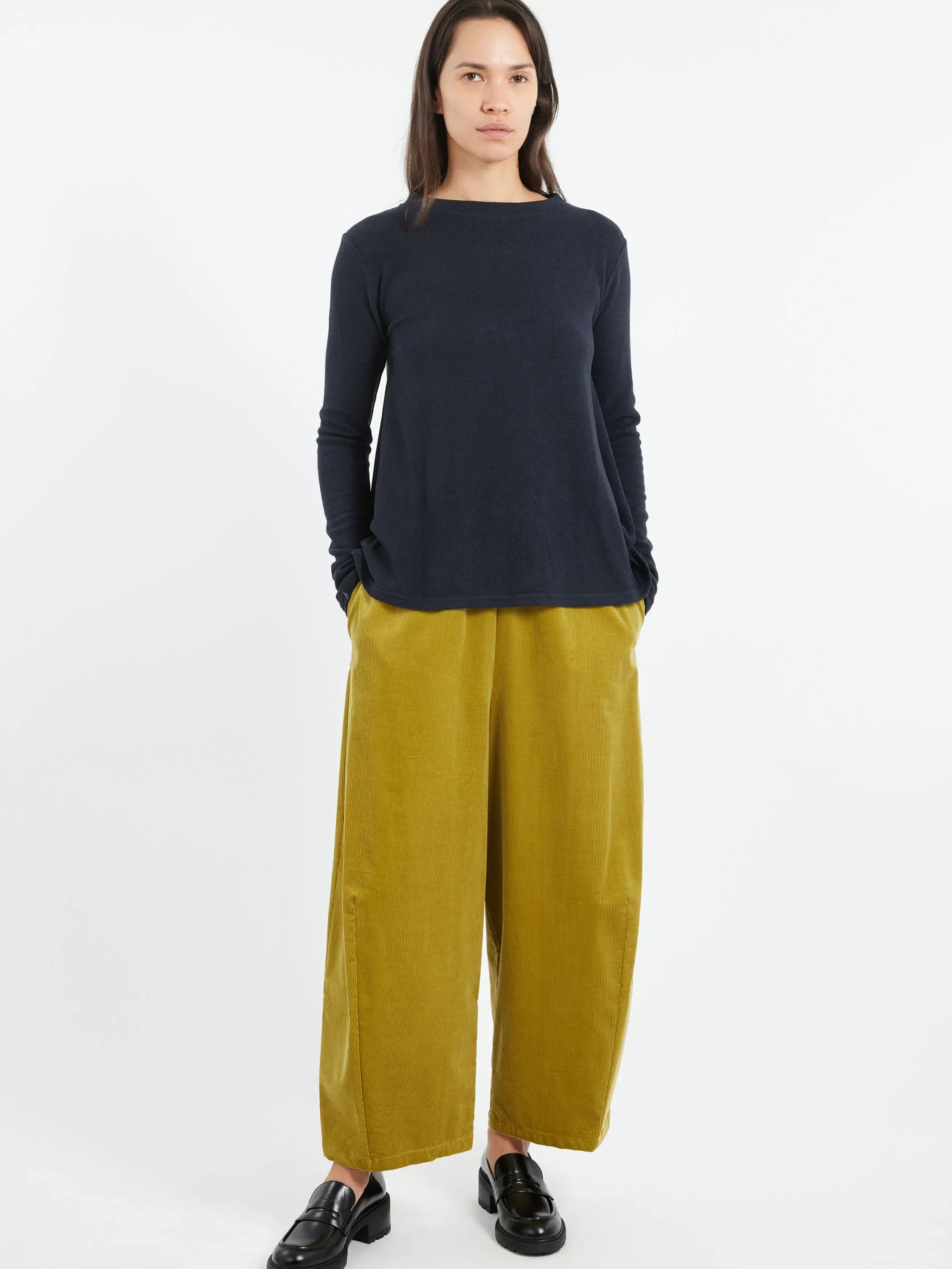 Neirami boatneck sweater with a flared shape and intentionally wide lines to make it comfortable and dynamic.