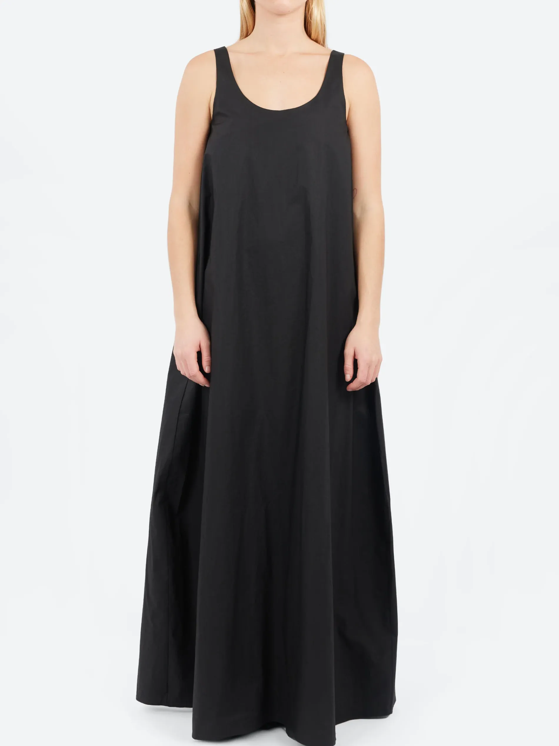 The Neirami long dress features flared lines that gracefully follow the body, never clinging to the waist or hips. With a round neckline and sleeveless design, this dress embodies the relaxed fit that forms the foundation of the Neirami silhouette.