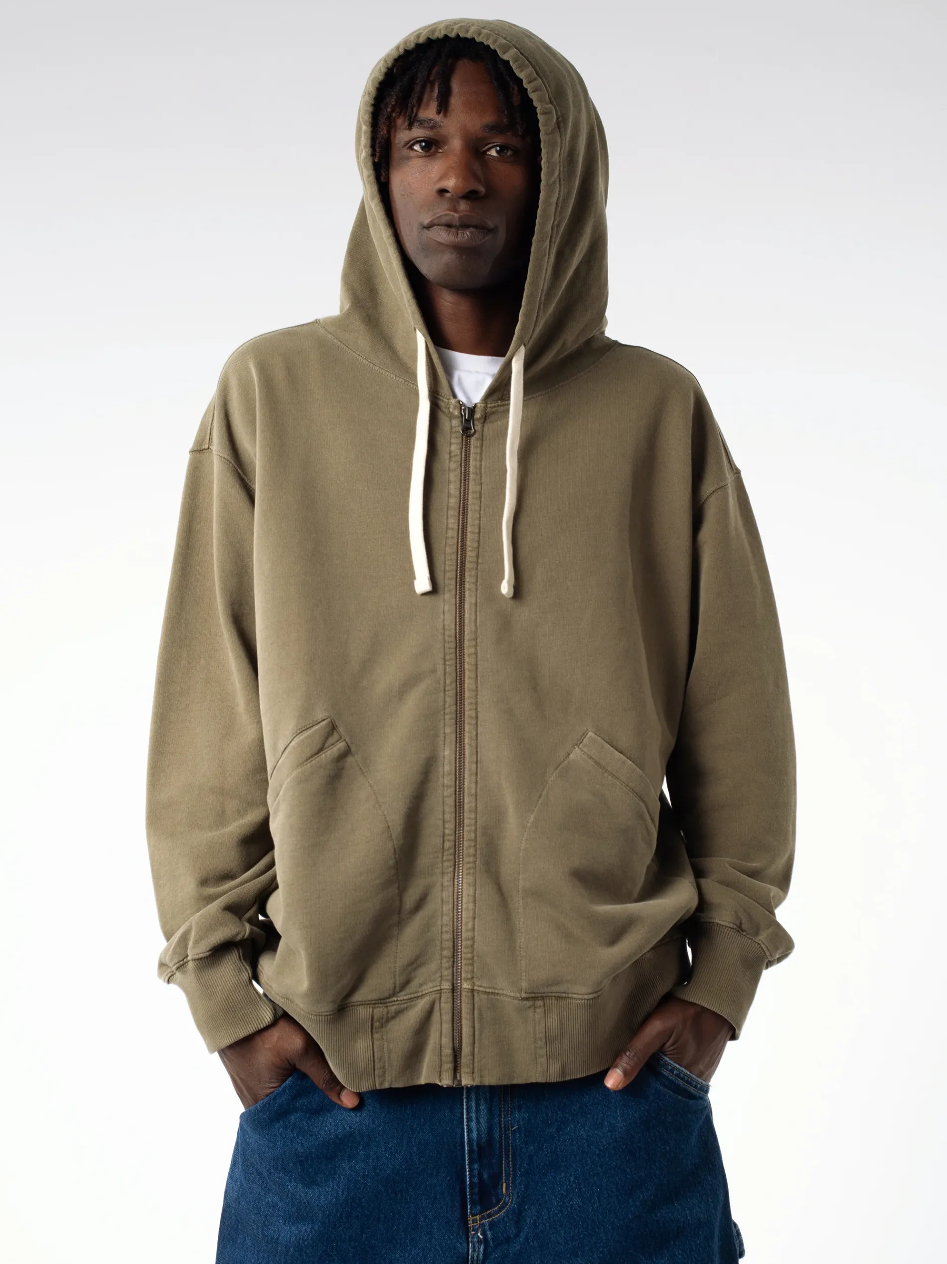 The Army Gym Hoodie features a full flat-lock stitch construction originally designed to add extra strength at the seams when worn during contact sports. Other details include full zip through, two front pockets, a drawstring hood and a subtle embroidered broad arrow sleeve detail.
