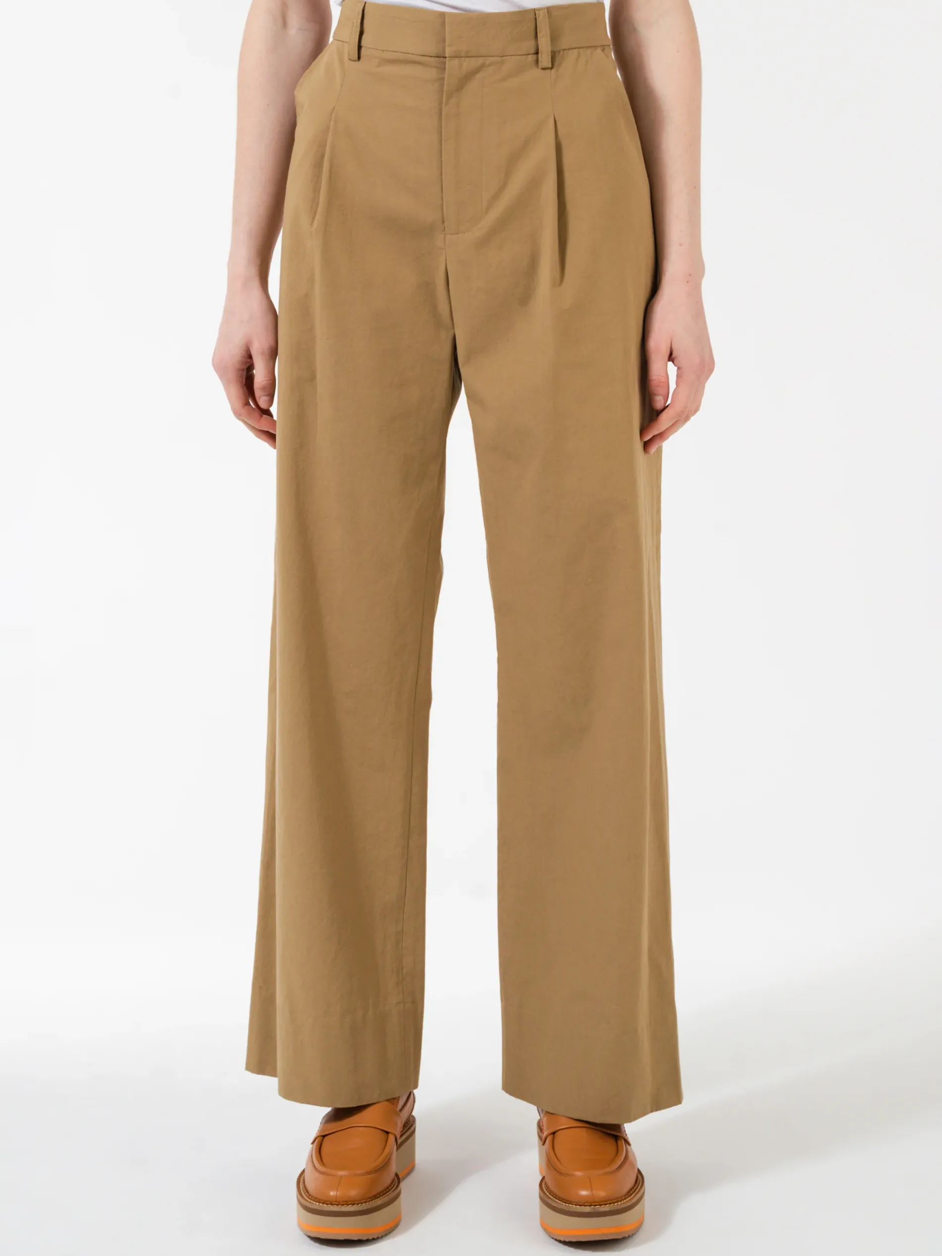 Classic tailored trouser with a straight, slightly flared pant leg in soft yet structured cotton poplin.