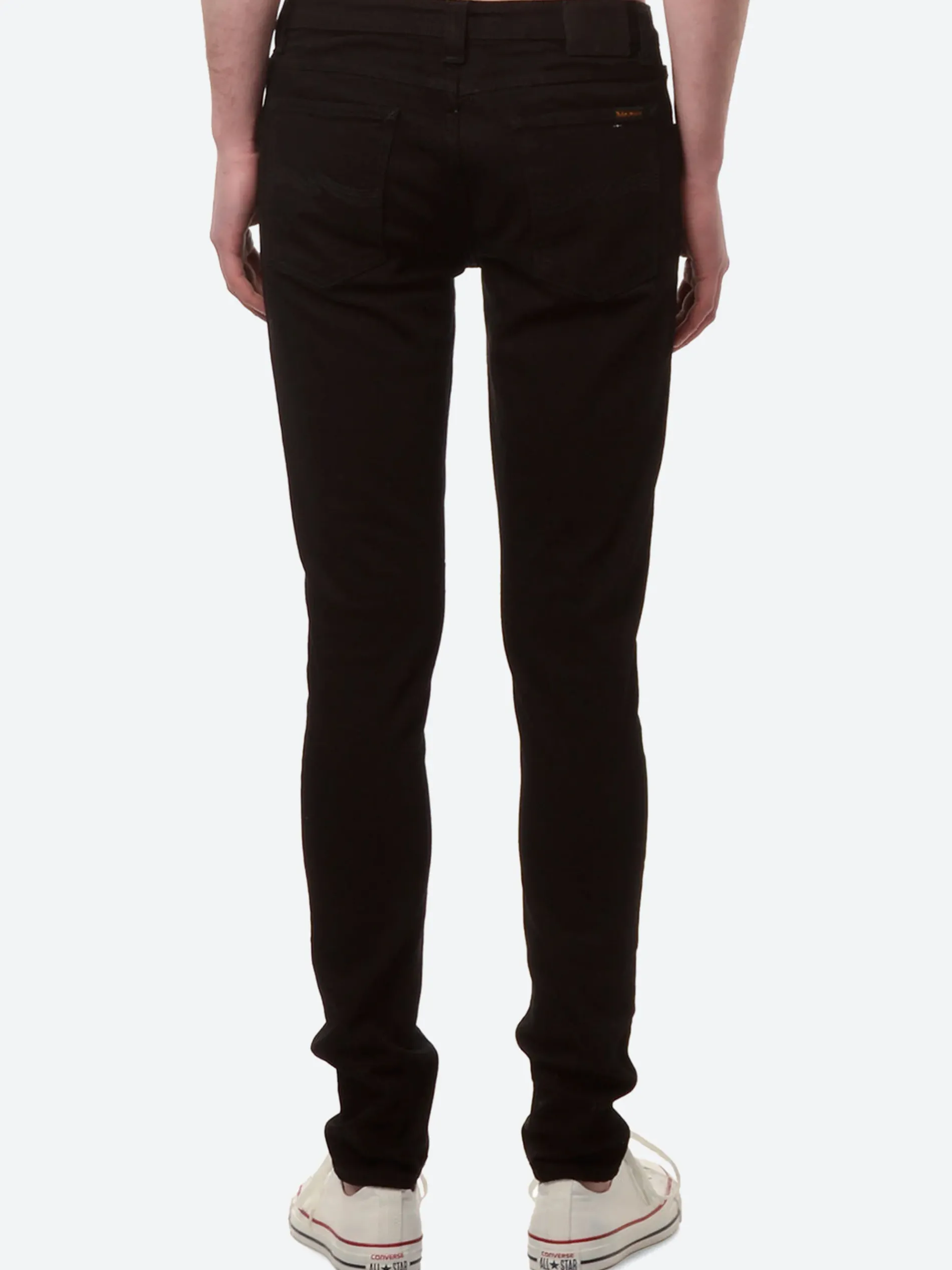 Nudie’s Skinny Lin are a super tight fit jean with a curved waist, tight leg and zip fly. Seen here in an organic black black, this denim is an overdyed stretch black with black stitching, perfect as an everyday basic.