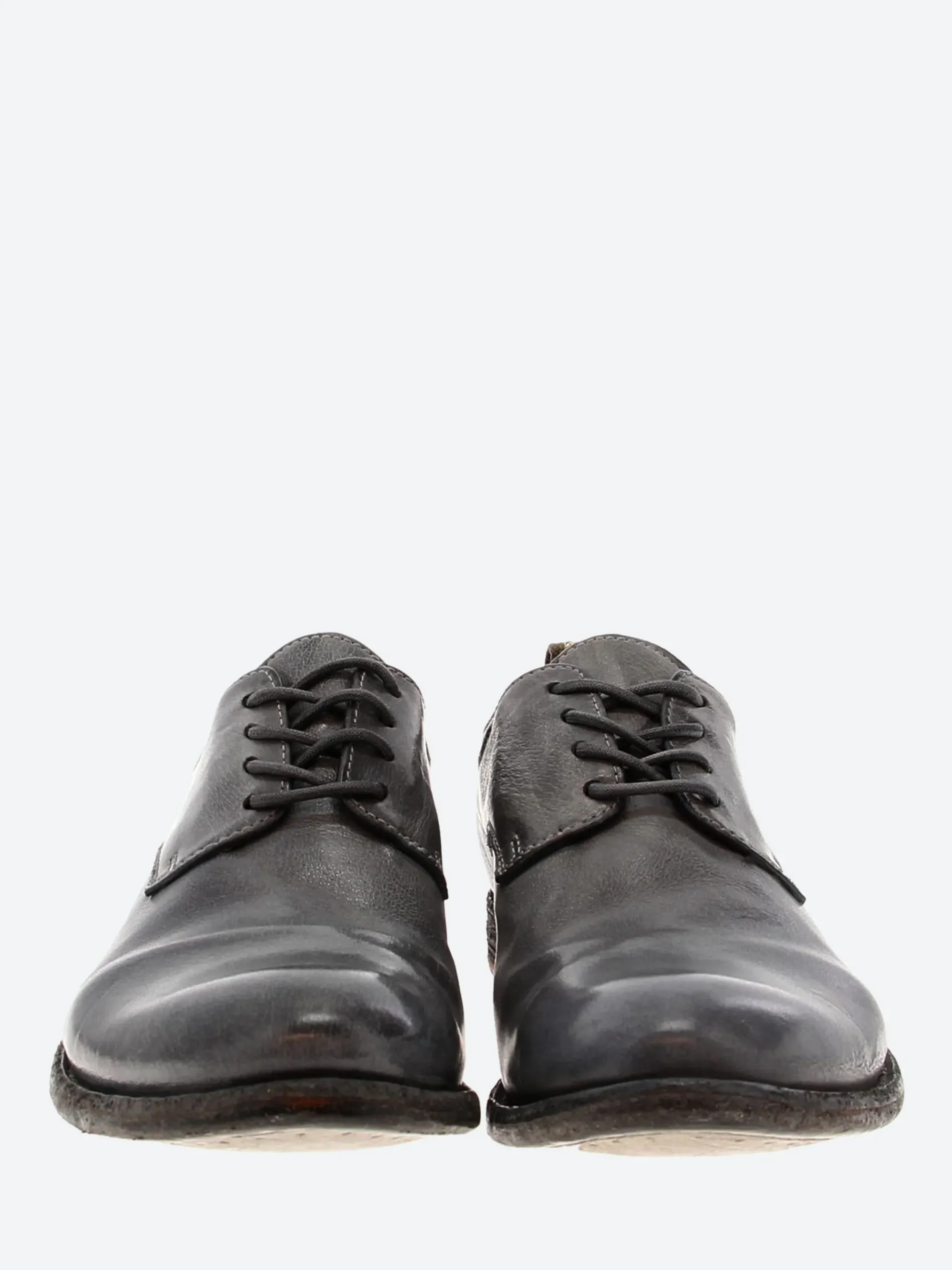 Officine Creative laceless derby in brushed blue leather. Piece-dyed and finished with a stitched custom leather sole.