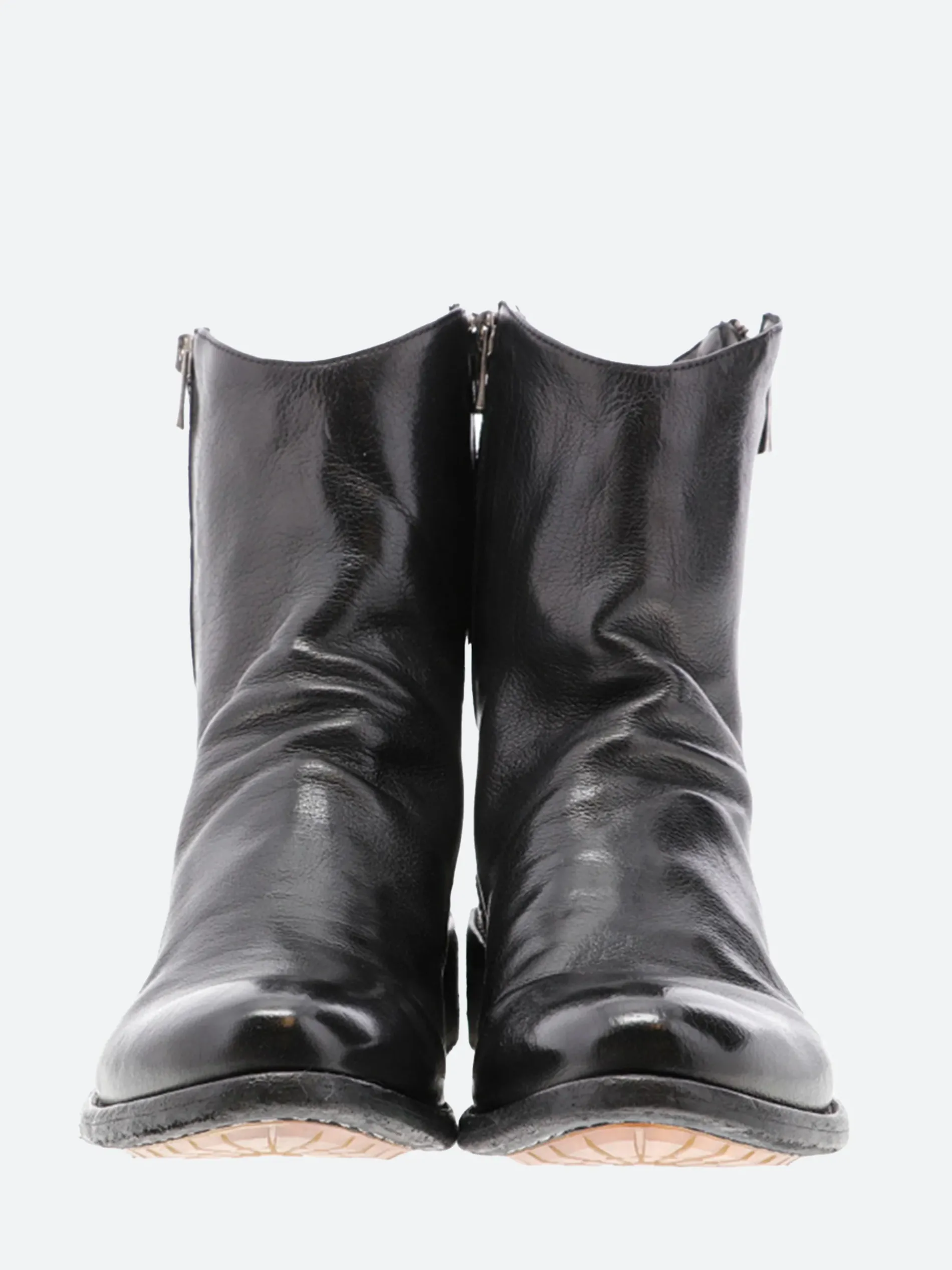 - Silver-tone metal zip closure along both sides