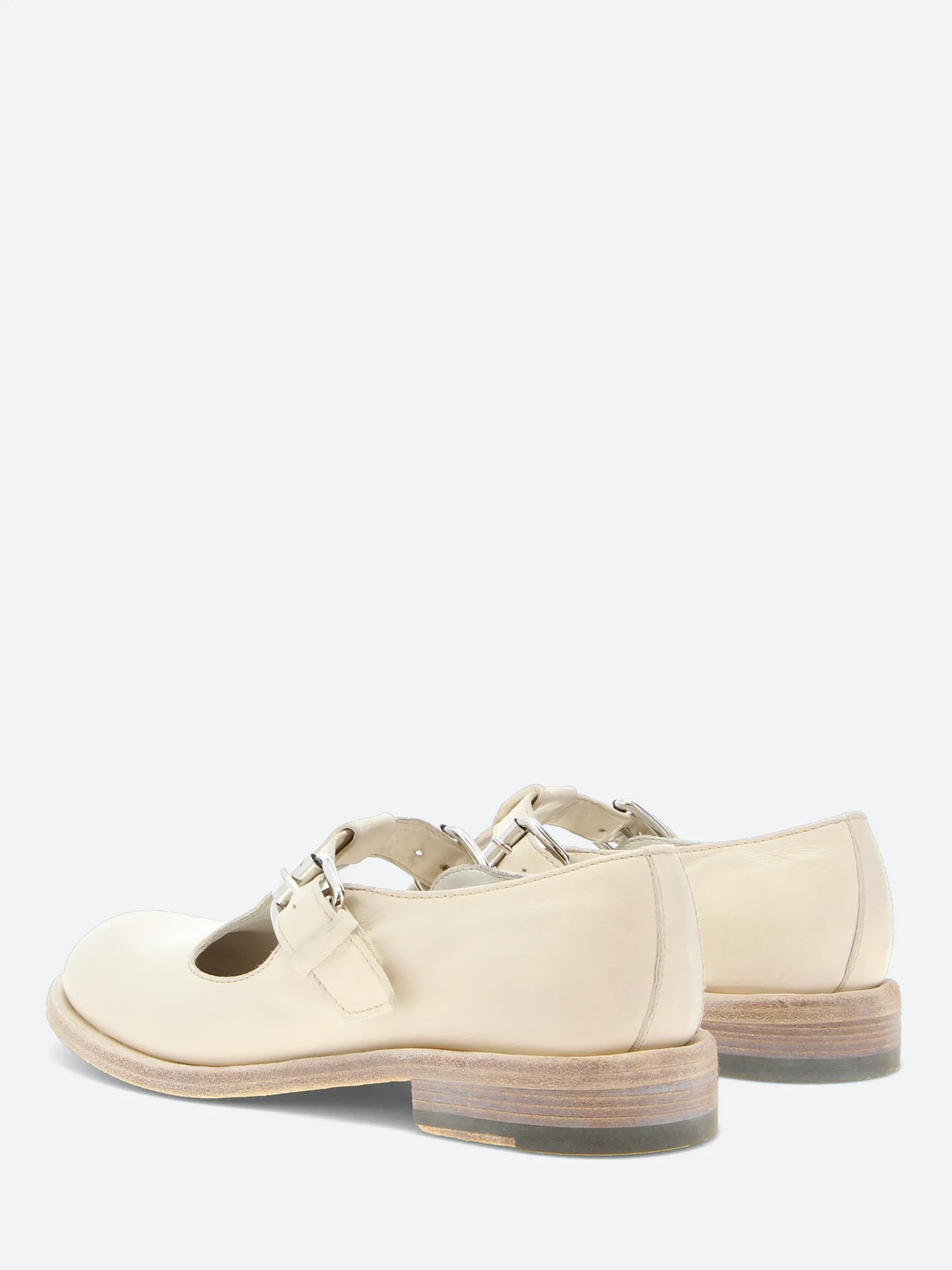 Elegant yet bold, the Rugged 105 T-Bar shoes feature a handwoven leather construction that showcases exceptional Italian craftsmanship. They are set on a leather sole, complemented by a low stacked heel for a touch of sophistication.