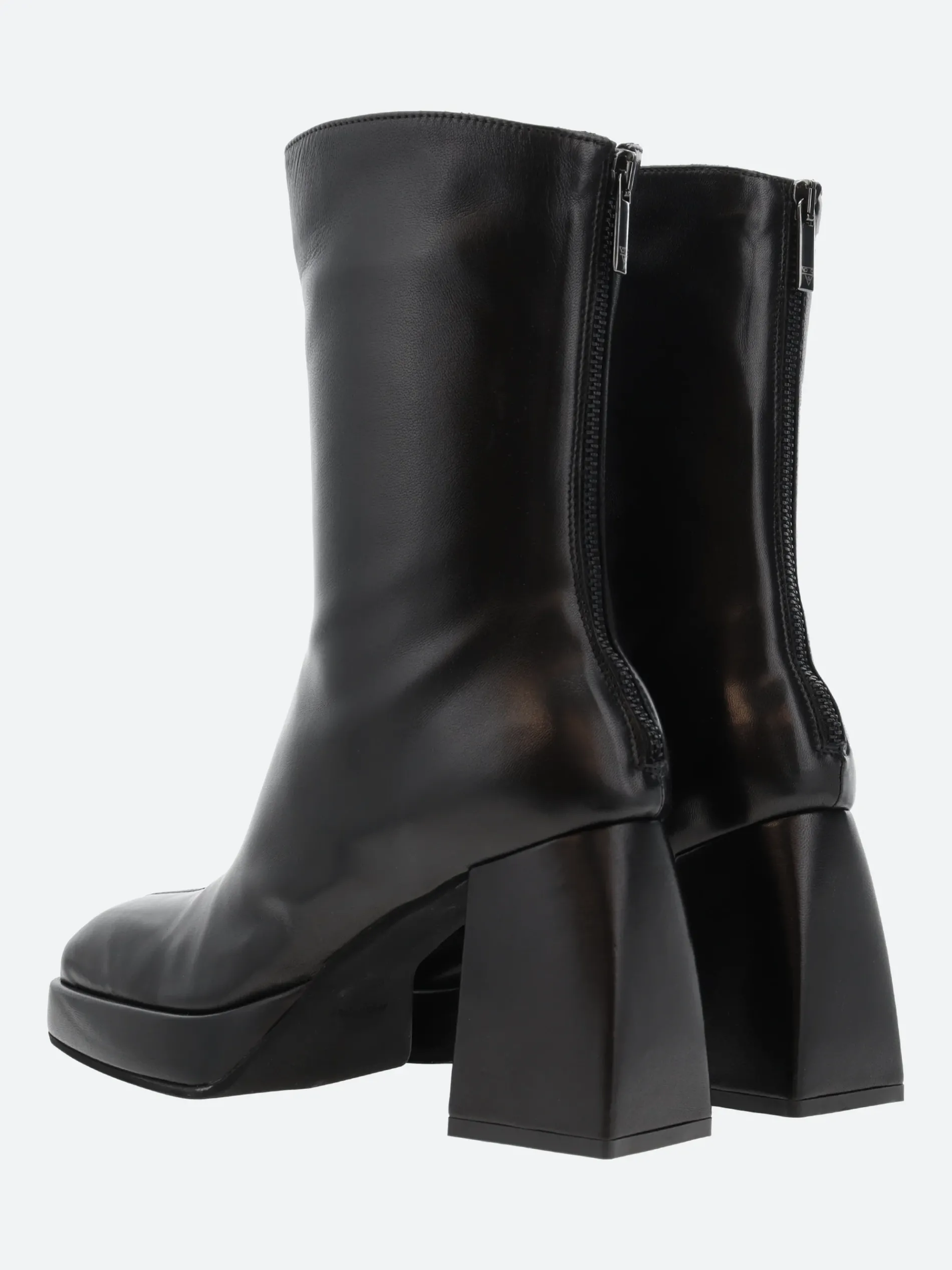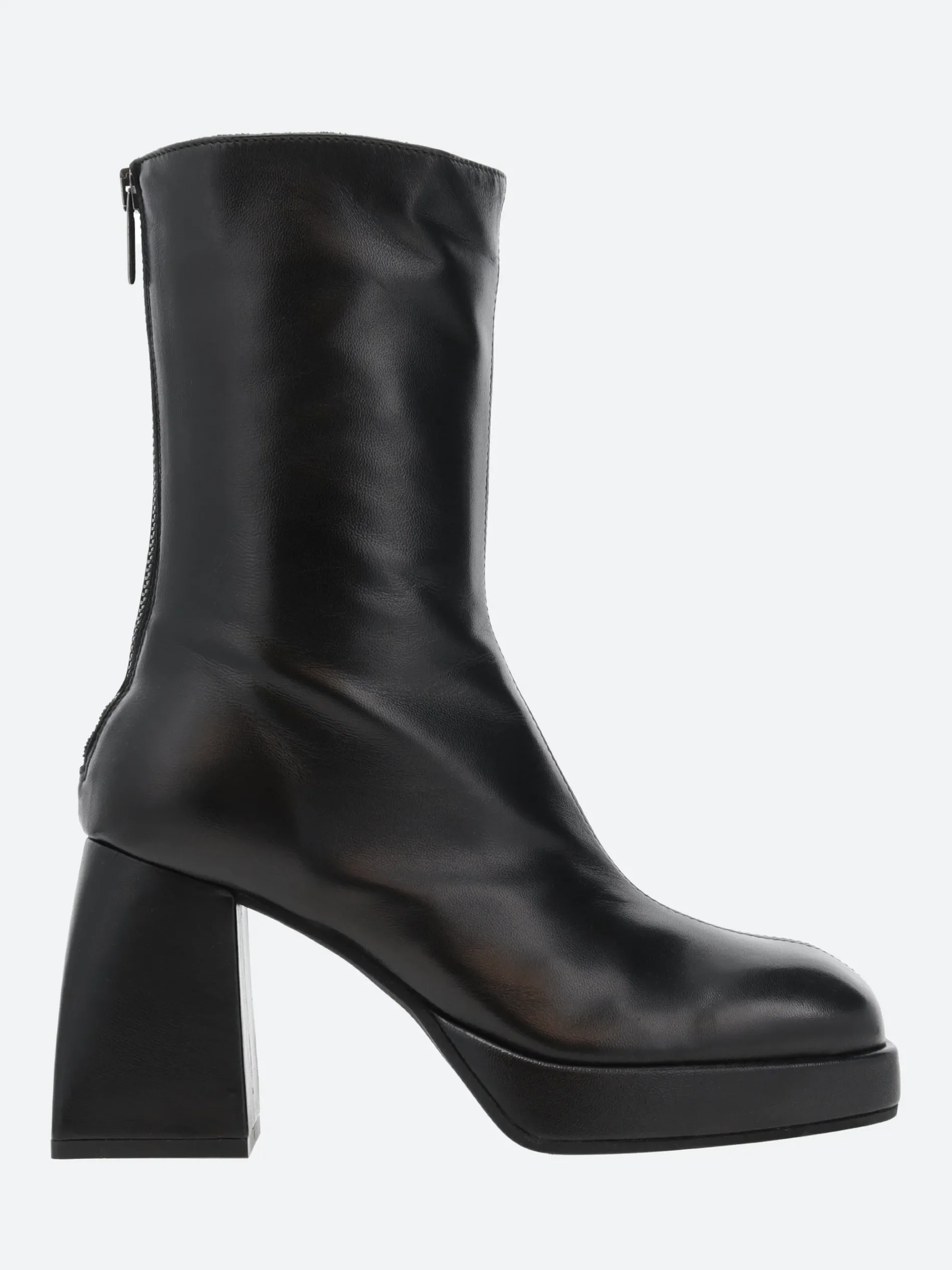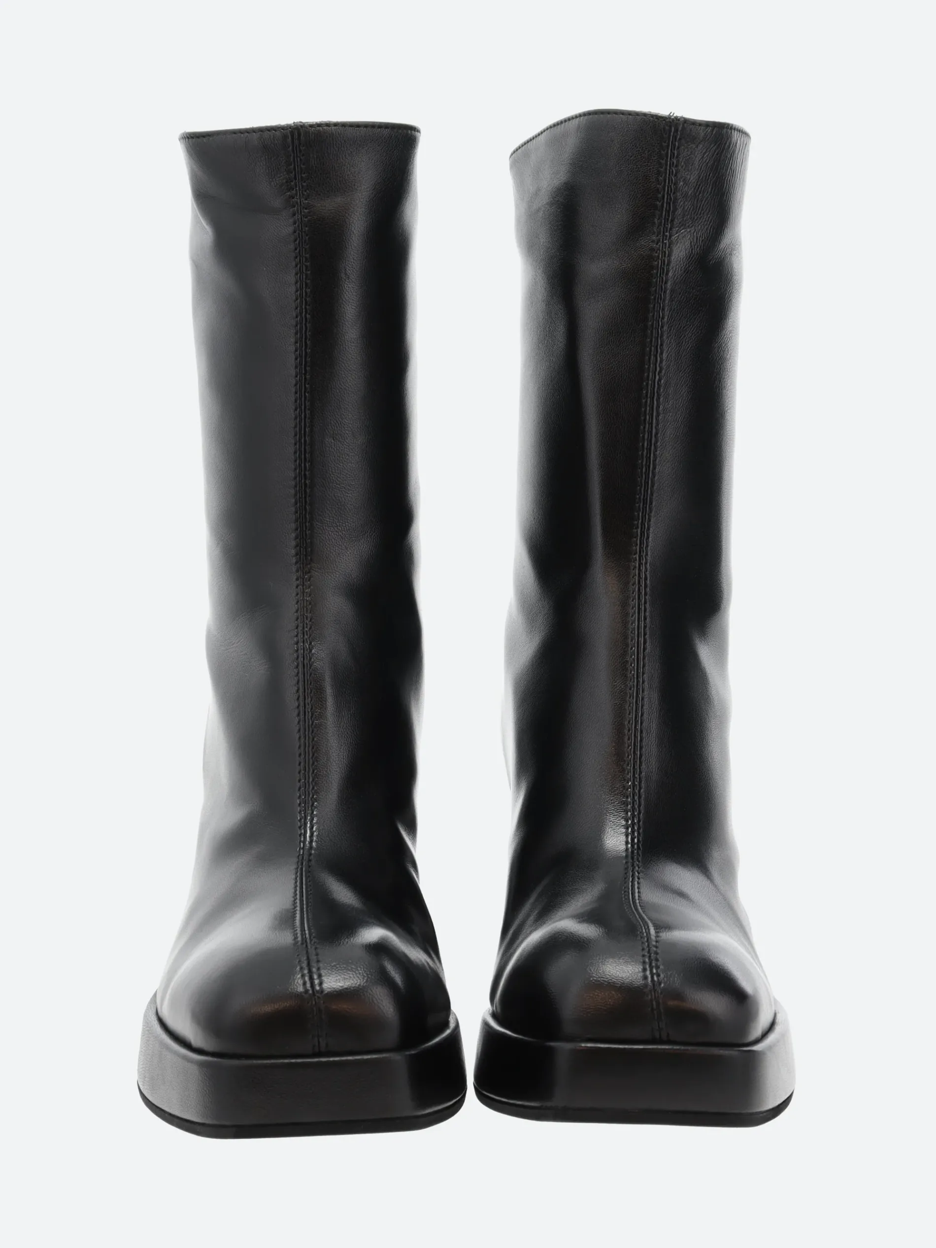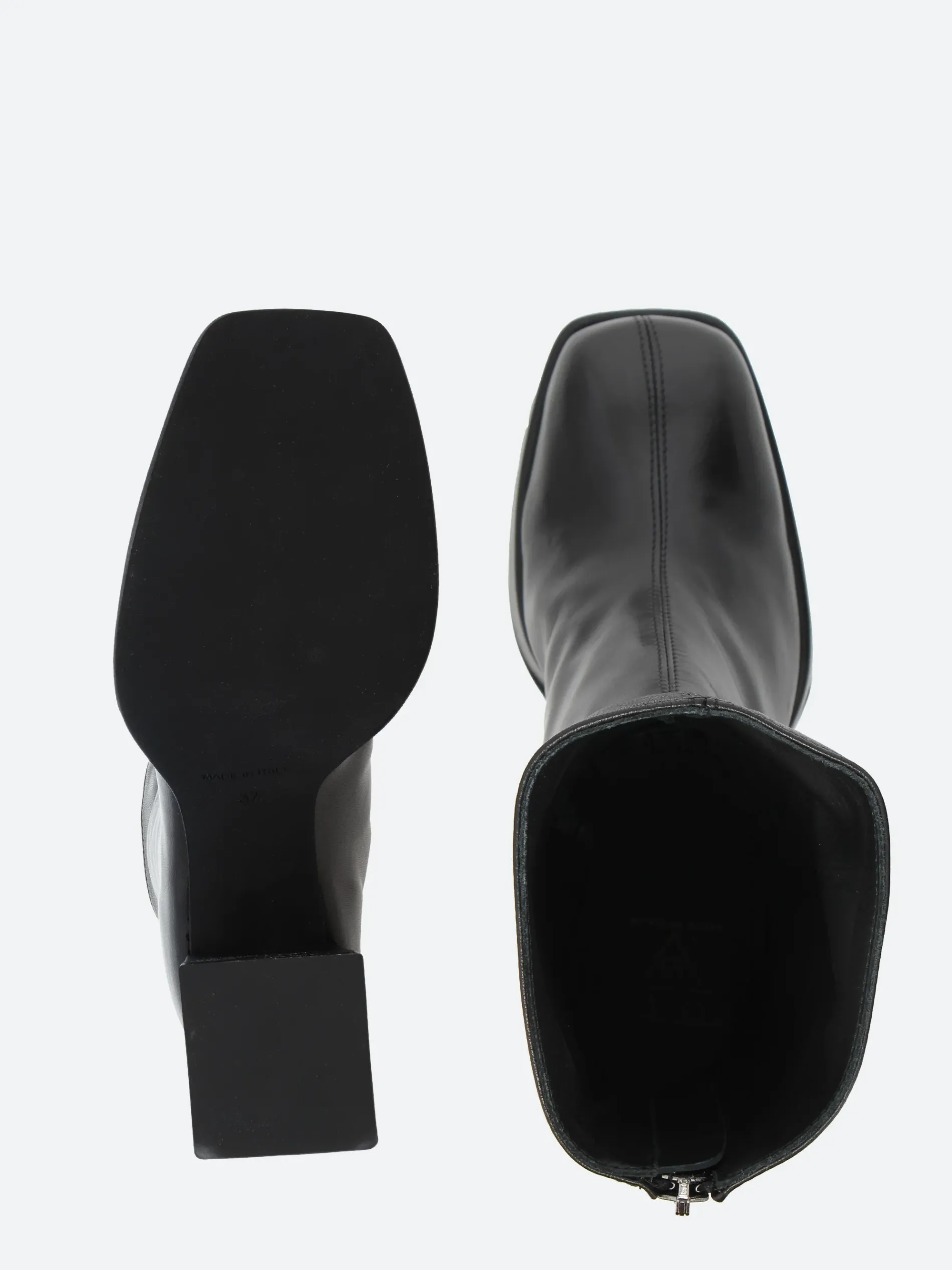 Open Closed Plata 02 is a minimalist knee-high leather boot sitting on a tall block heel.