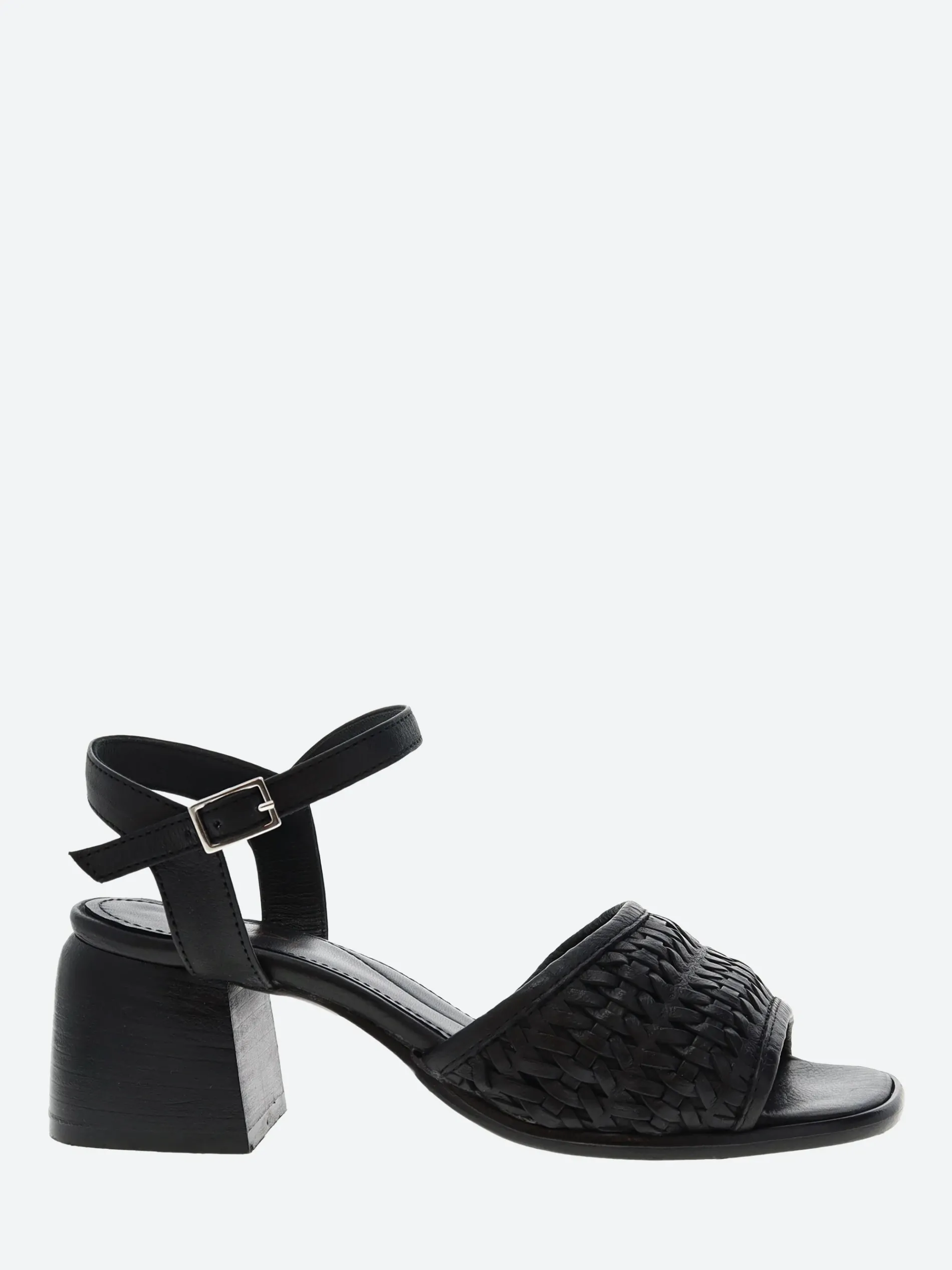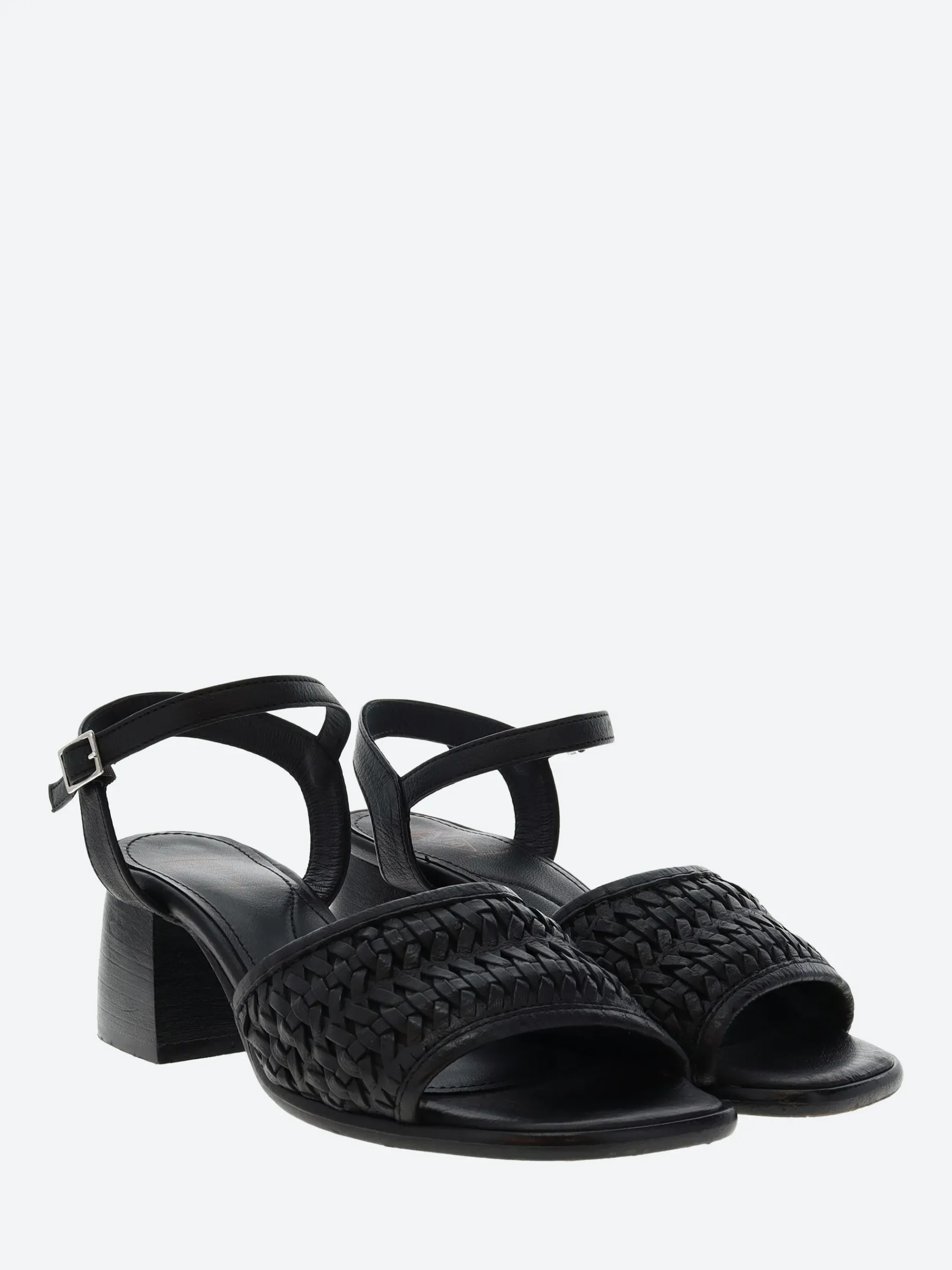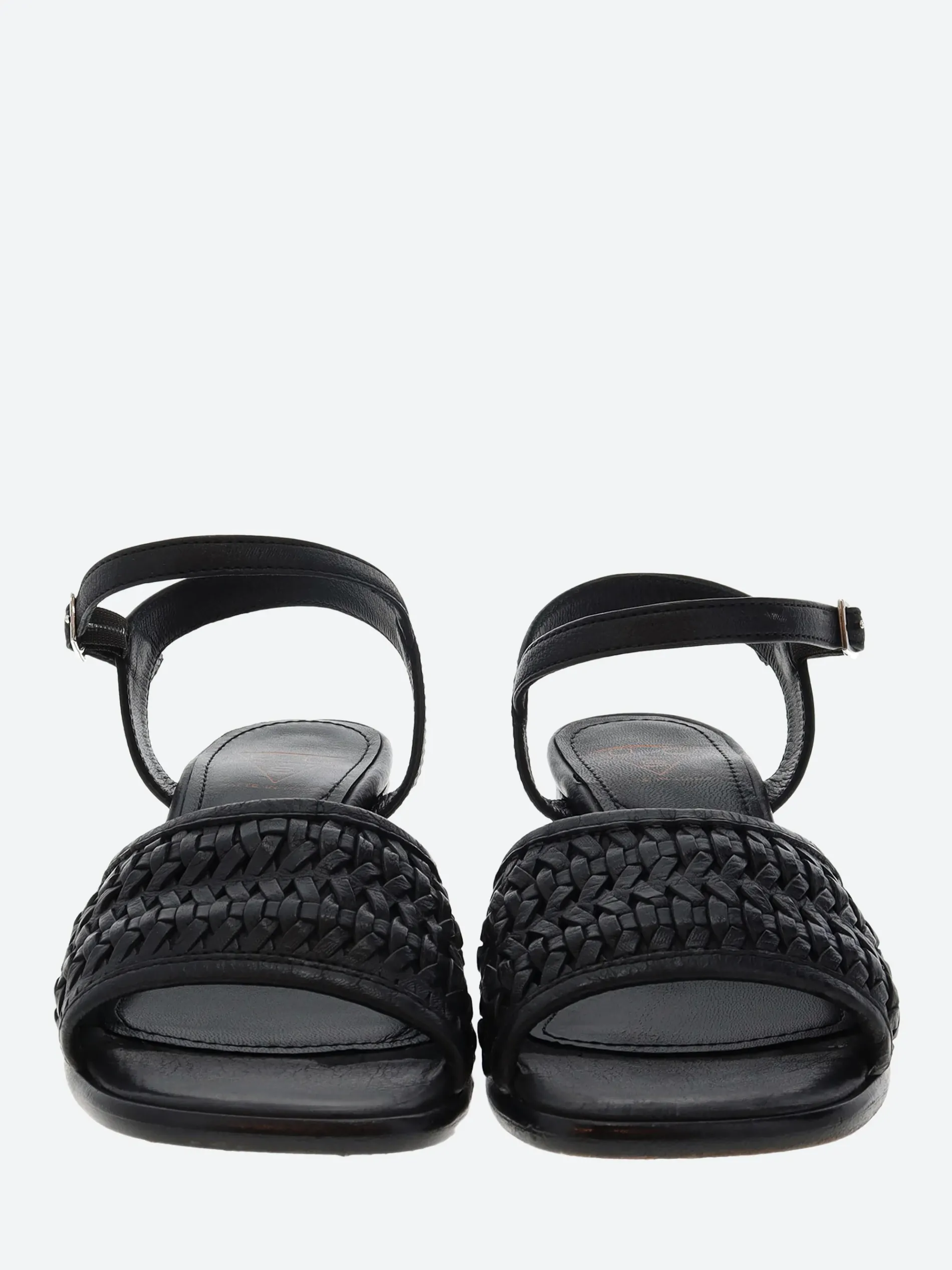 - Woven leather strap at the vamp