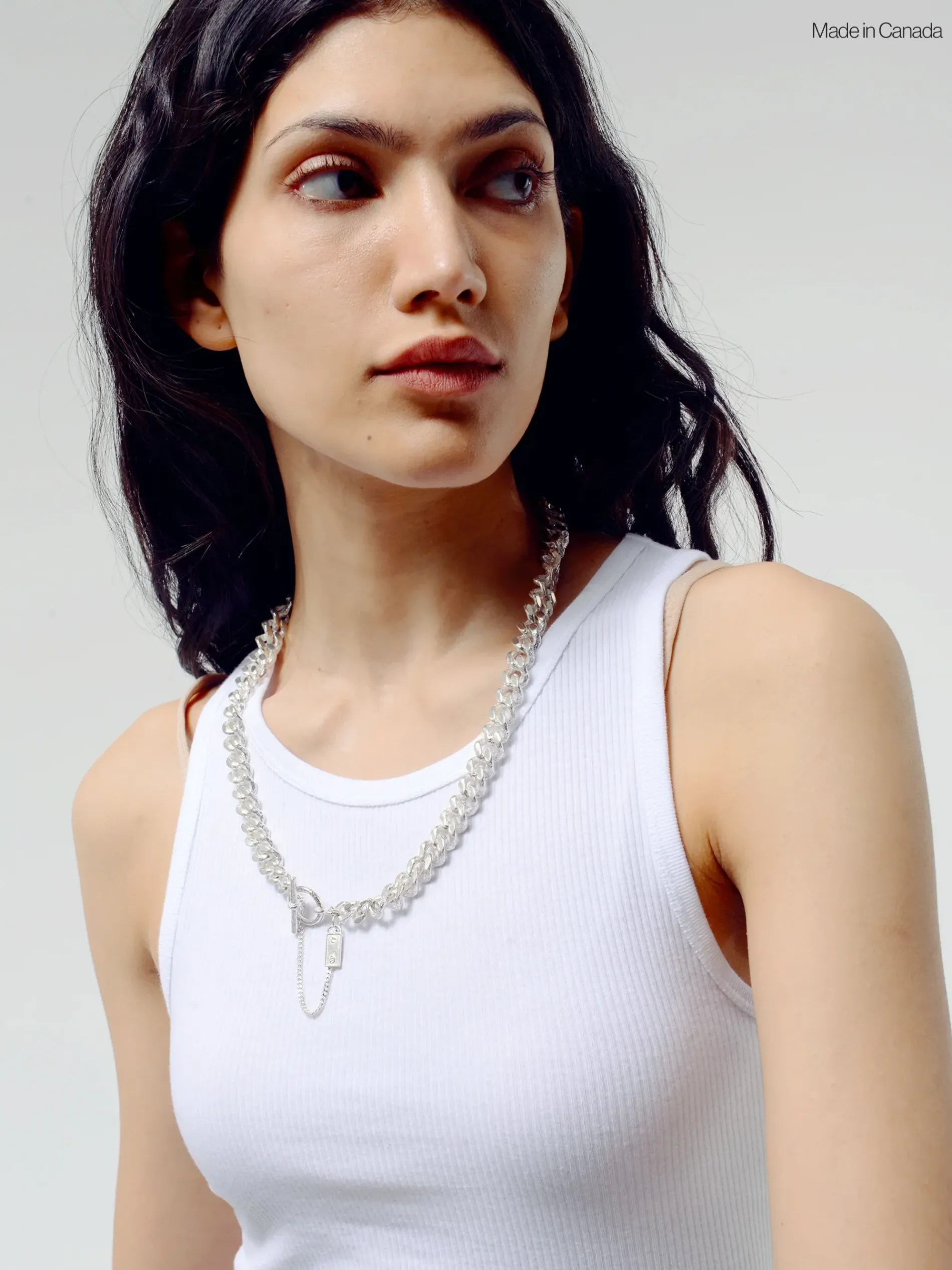 Curb chain necklace handmade in British Columbia, using 925 silver.