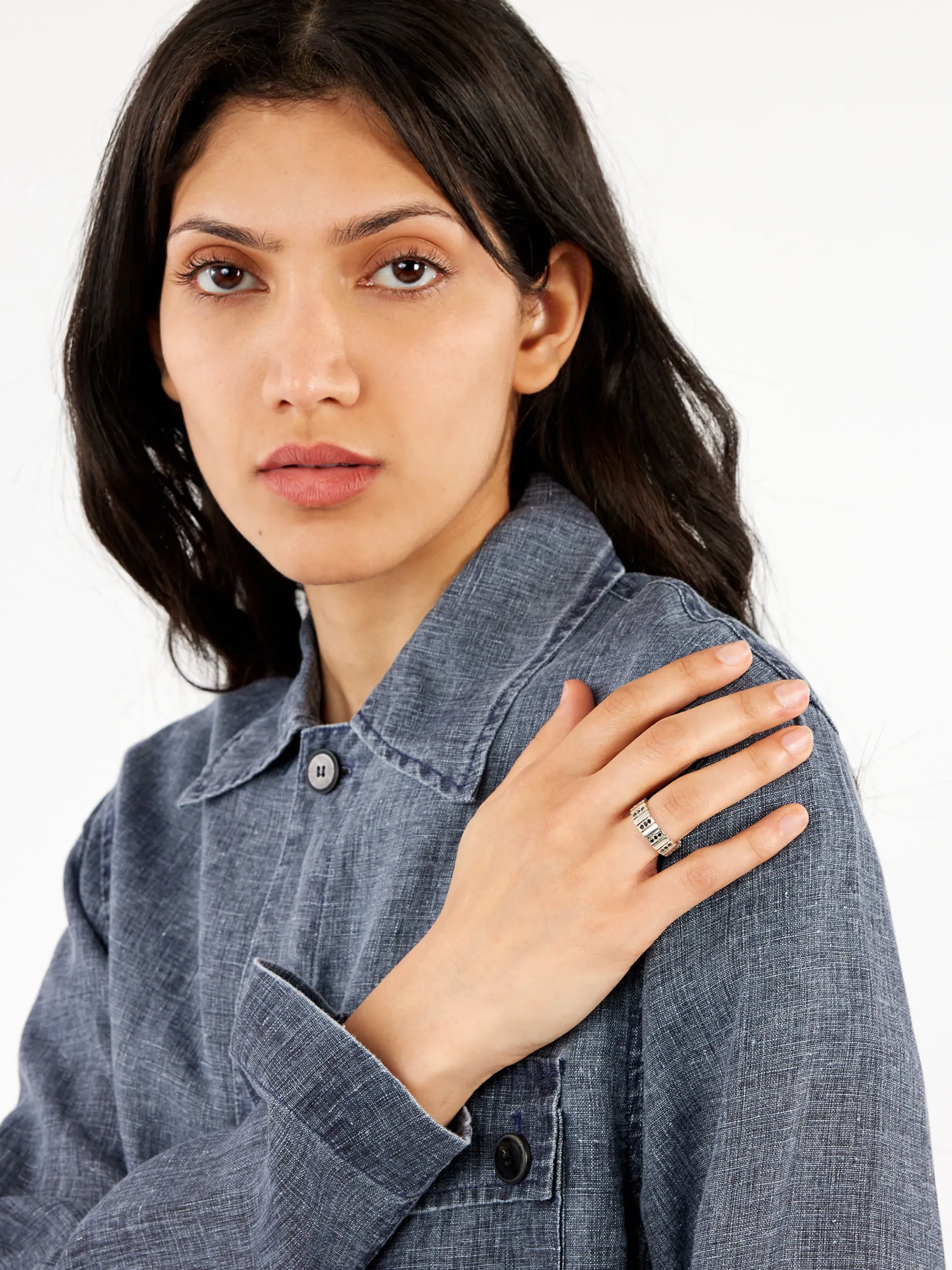 Pearls Before Swine .925 sterling silver band ring with columns of blackened diamonds.