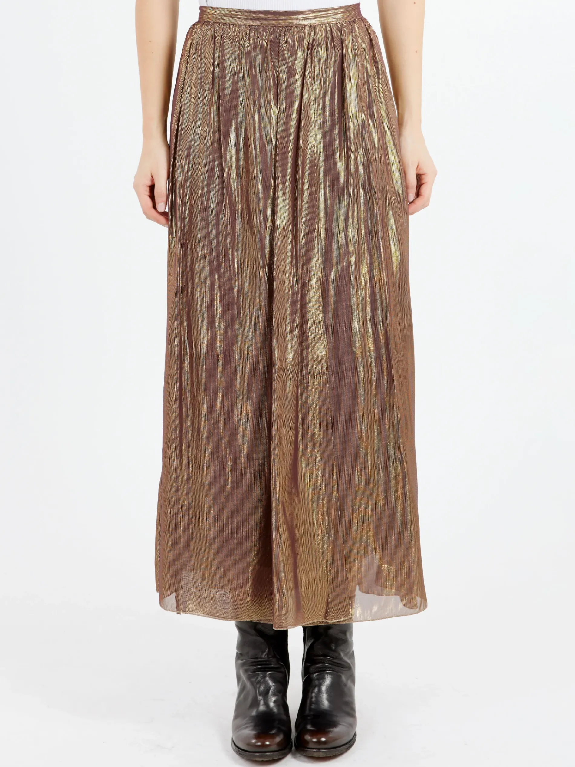 Pomandère wrap skirt has a shiny fabric and features an elasticated waistband at the back.