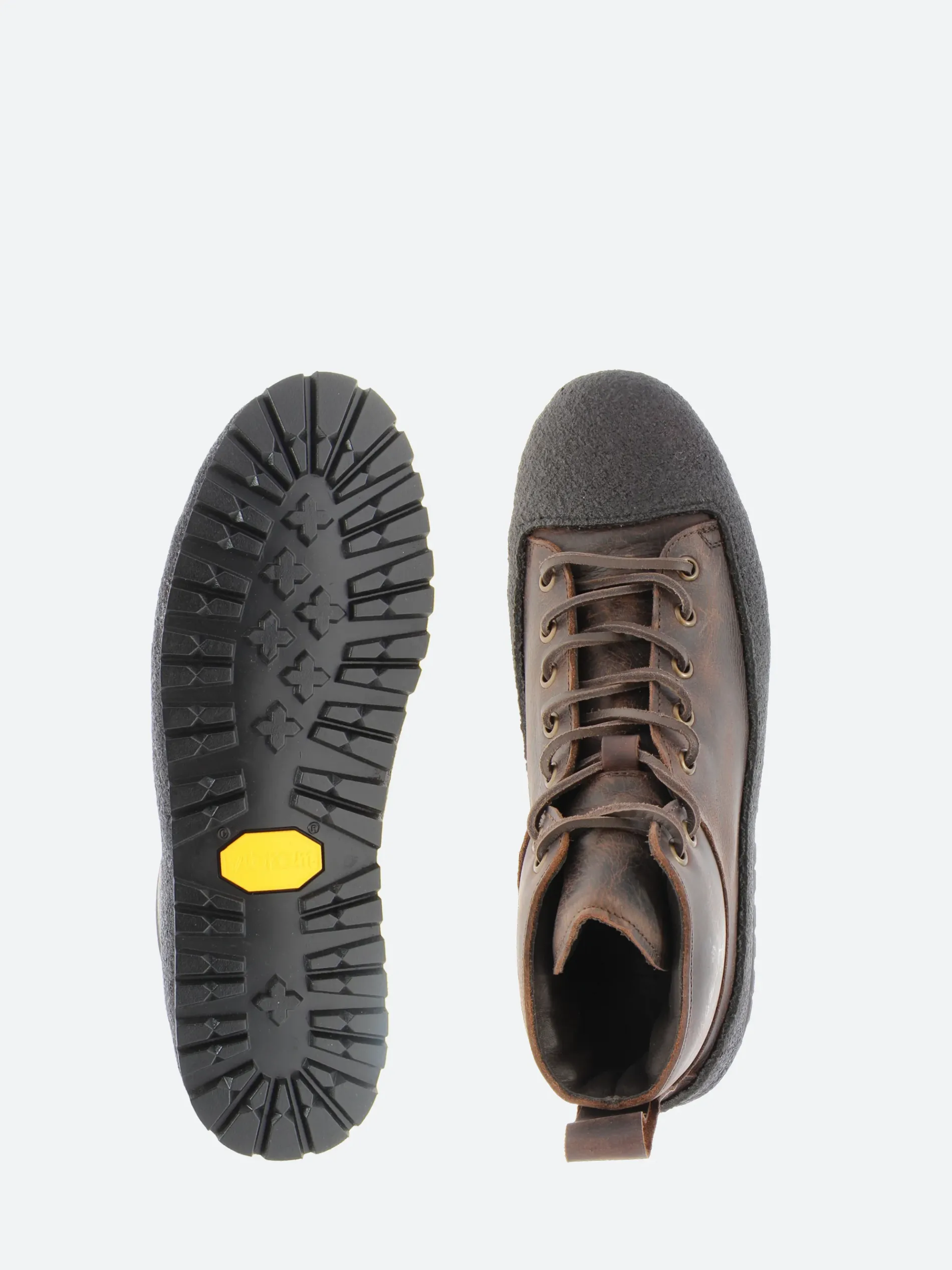 A very comfortable ankle boot with rubber sole that goes up to the middle of the upper to protect you from the winter cold and water. The leather has also been treated with waterproof waxes for additional protection of the ankle as well.