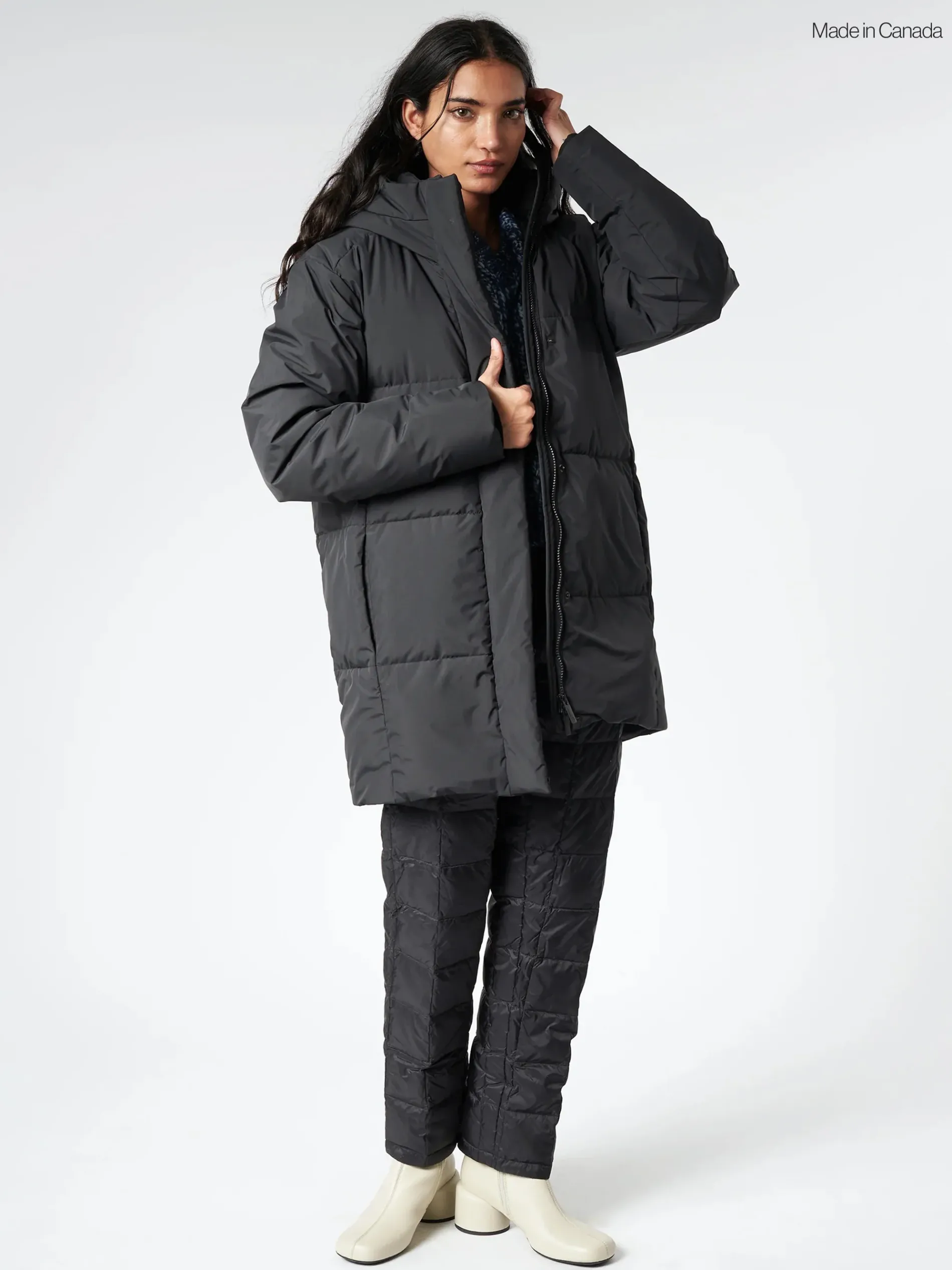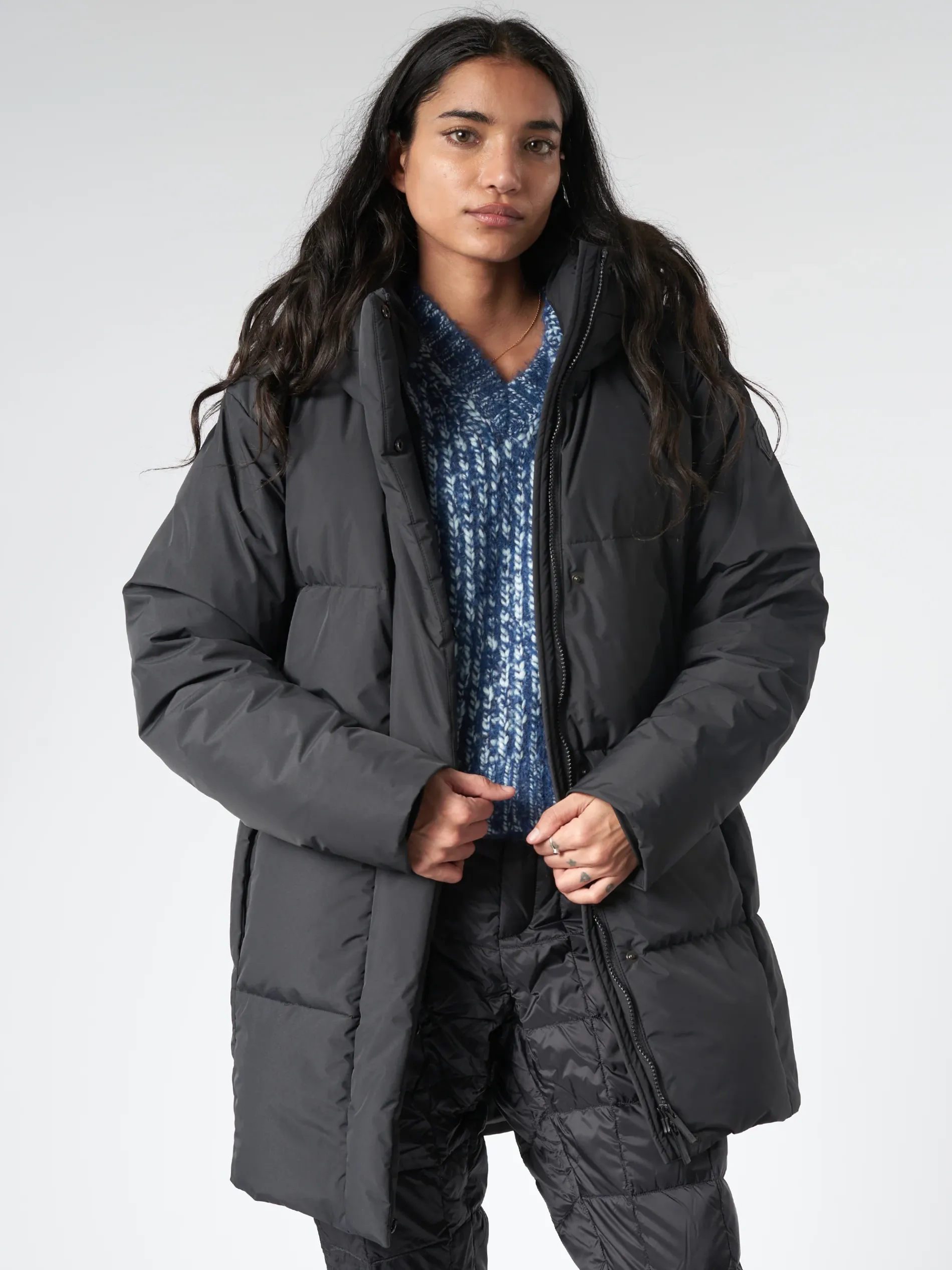 June is a midweight jacket with a modern look. Made from breathable, waterproof super matte fabric and insulated with ethically sourced down, this style is designed to deliver warmth in moderately cold climates.