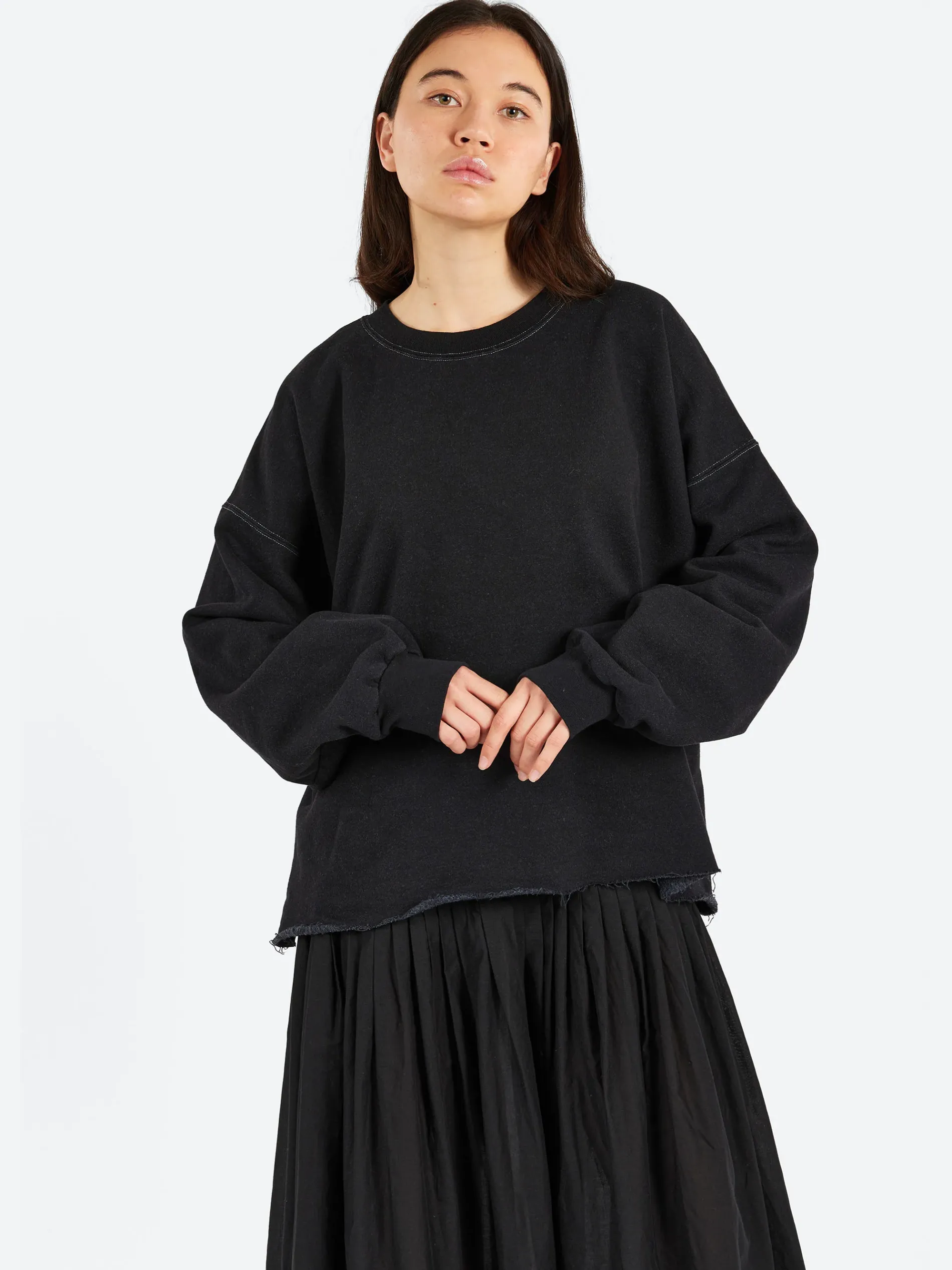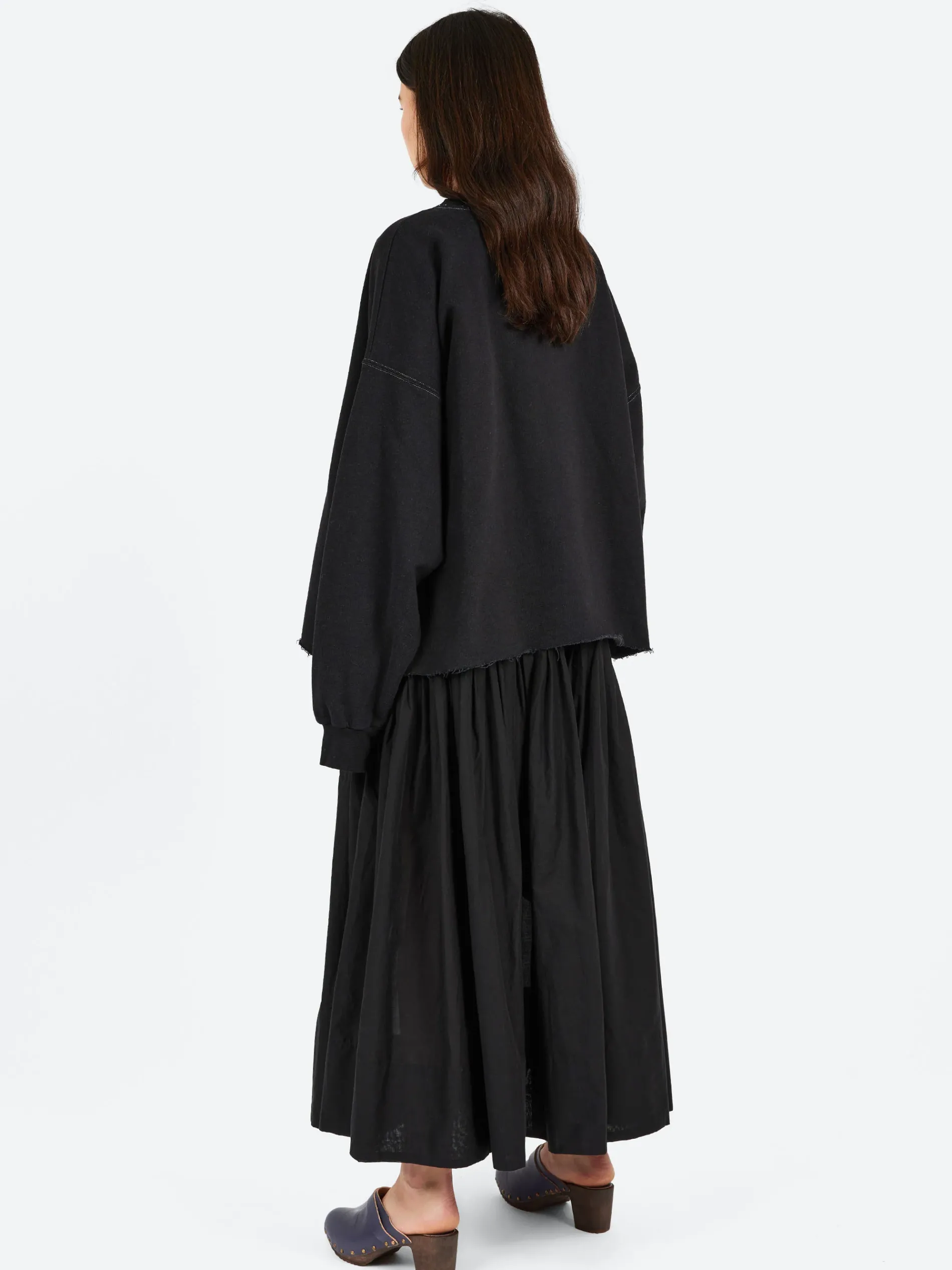 Casual dress featuring a relaxed sweatshirt top with a round neckline and dropped shoulders that’s cut from soft overdyed cotton. The attached cotton skirt has a loose, gathered design and falls to a midi length.