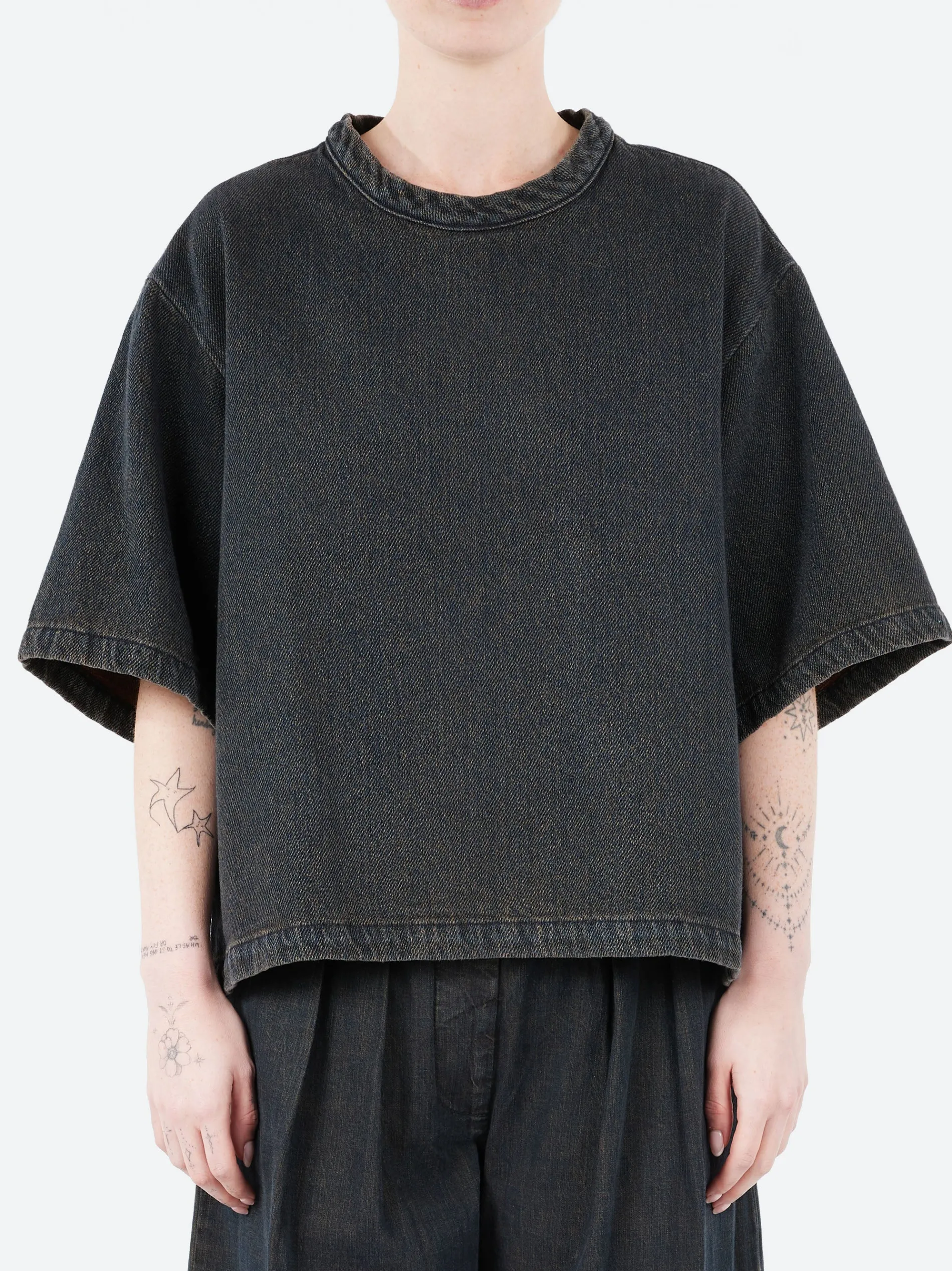 Loose-fit top in overdyed vista denim, which has a dressier feel.